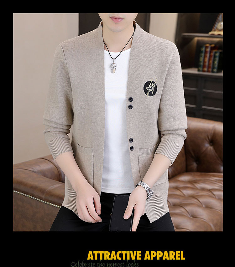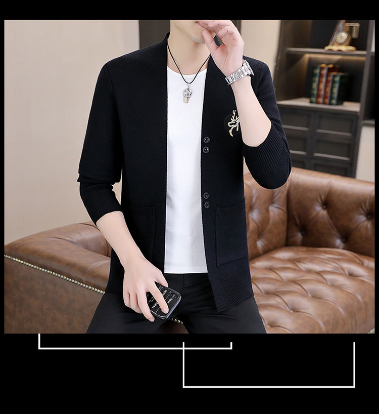 고급 니트 카디건 남자 코트 가을 새로운 올 매치 롱 스웨터 패셔너블 핸섬 남성 캐주얼 스웨터