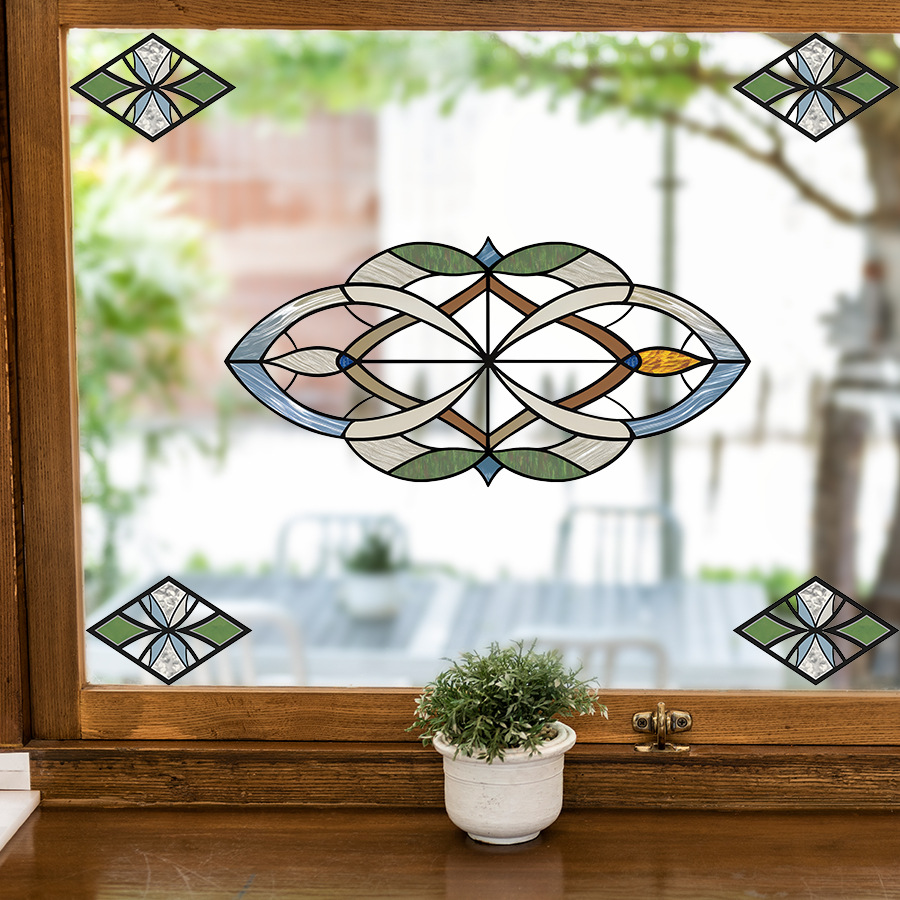 유럽 고전 시뮬레이션 컬러 유리 창 스티커 자체 접착 벽 스티커 유리 장식 스티커 양면 시각적 HS1108Q