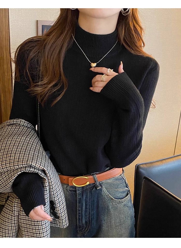 2024 두꺼운 스웨터 여자의 겨울 두꺼운 기모 베이스 셔츠 새로운 가을과 겨울 내반 하이 칼라 원피스 벨벳 탑스토어 가기