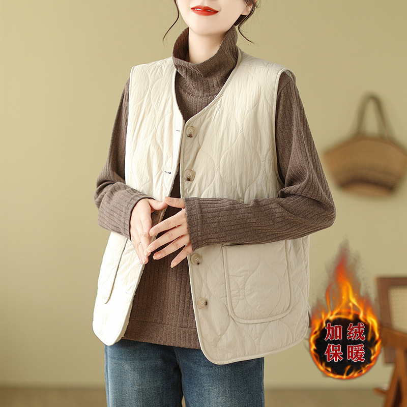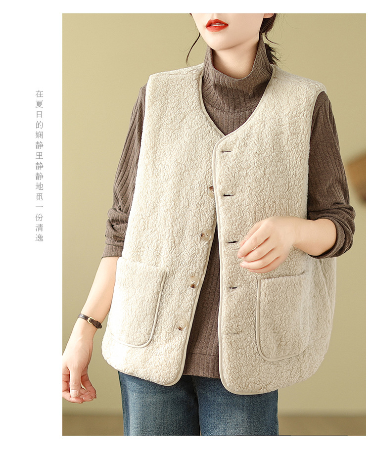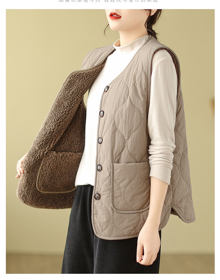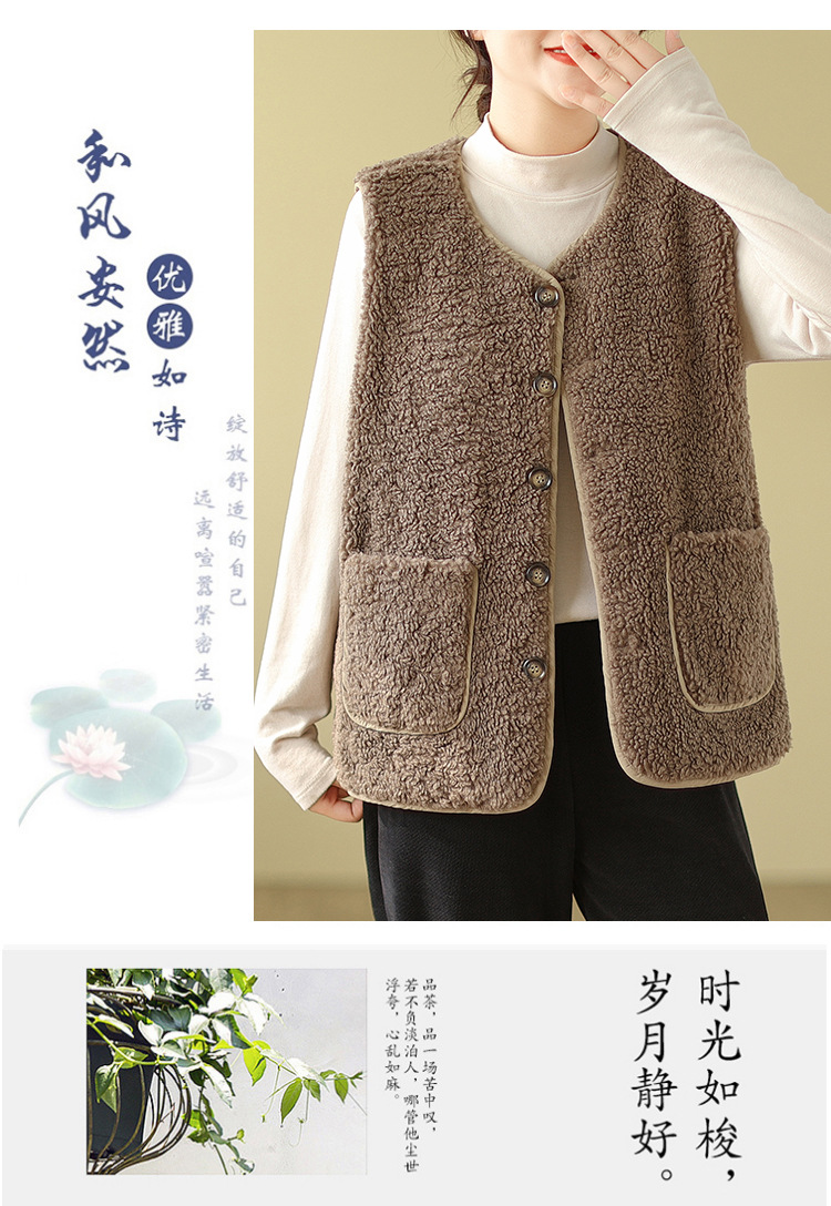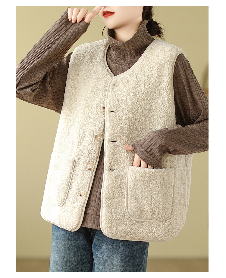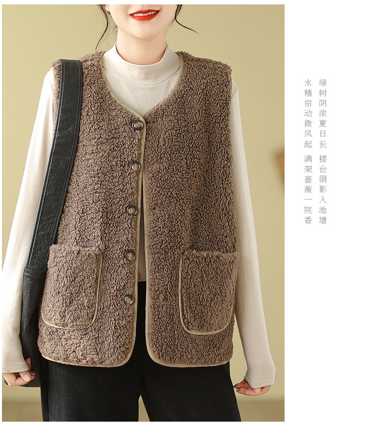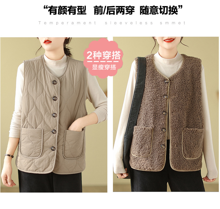 2025년 가을 겨울 신상 양털 따뜻한 민소매 대형 포켓 조끼 여성용 리버시블 조끼 재킷스토어 가기
