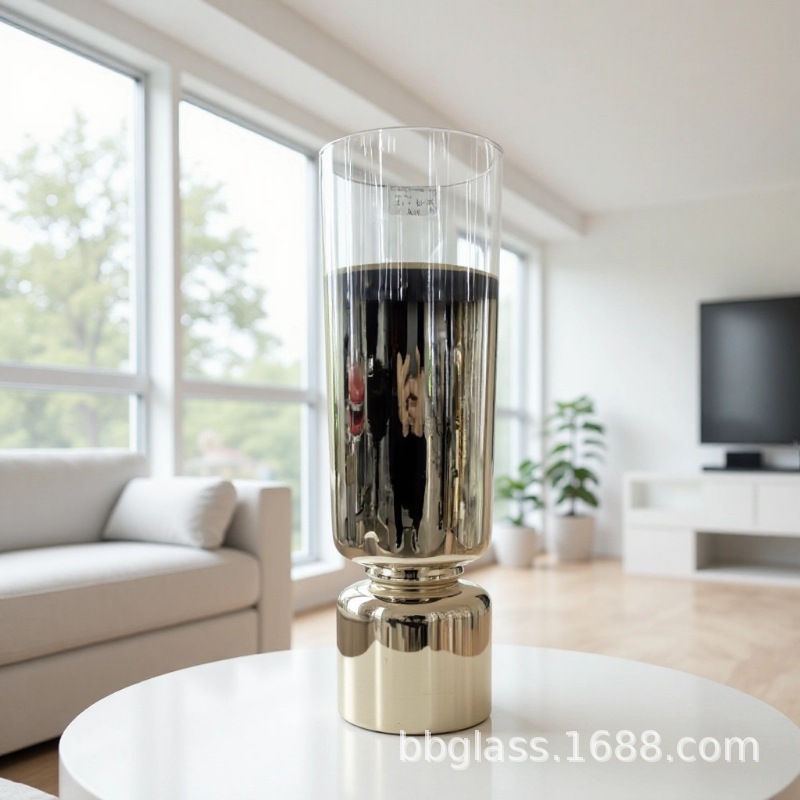 BBGLASS Baobei 유리 현대 간단한 그라디언트 유리 꽃병 황금 유리 꽃병 홈 장식스토어 가기