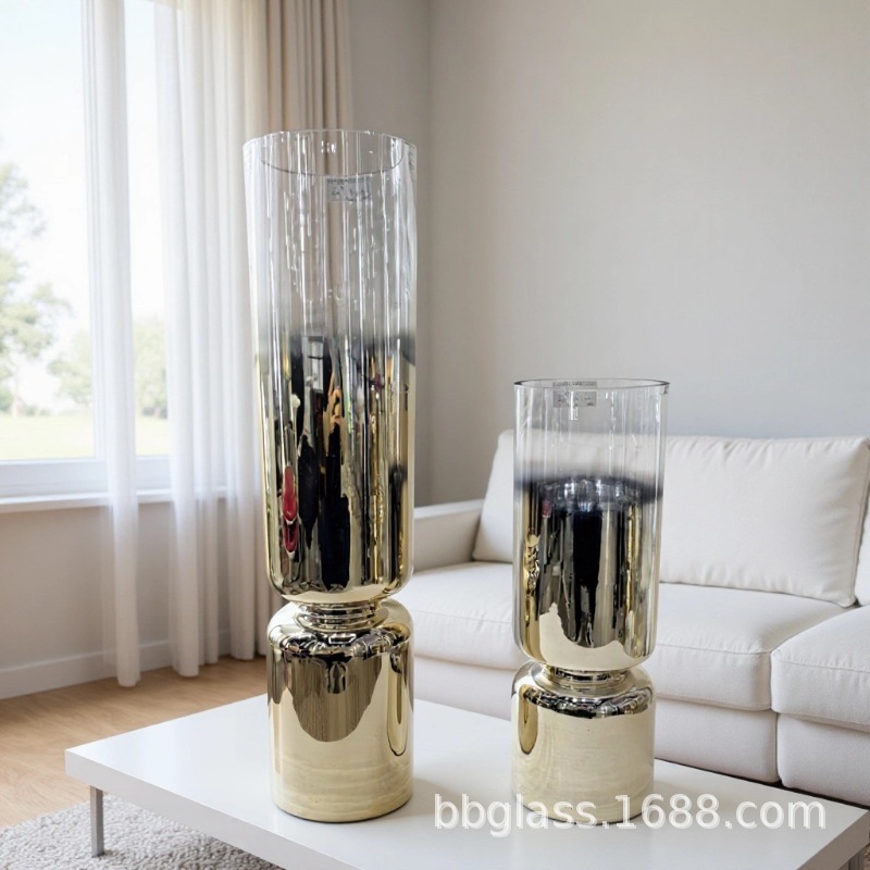 BBGLASS Baobei 유리 현대 간단한 그라디언트 유리 꽃병 황금 유리 꽃병 홈 장식