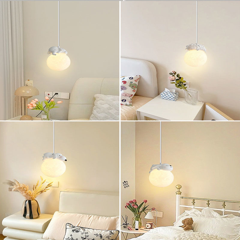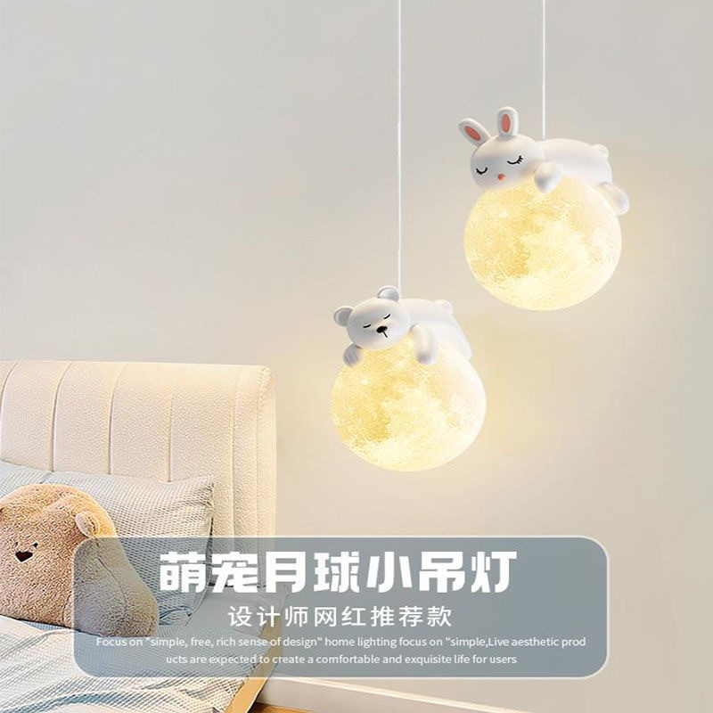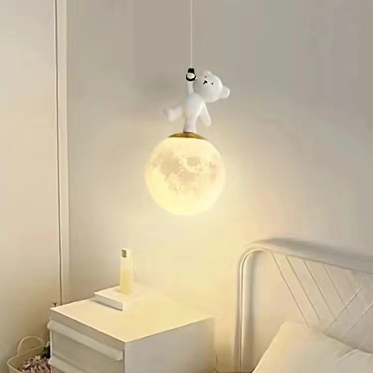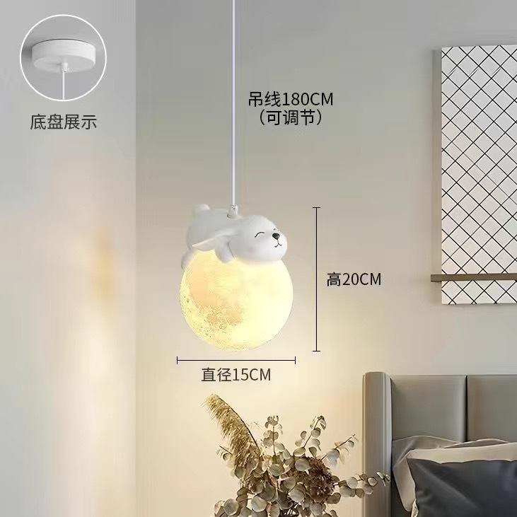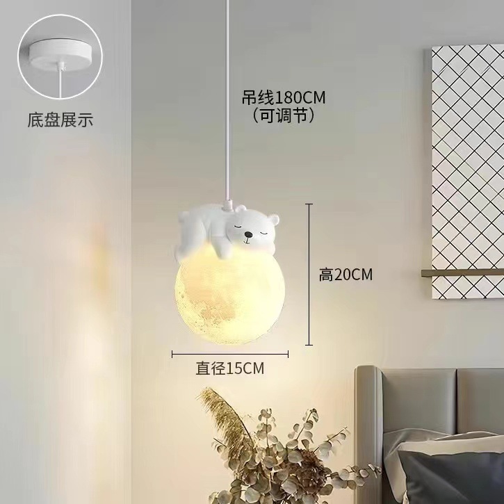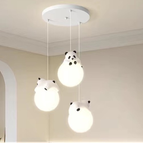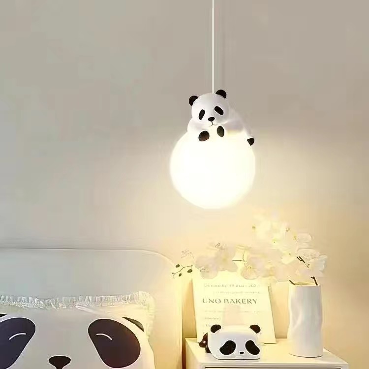 2024 새로운 침실 침실 작은 샹들리에 현대 간단한 창조적 인 팬더 어린이 방 크림 스타일 레스토랑 램프스토어 가기