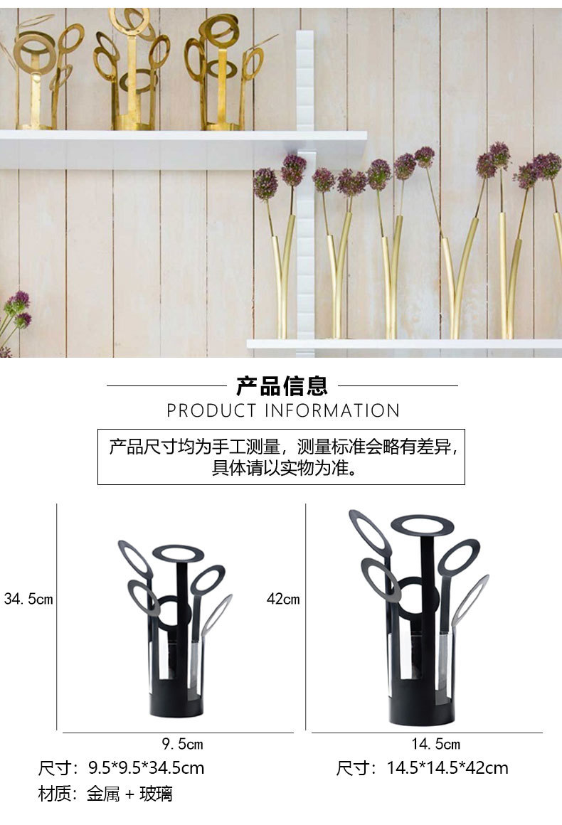 북유럽 인터넷 연예인 Ins 스타일 황동 유리 꽃병 꽃 모델 룸 거실 입구 창조적 인 홈 장식 선물