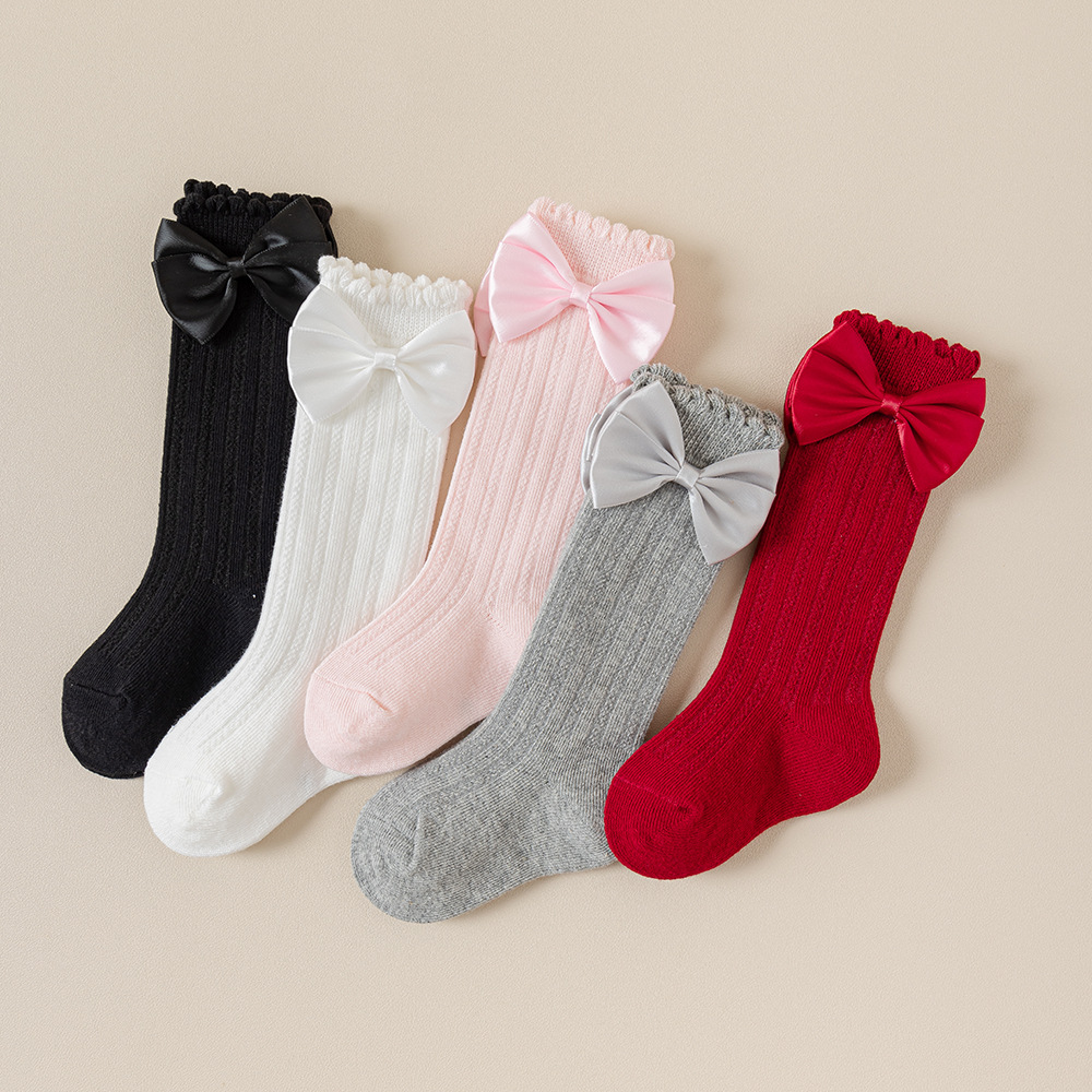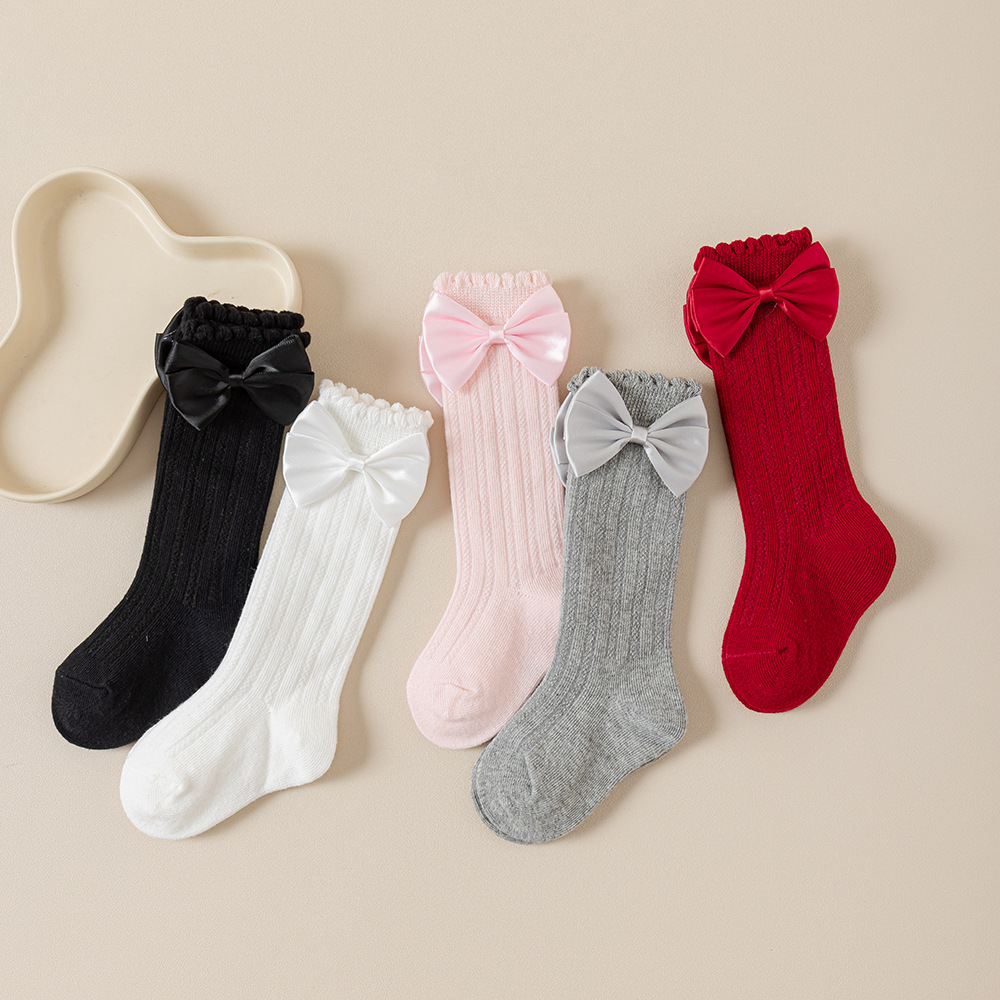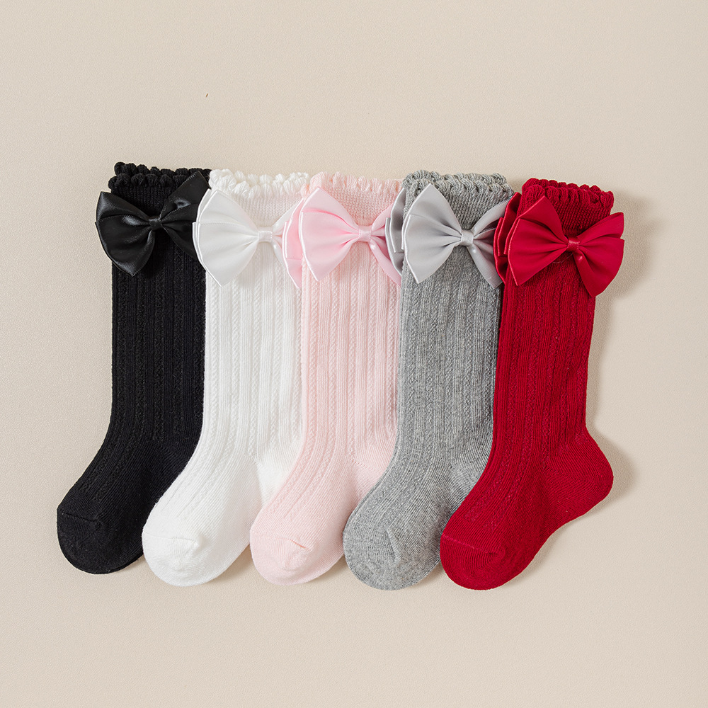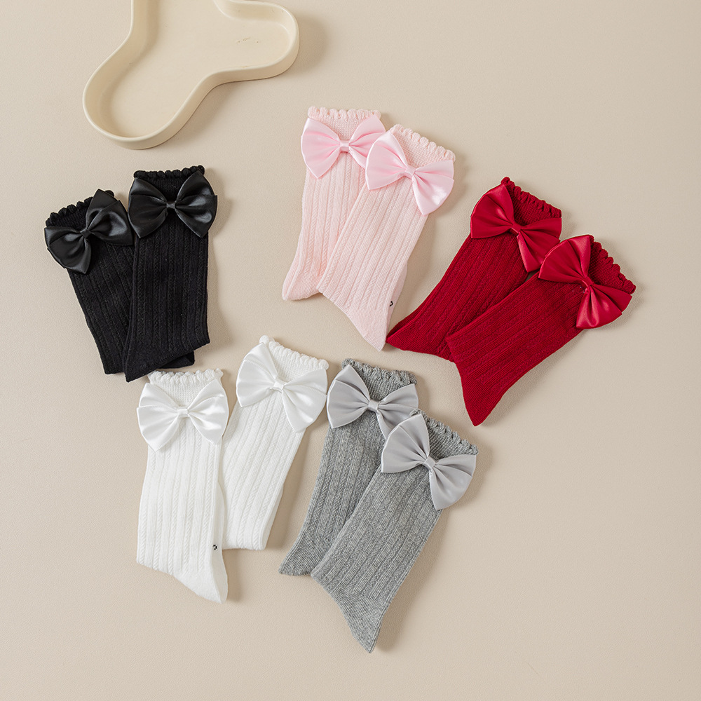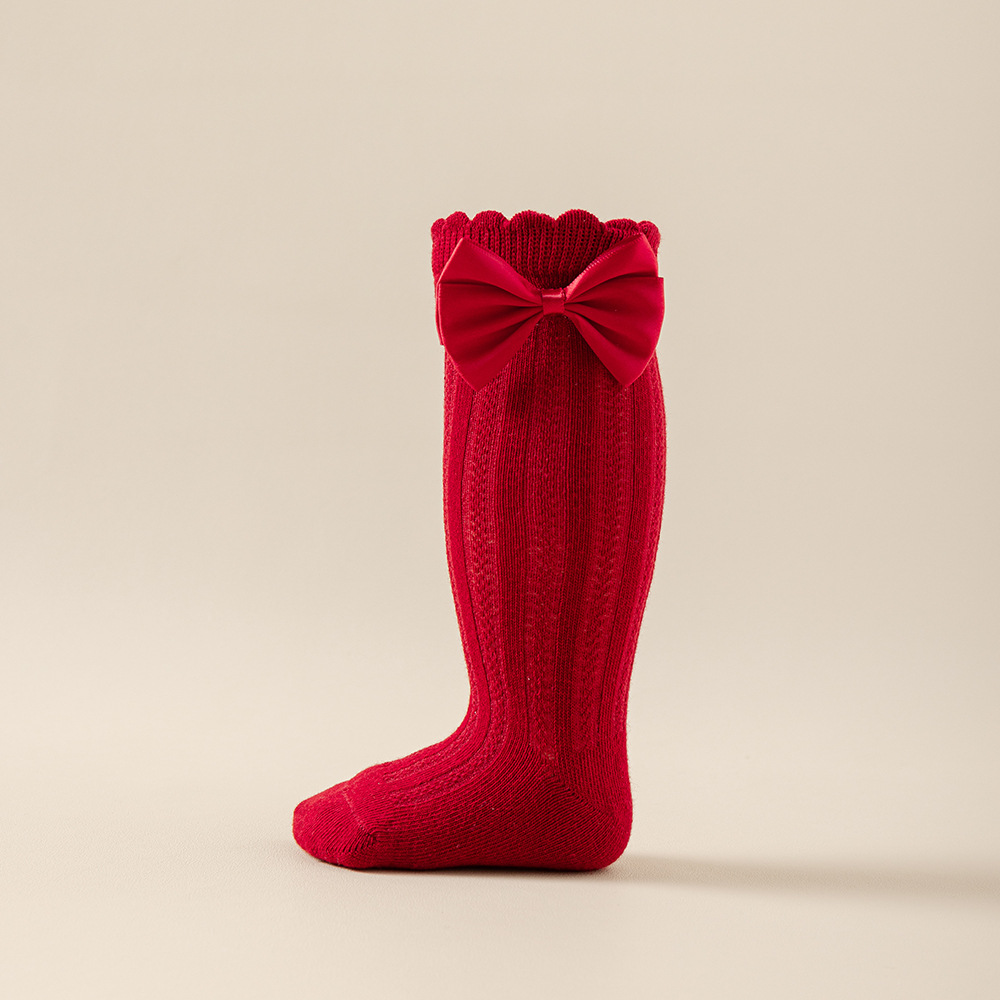 소녀의 봄과 가을 포장 양말 솔리드 컬러 더블 바늘 송아지 양말 소녀 아기의 가을과 겨울 수직 활 중간 튜브 양말