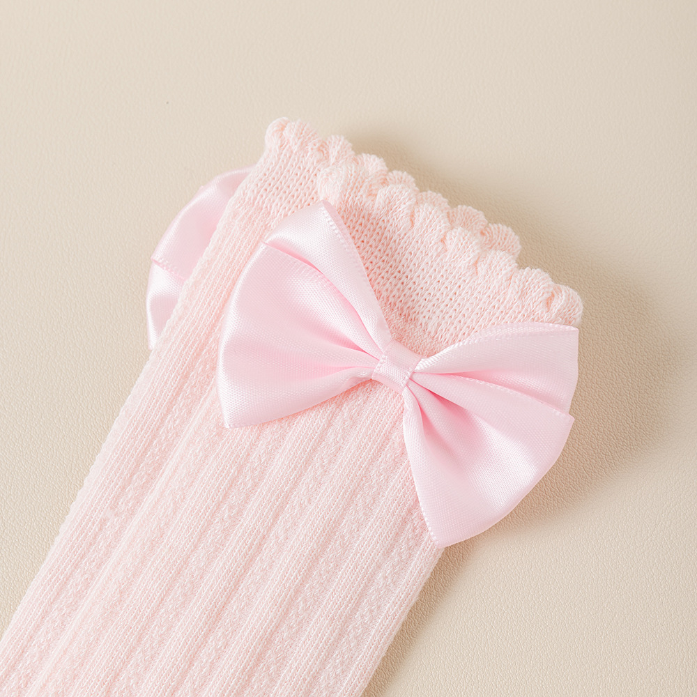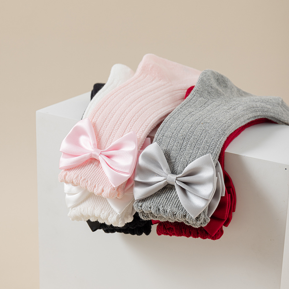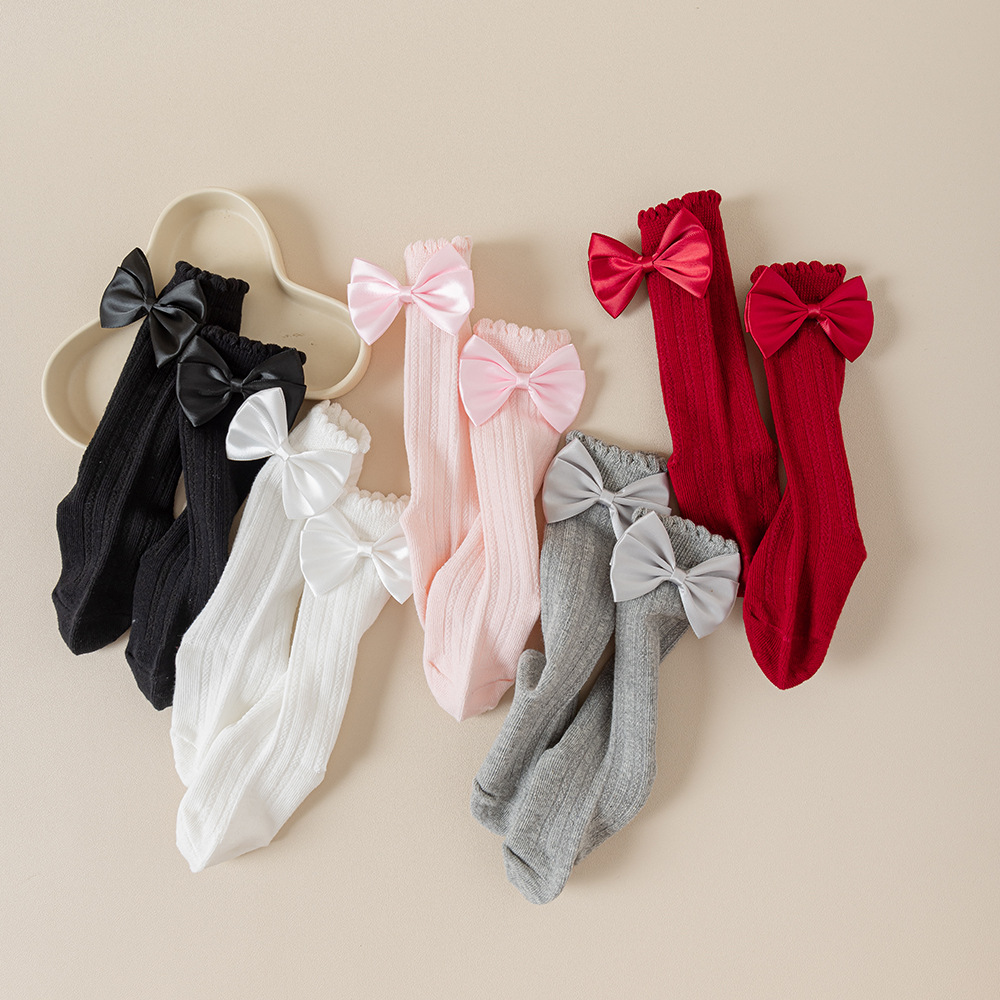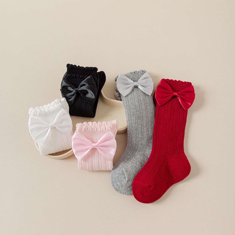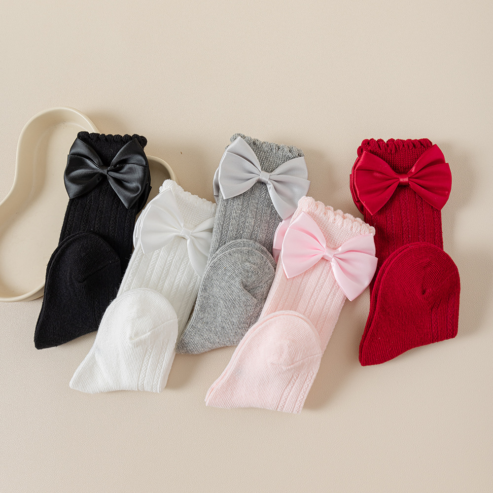 소녀의 봄과 가을 포장 양말 솔리드 컬러 더블 바늘 송아지 양말 소녀 아기의 가을과 겨울 수직 활 중간 튜브 양말