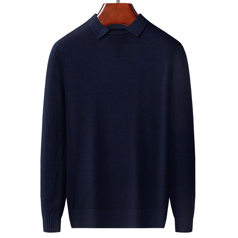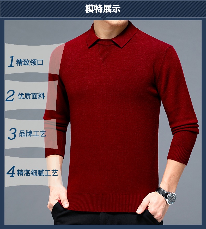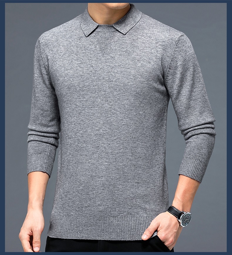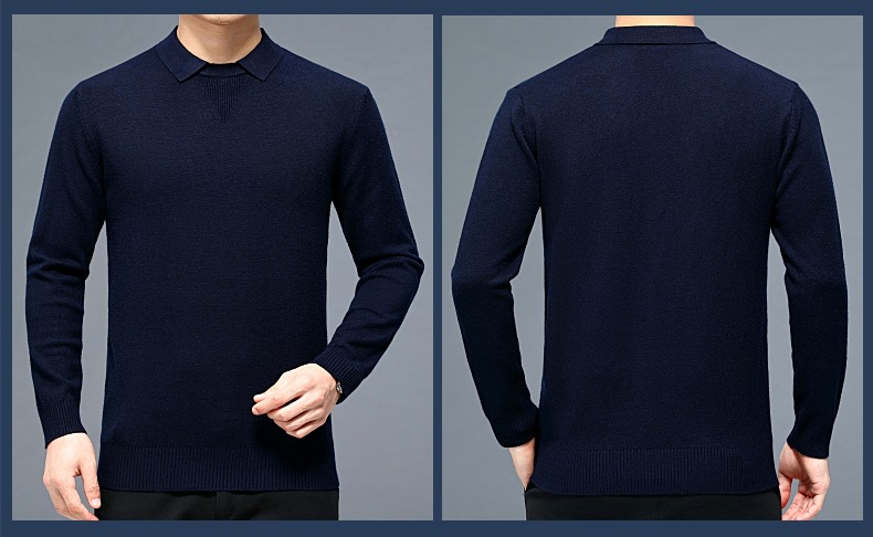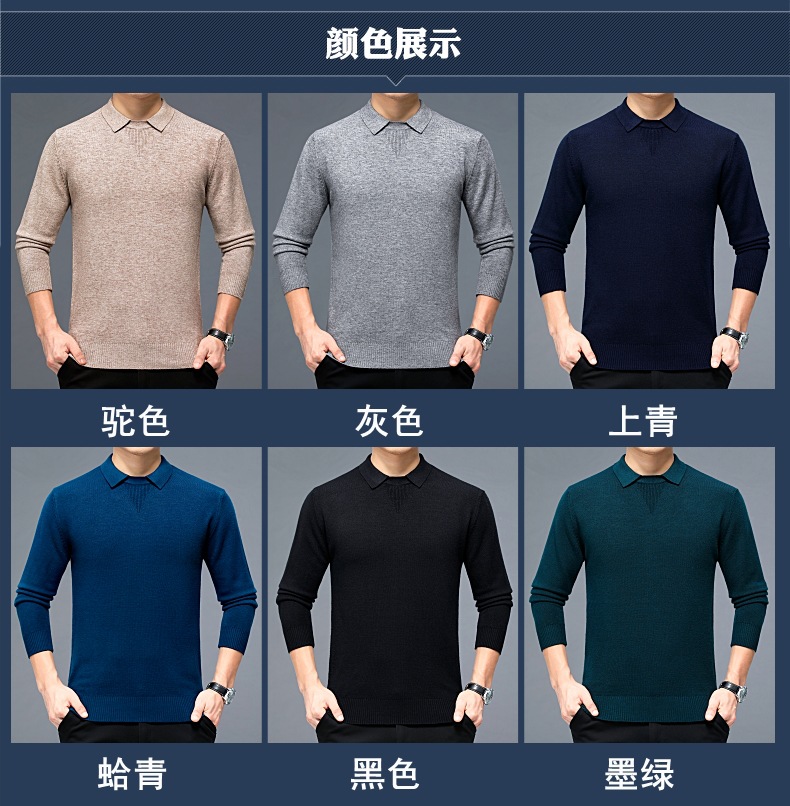 남자 옷깃 가을과 겨울 하이 엔드 두꺼운 자카드 니트 스웨터 슬림핏 올매치 중년 및 노인 따뜻한 아빠베이스 셔츠스토어 가기
