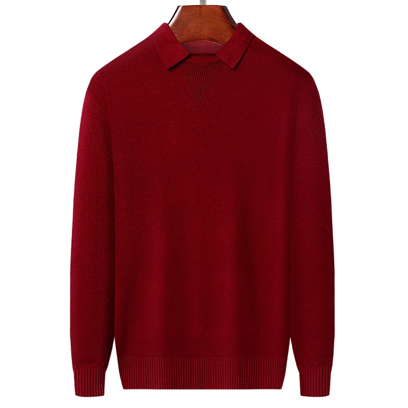 남자 옷깃 가을과 겨울 하이 엔드 두꺼운 자카드 니트 스웨터 슬림핏 올매치 중년 및 노인 따뜻한 아빠베이스 셔츠