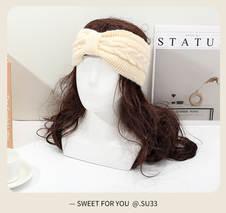 국경 간 기모 울 헤어 밴드 활 머리띠 유럽과 미국의 가을과 겨울 따뜻한 트위스트 이어 보호 헤드 기어 니트 헤어 액세서리스토어 가기