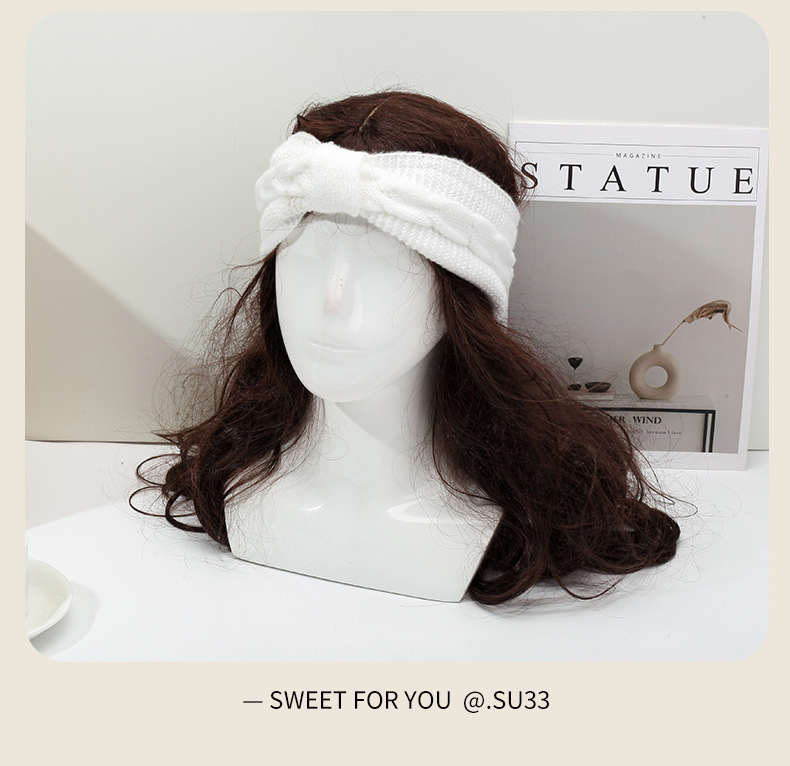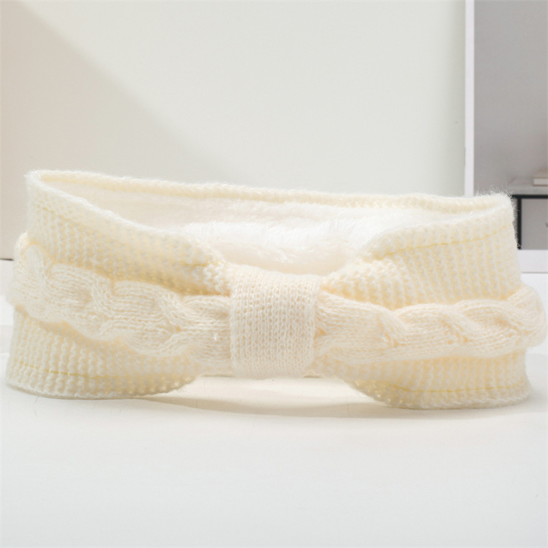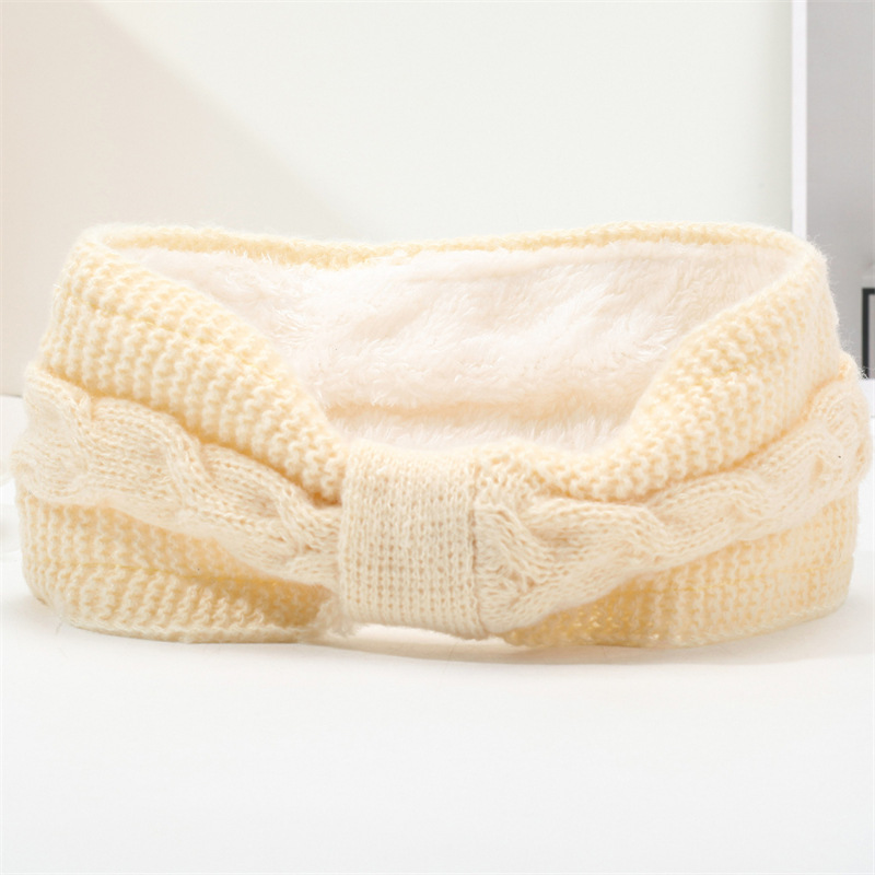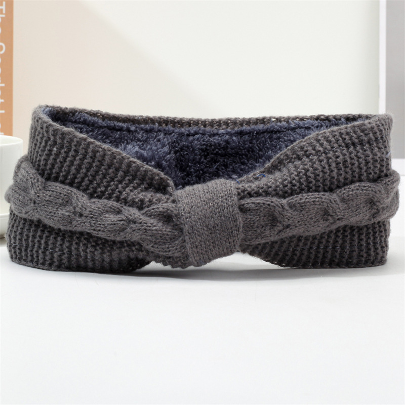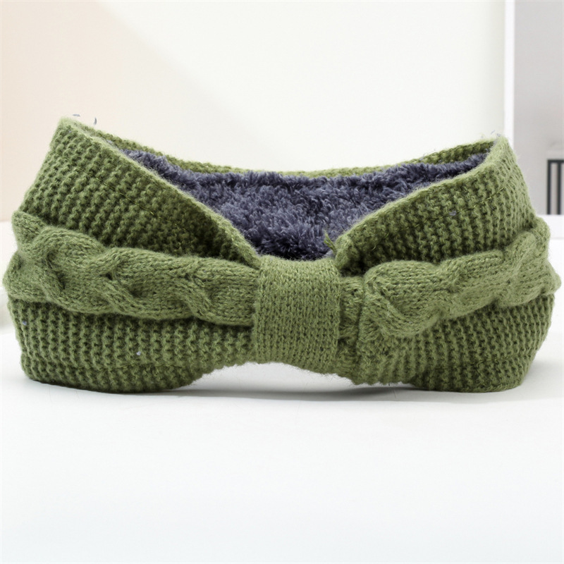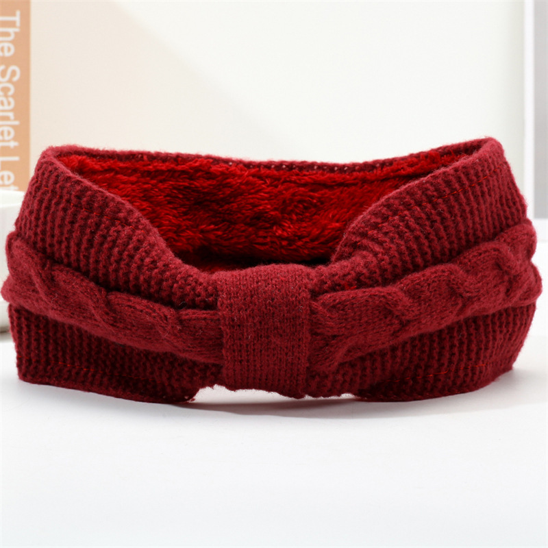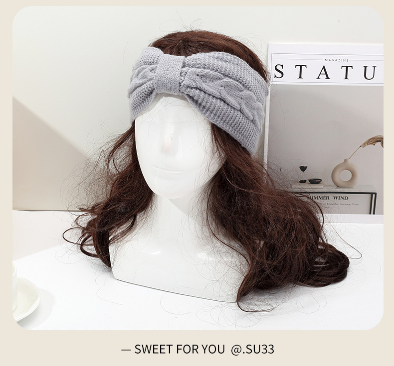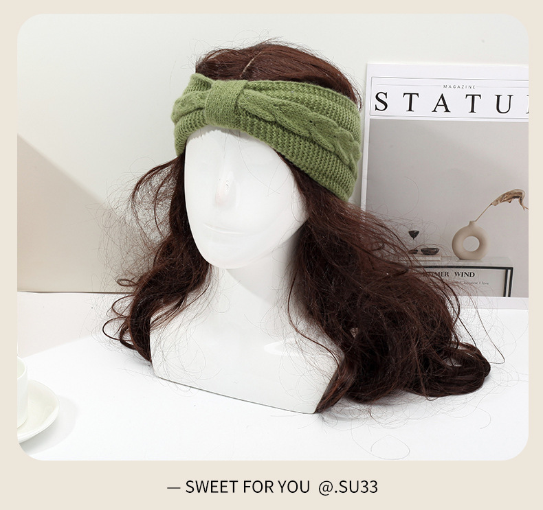 국경 간 기모 울 헤어 밴드 활 머리띠 유럽과 미국의 가을과 겨울 따뜻한 트위스트 이어 보호 헤드 기어 니트 헤어 액세서리