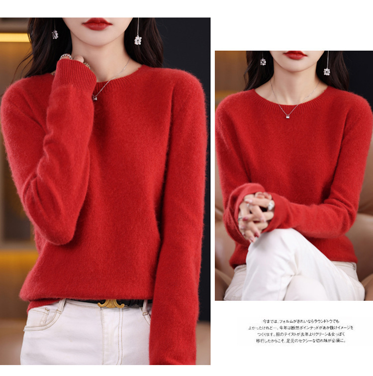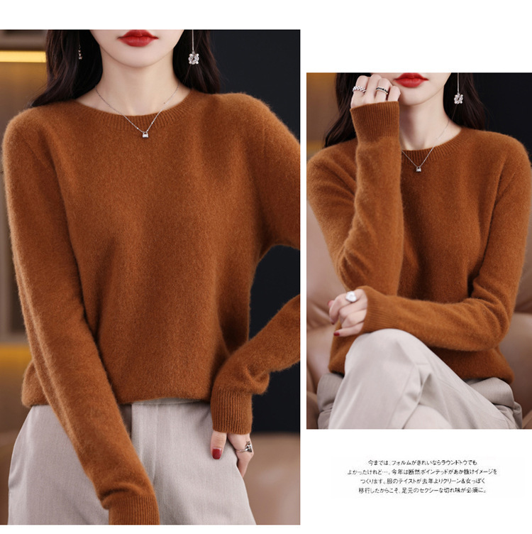 퍼스트 라인 의류 100 울 스웨터 여성용 퓨어 울 니트 스웨터 라운드 넥 올 매치 풀오버 스웨터 루즈베이스 셔츠스토어 가기