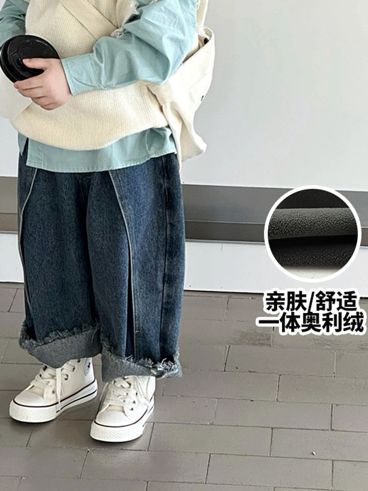 소년 청바지 겨울 새 어린이 겨울 맞춤형 기모 바지 아기의 두꺼운 스트레이트 청바지 트렌드스토어 가기