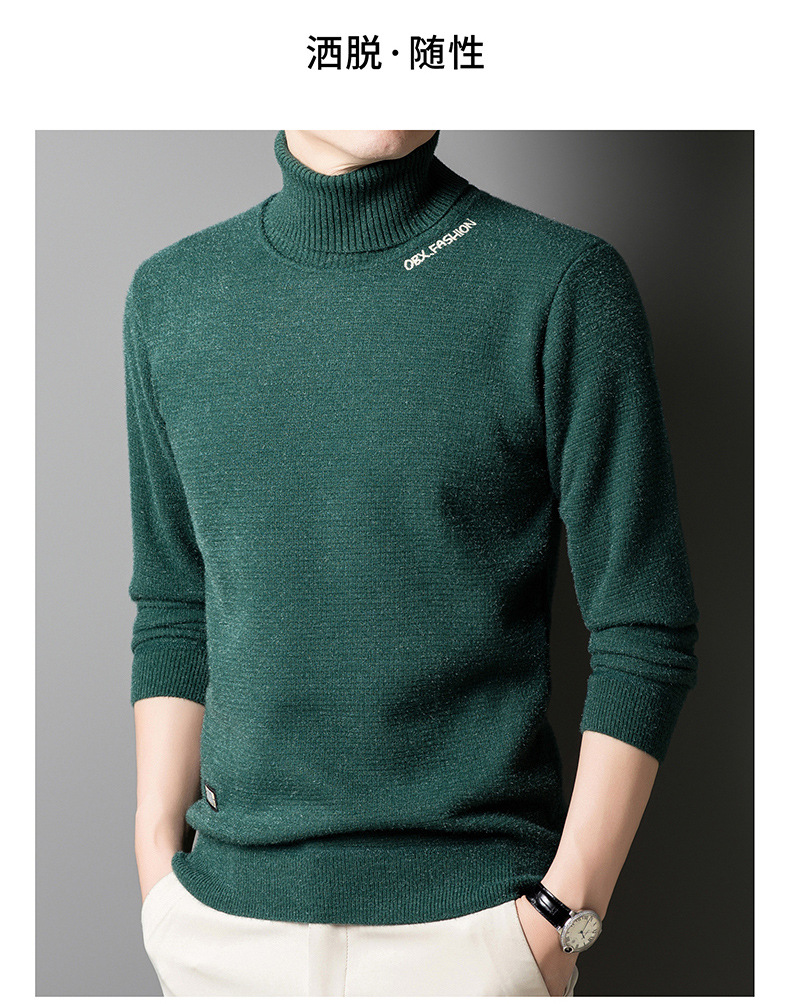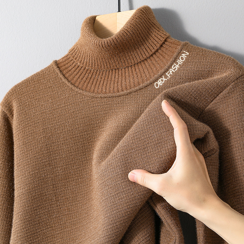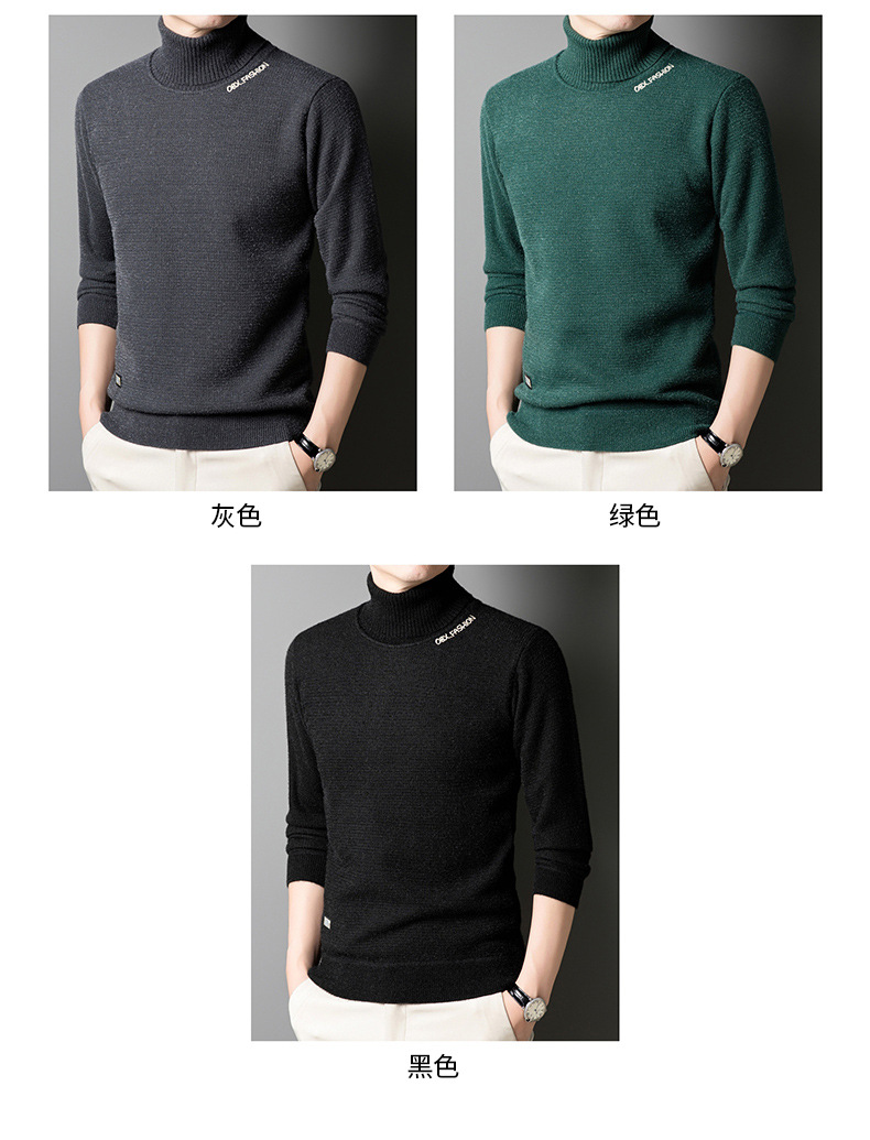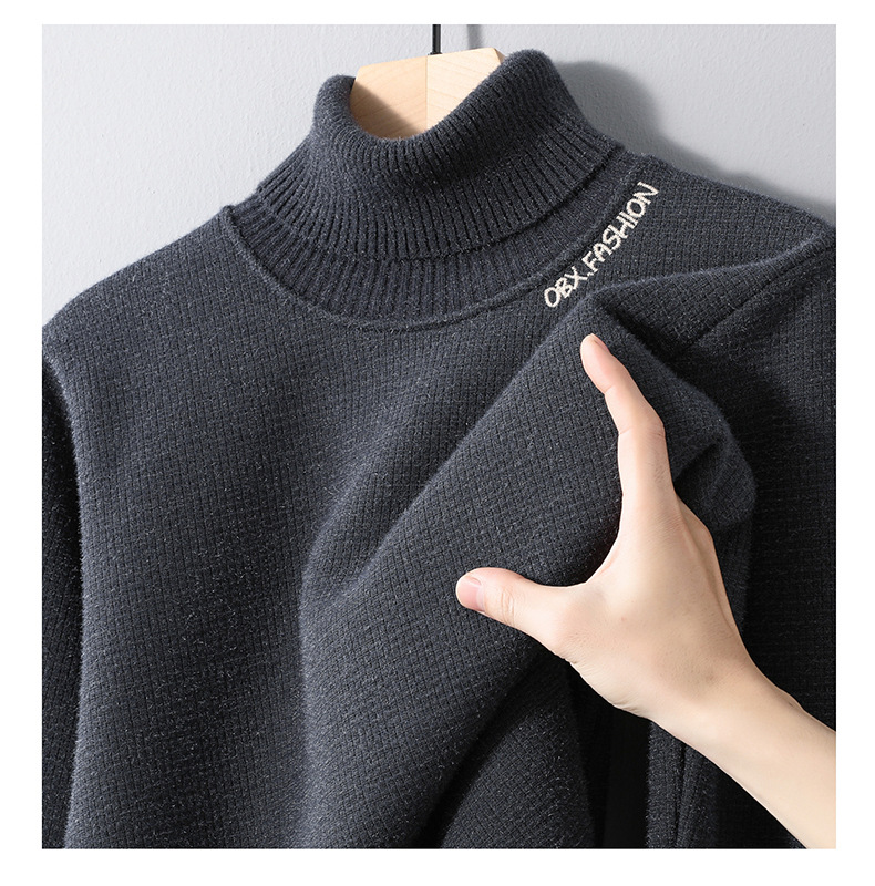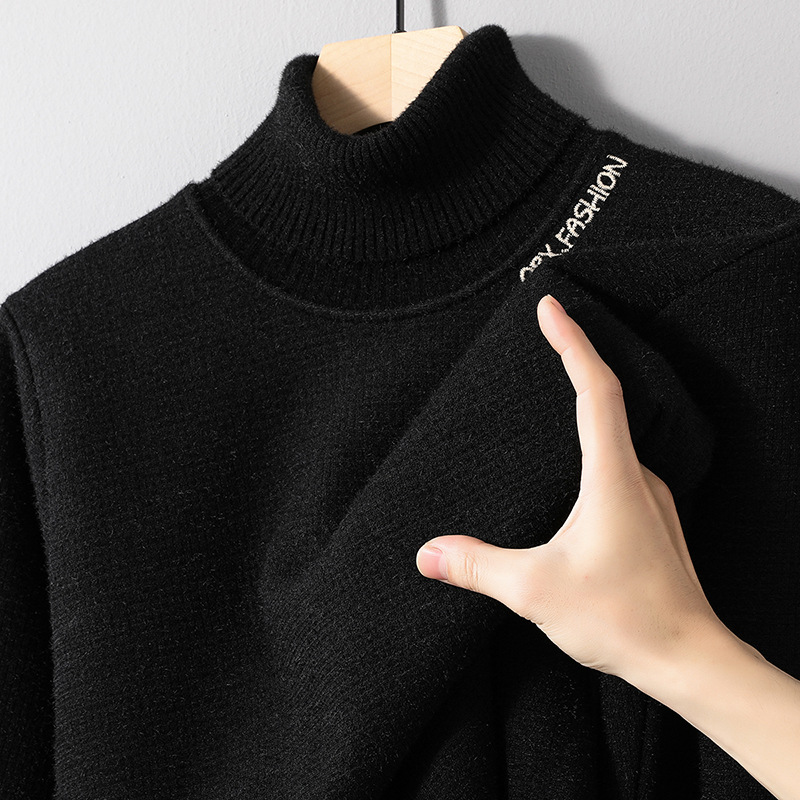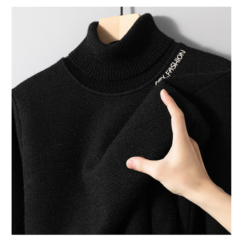 가을과 겨울 새로운 젊고 중년의 자수 니트 스웨터 올 매치 트렌디 긴팔 터틀넥 기모 두꺼운 따뜻한베이스 셔츠