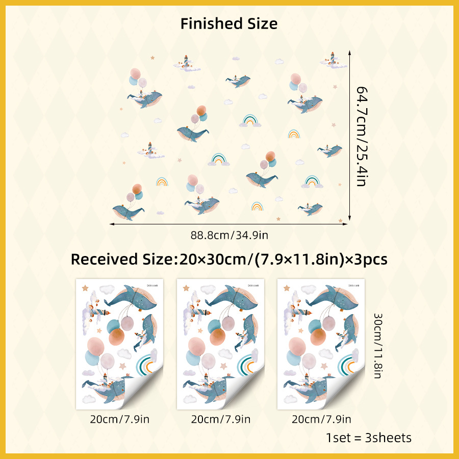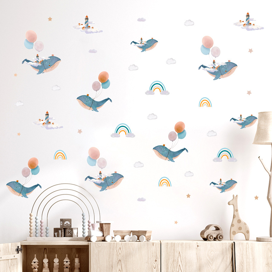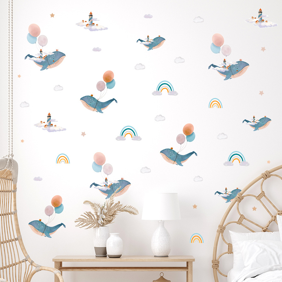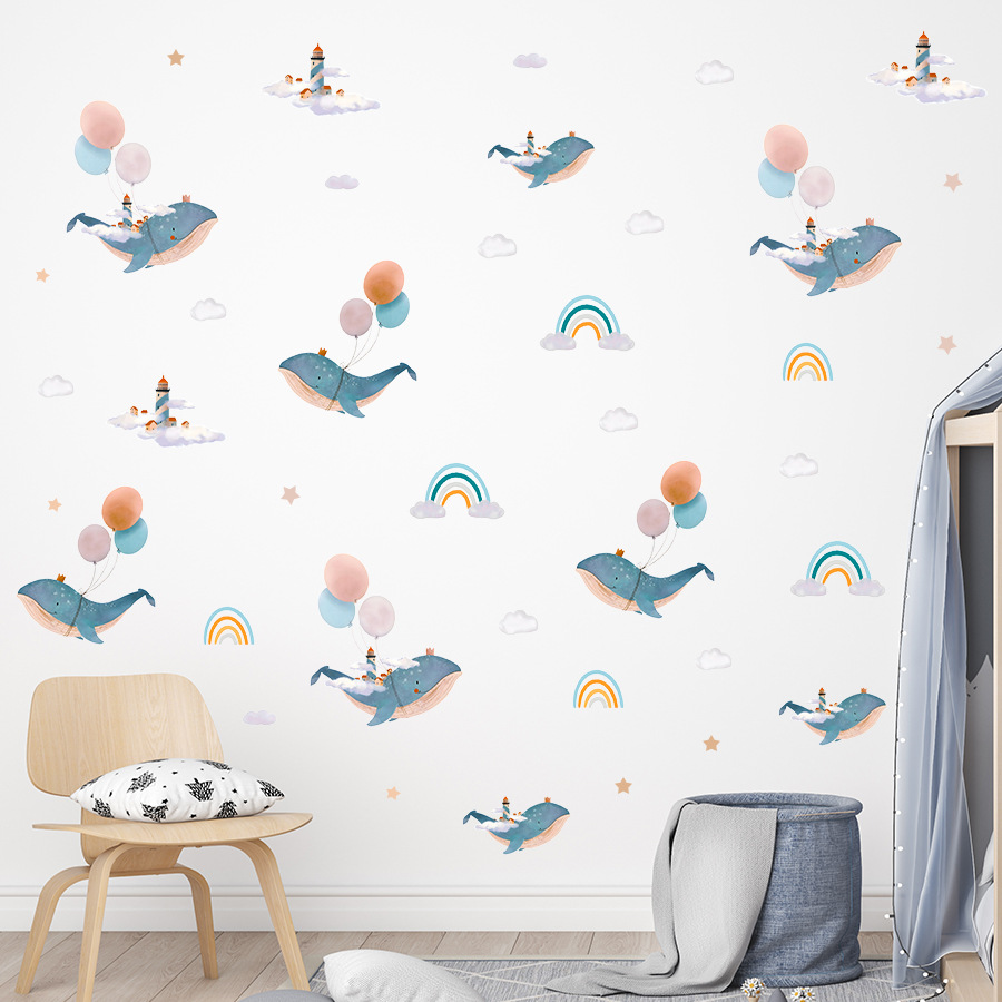 만화 판타지 고래 무지개 풍선 자체 접착 벽 스티커 어린이 방 거실 침실 장식 스티커 BR1100C