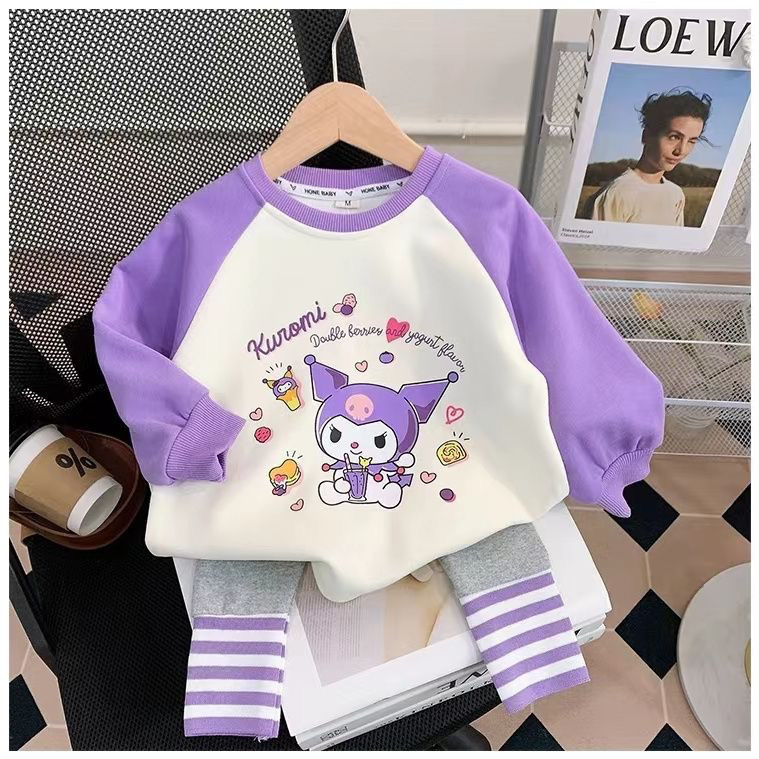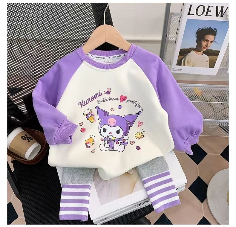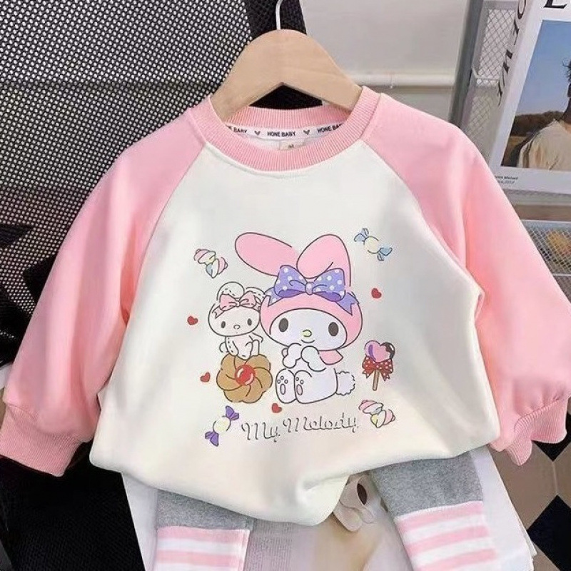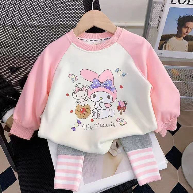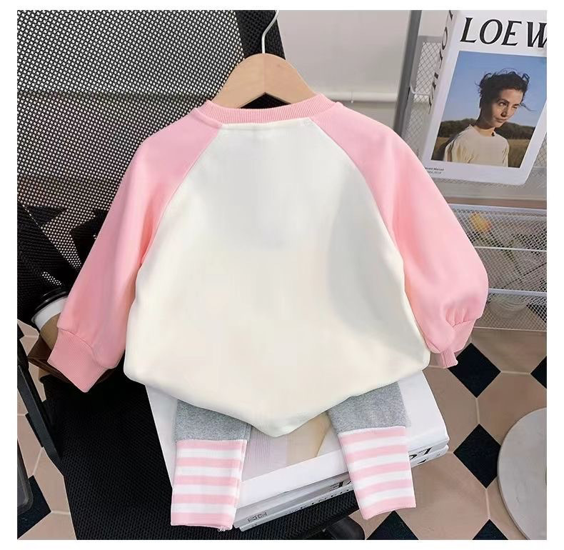 소녀의 봄 세트 2024 새로운 어린이 봄과 가을 옷 서양식 어린이 스웨트 셔츠 아기 레깅스 2 피스 세트