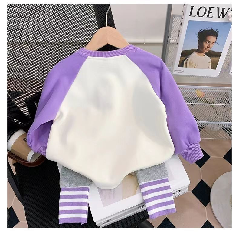 소녀의 봄 세트 2024 새로운 어린이 봄과 가을 옷 서양식 어린이 스웨트 셔츠 아기 레깅스 2 피스 세트스토어 가기