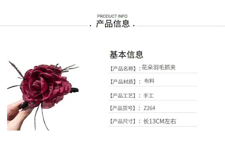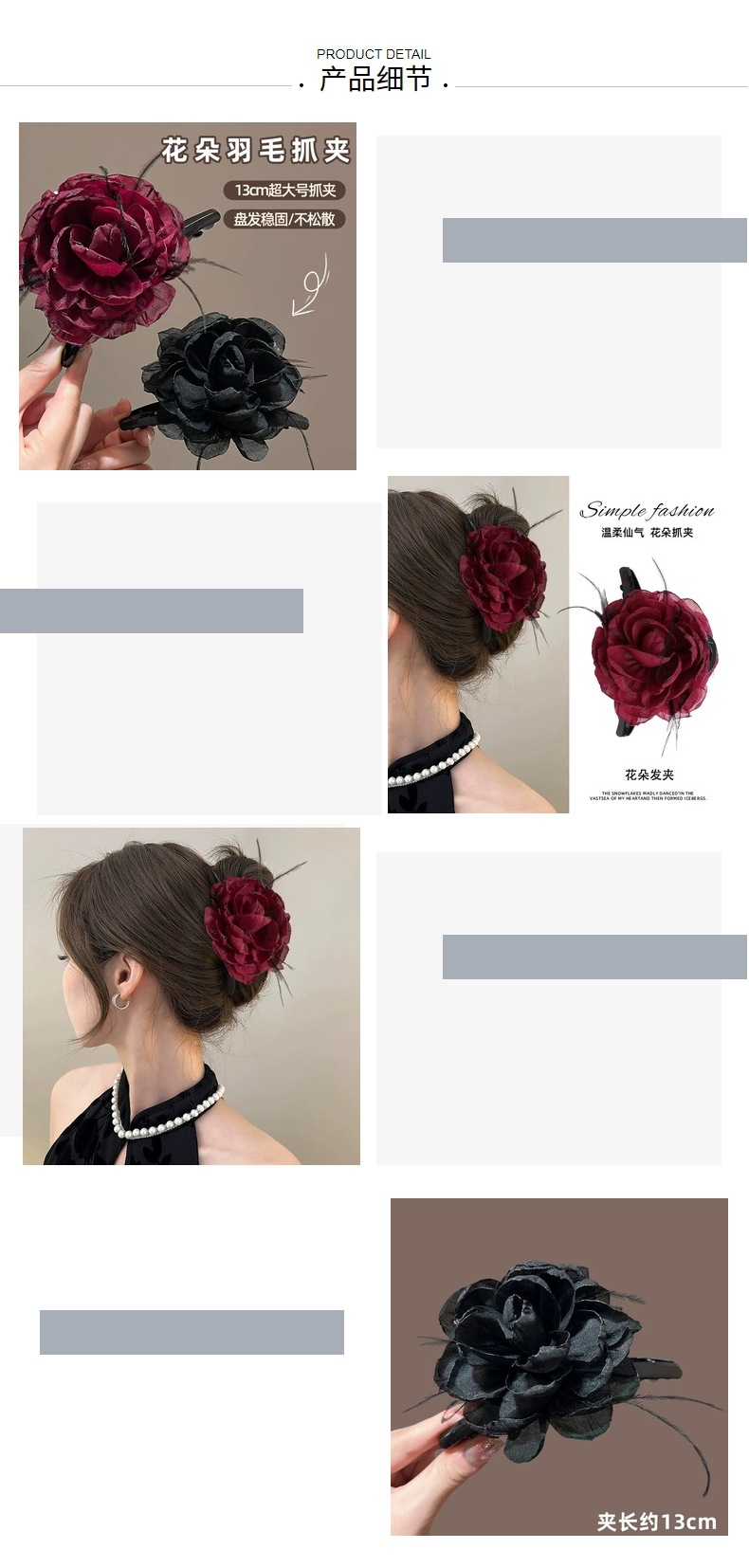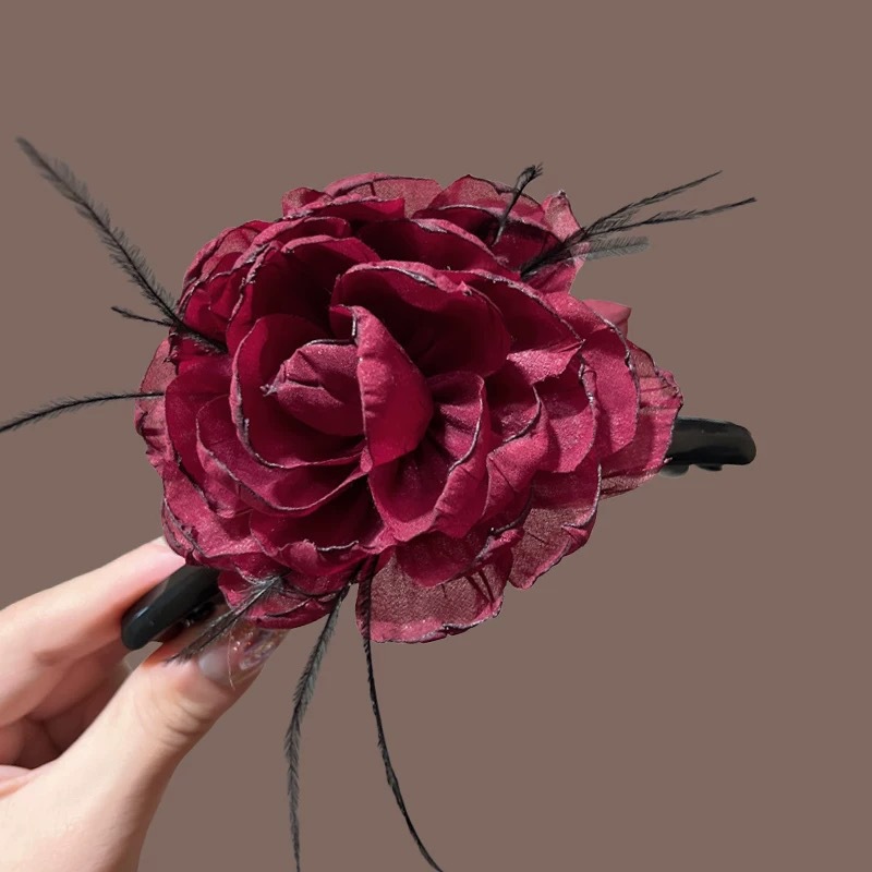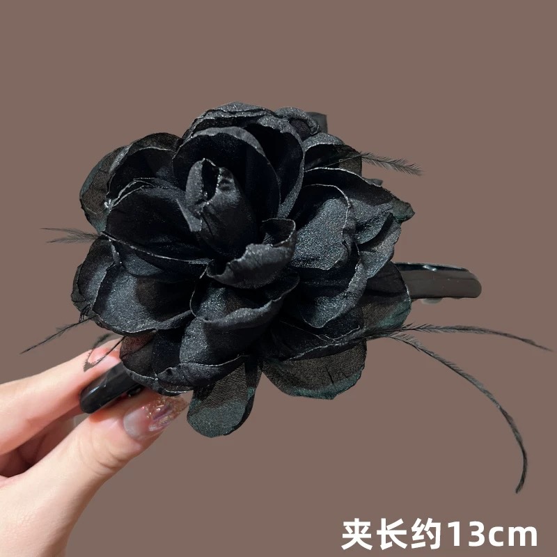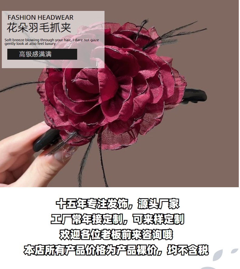 가을과 겨울 새로운 프랑스 패션 꽃 깃털 잡아 클립 레트로 하이 엔드 센스 머리 뒷면 상어 클립 헤드웨어 여성