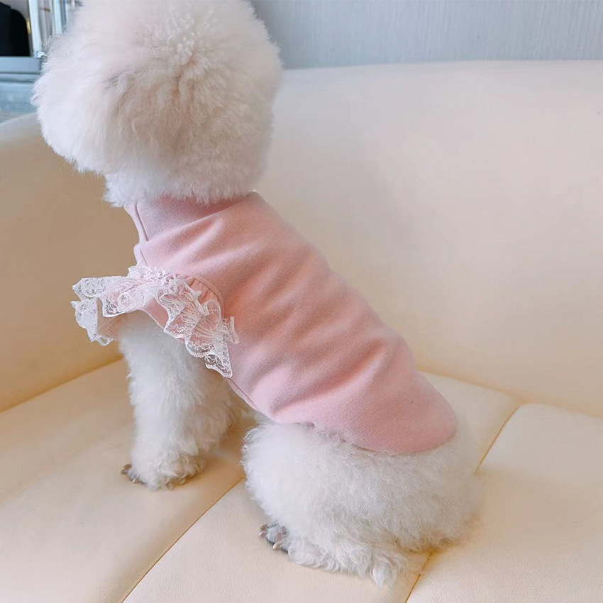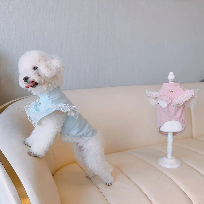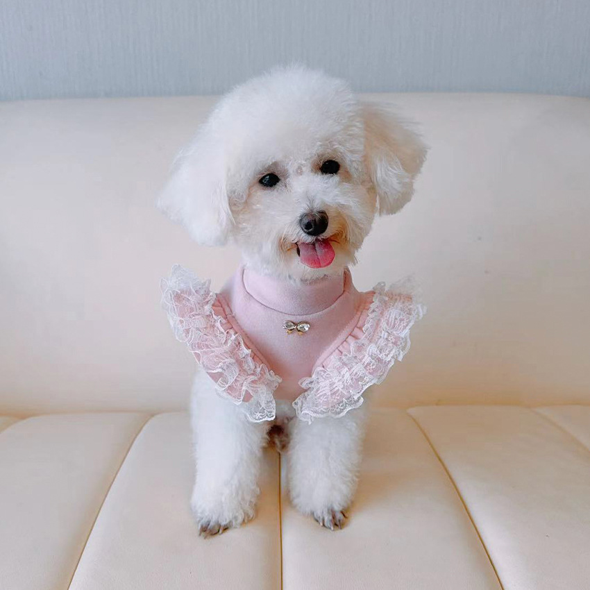 애완견 옷 가을 겨울 고양이 이너웨어 레이스 플라잉 슬리브 레이디 스타일 제조업체 소형 테디 비숑
