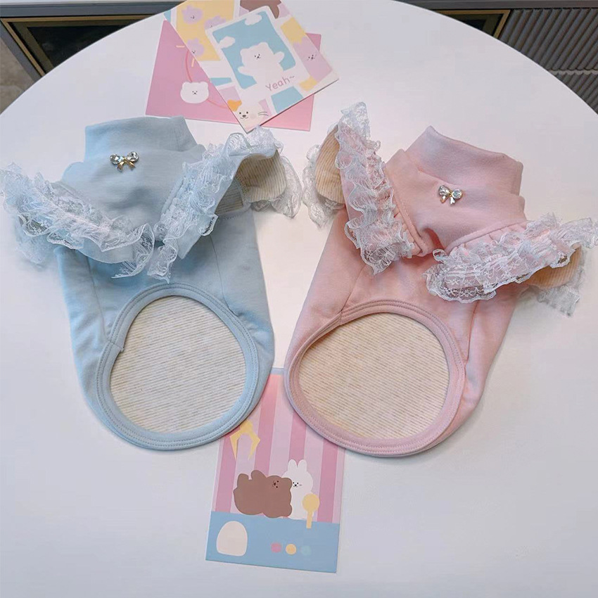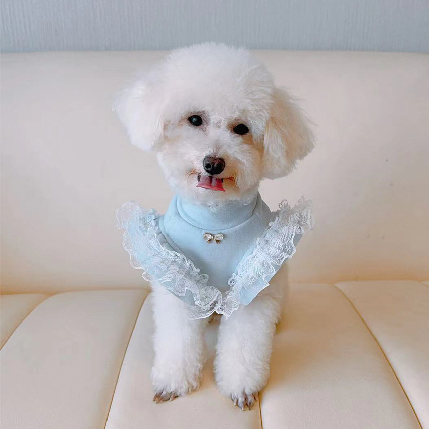 애완견 옷 가을 겨울 고양이 이너웨어 레이스 플라잉 슬리브 레이디 스타일 제조업체 소형 테디 비숑스토어 가기