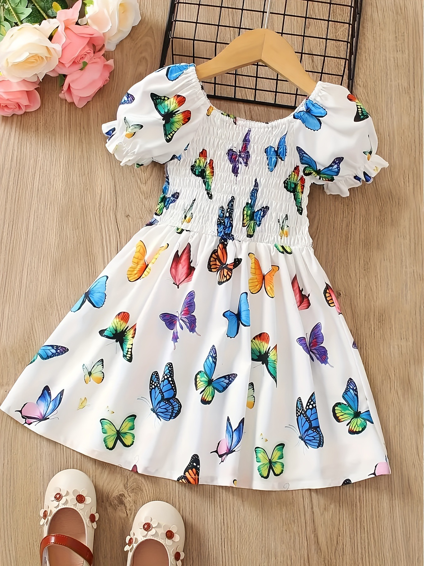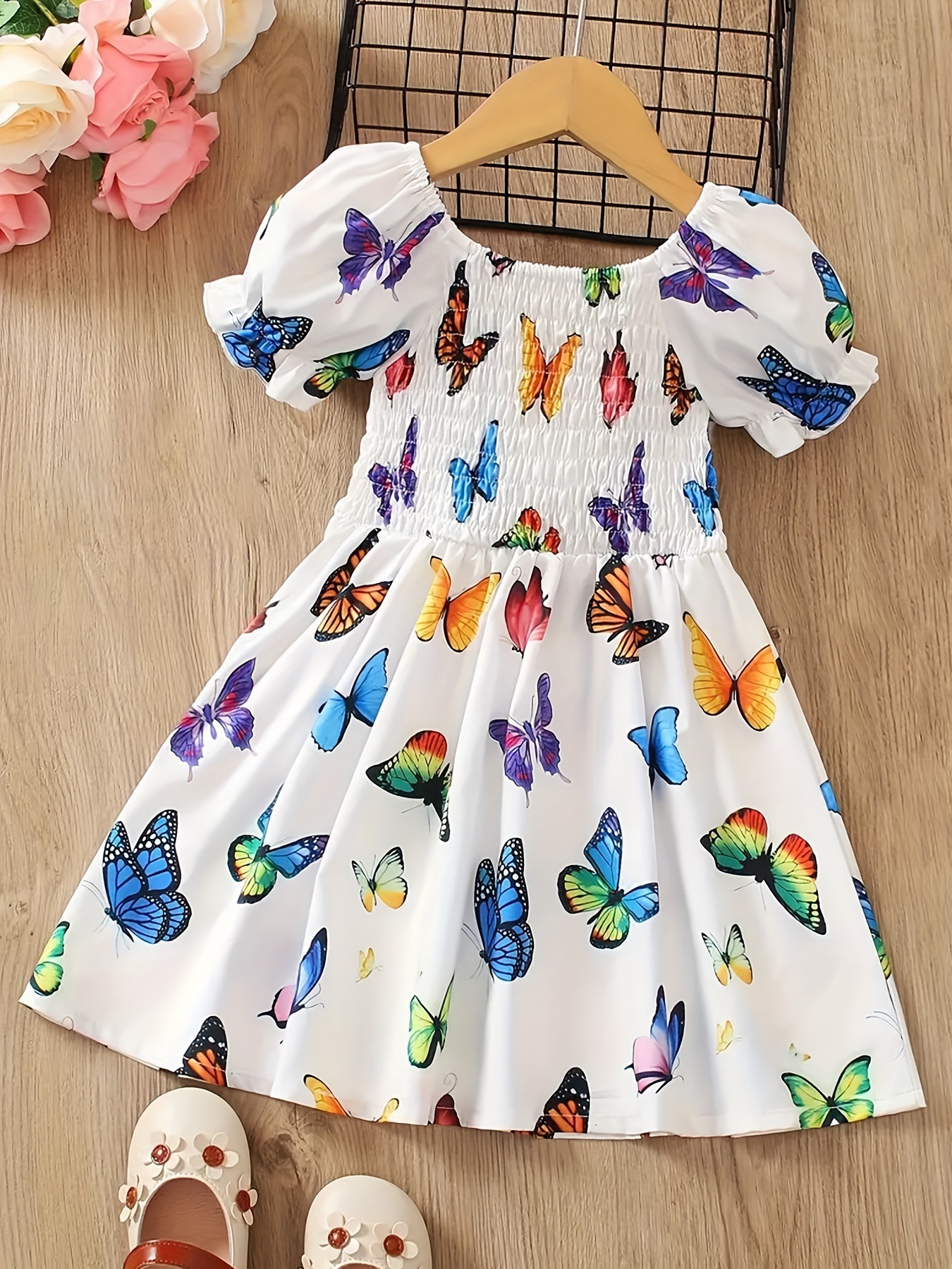 국경 간 무역 INS 소녀 활기찬 나비 전체 인쇄 원피스 어린이 여름 원피스 적합 1-8 년스토어 가기