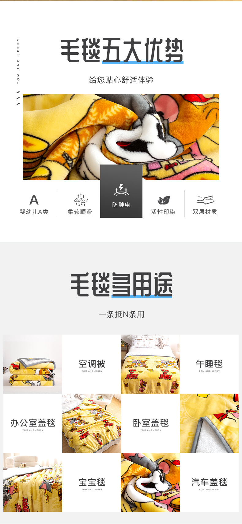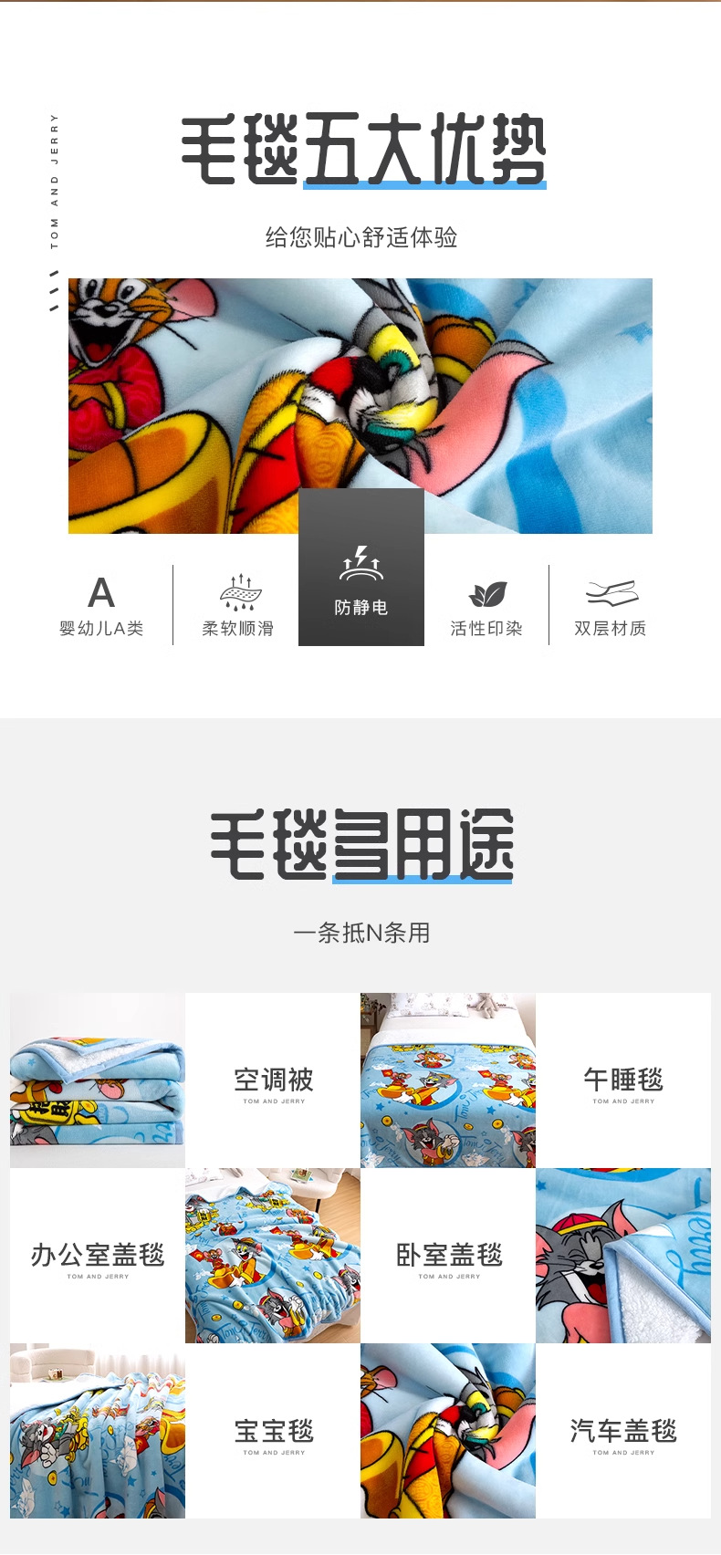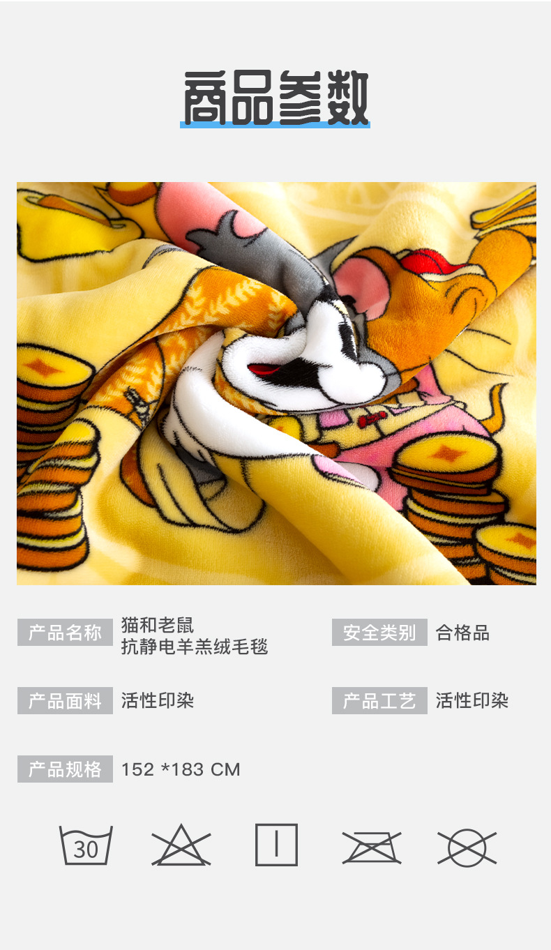• 톰 앤 제리 정전기 방지 따뜻한 양털 담요(위안바오)