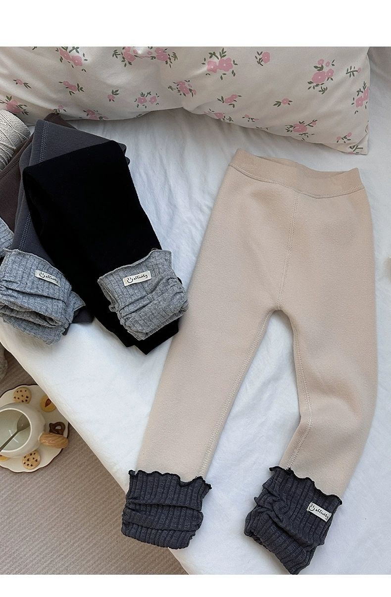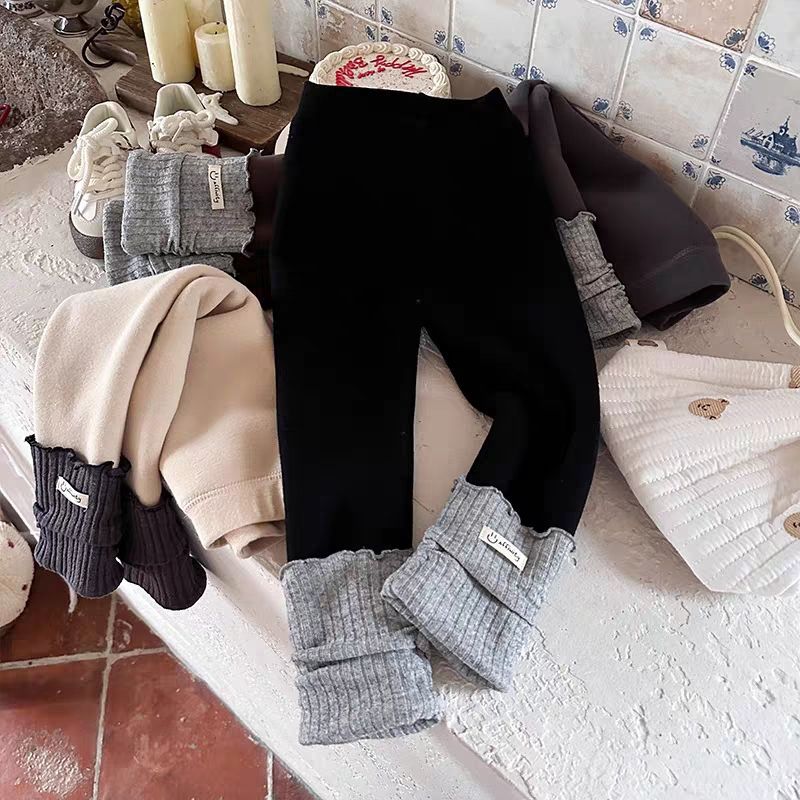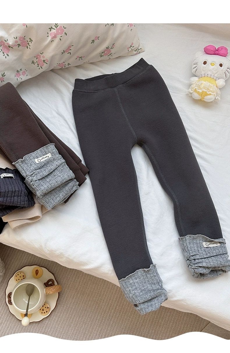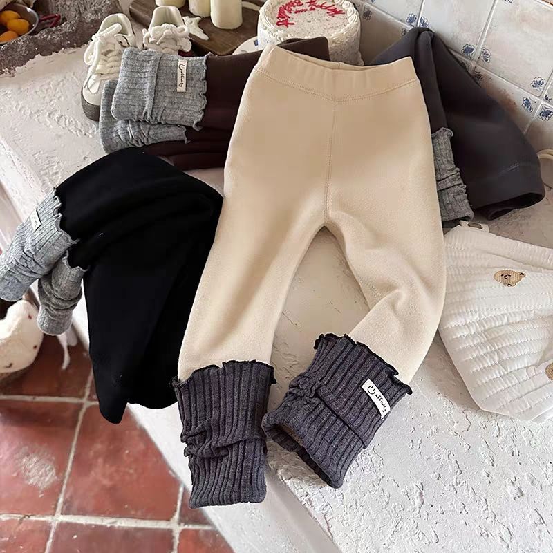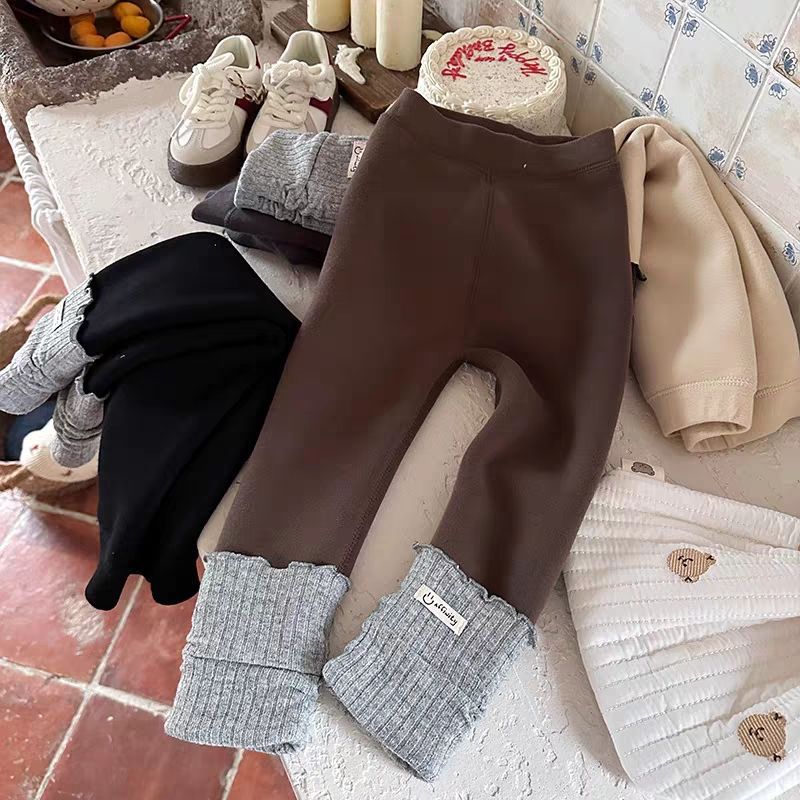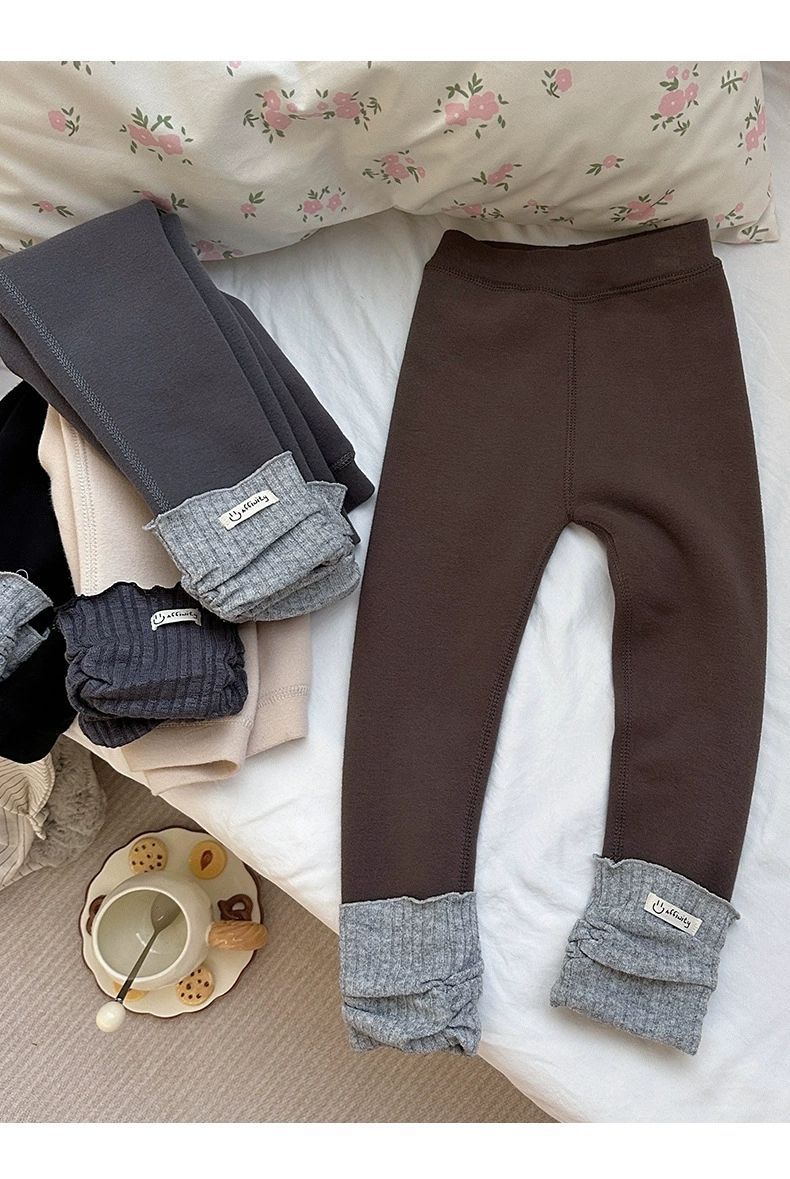 여아 가을 겨울 레깅스, 아기들을 위한 스타일리쉬한 아동용 트렌디한 한국 스타일 배색 기모 패딩 팬츠