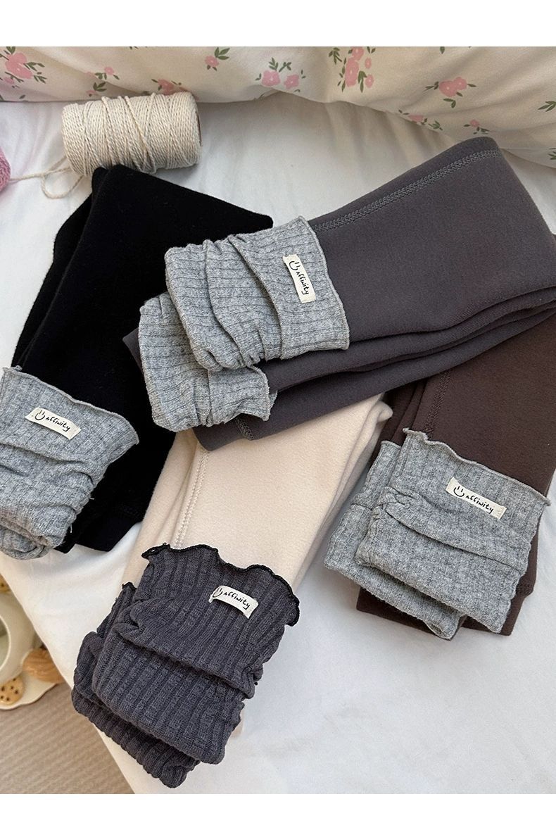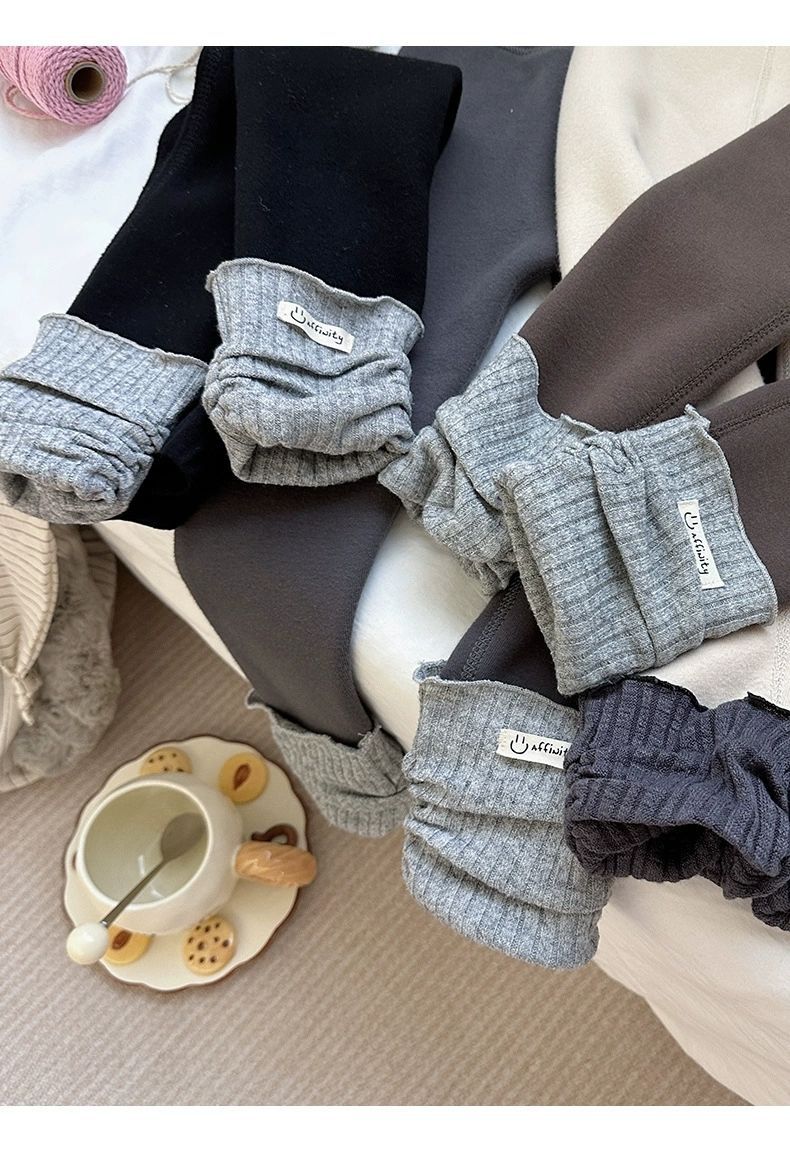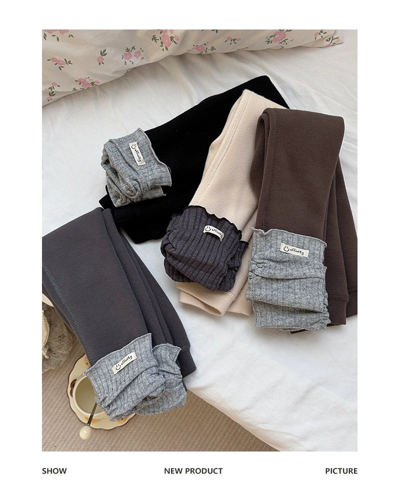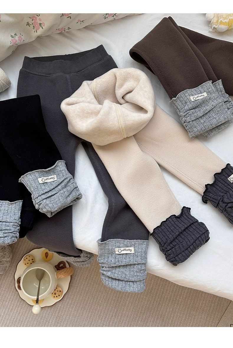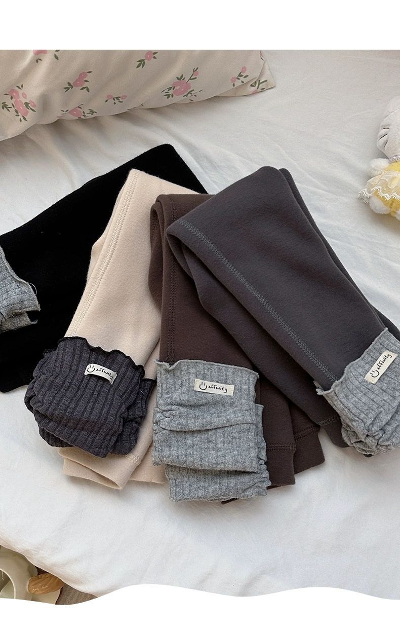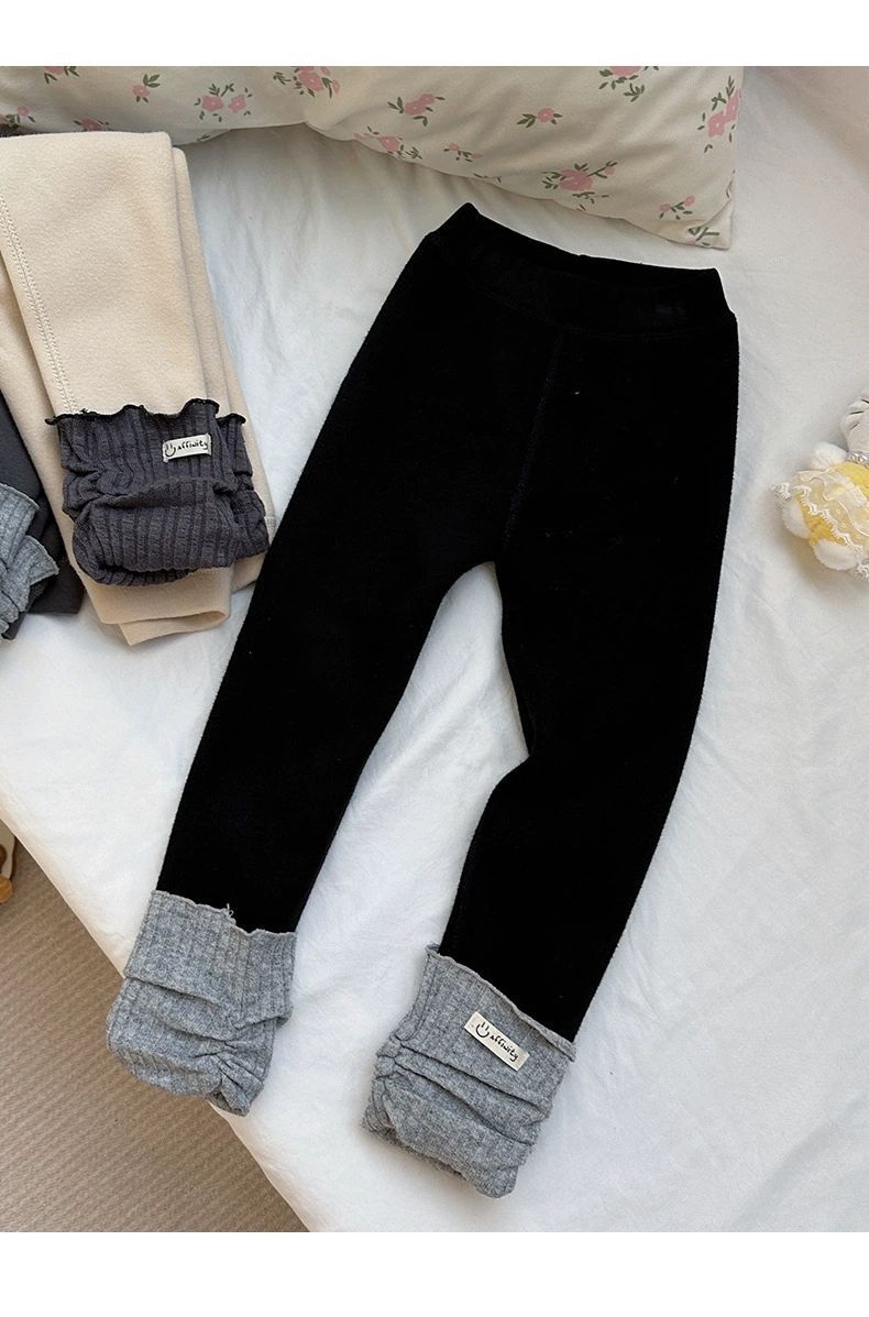 여아 가을 겨울 레깅스, 아기들을 위한 스타일리쉬한 아동용 트렌디한 한국 스타일 배색 기모 패딩 팬츠
