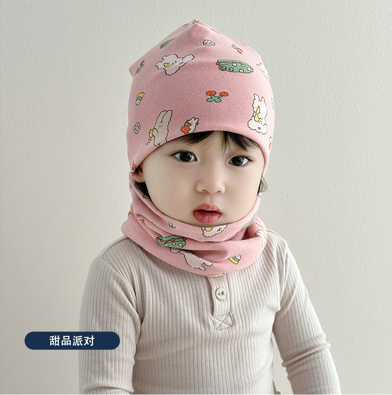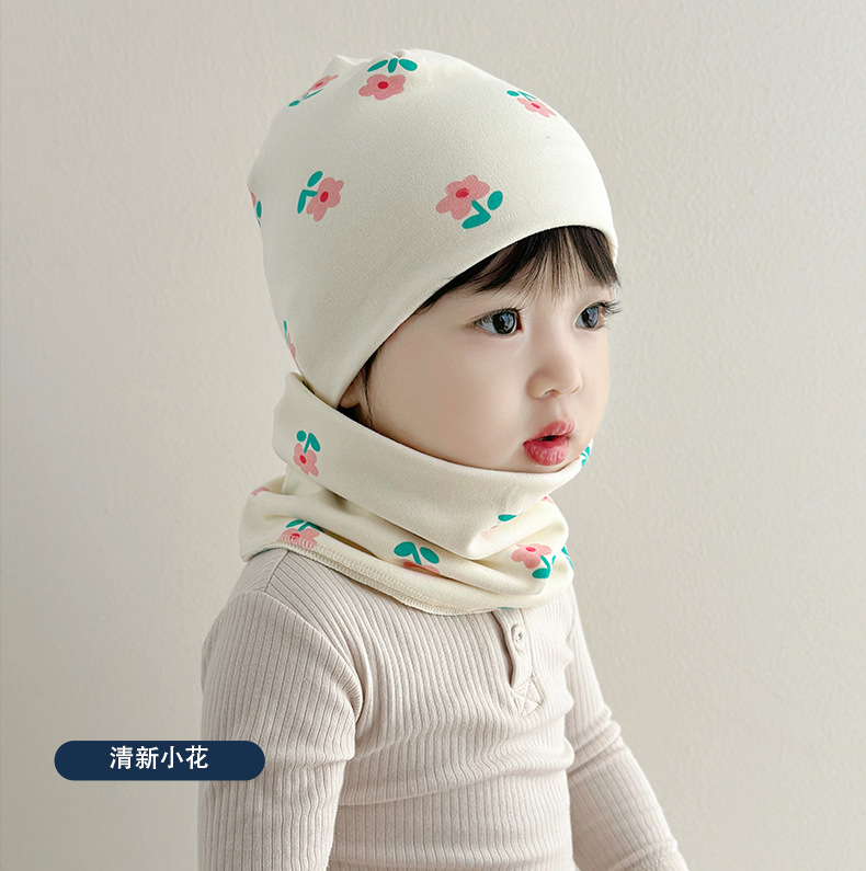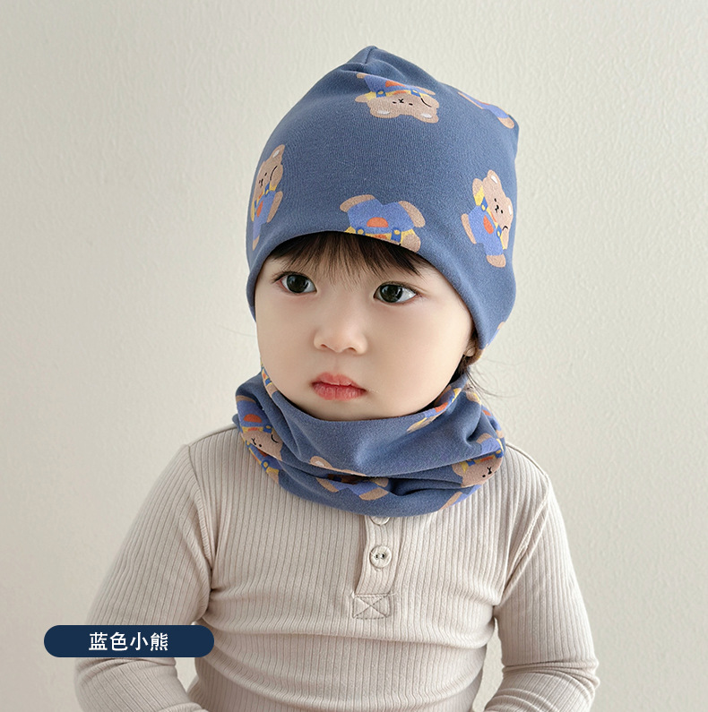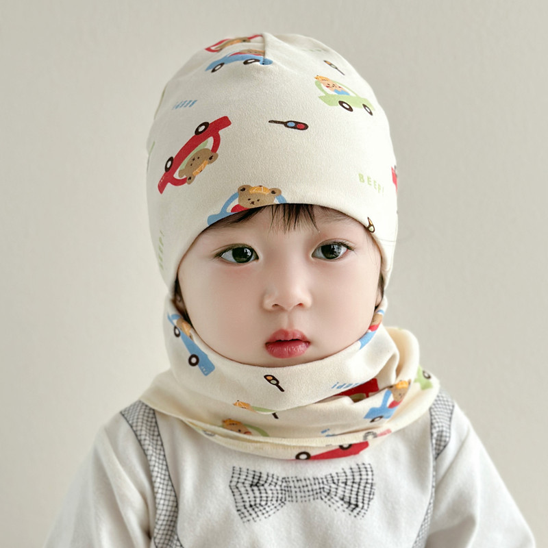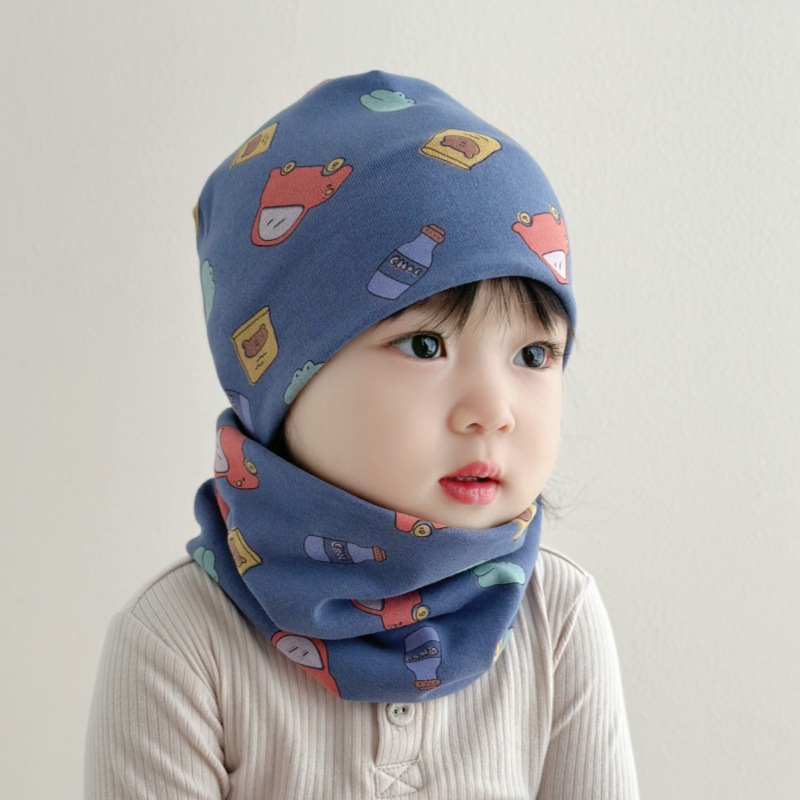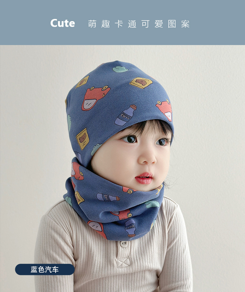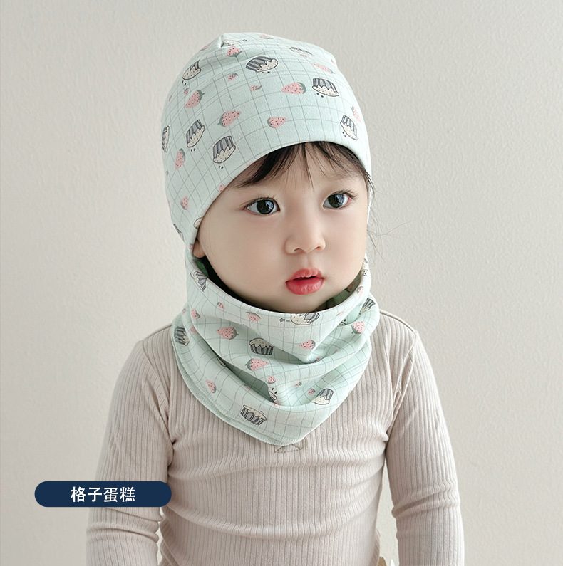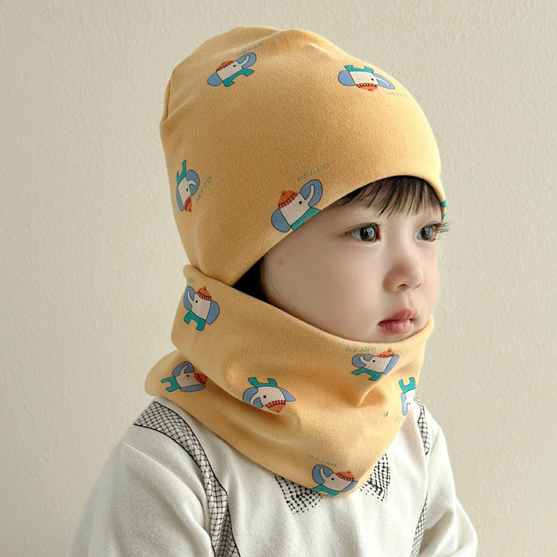 아기 모자 가을과 겨울 면화 아기 더블 레이어 따뜻한 아기 겨울 스카프 두 조각 세트 소년과 소녀 만화스토어 가기