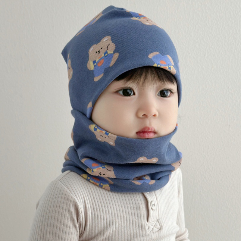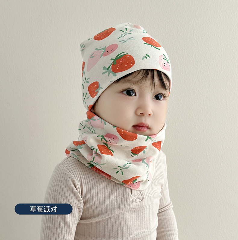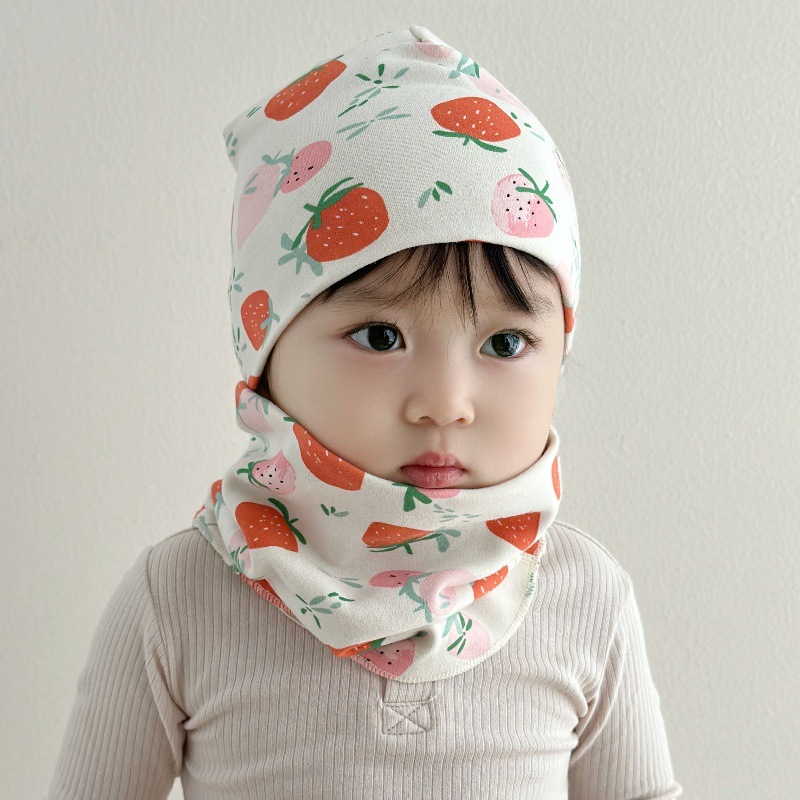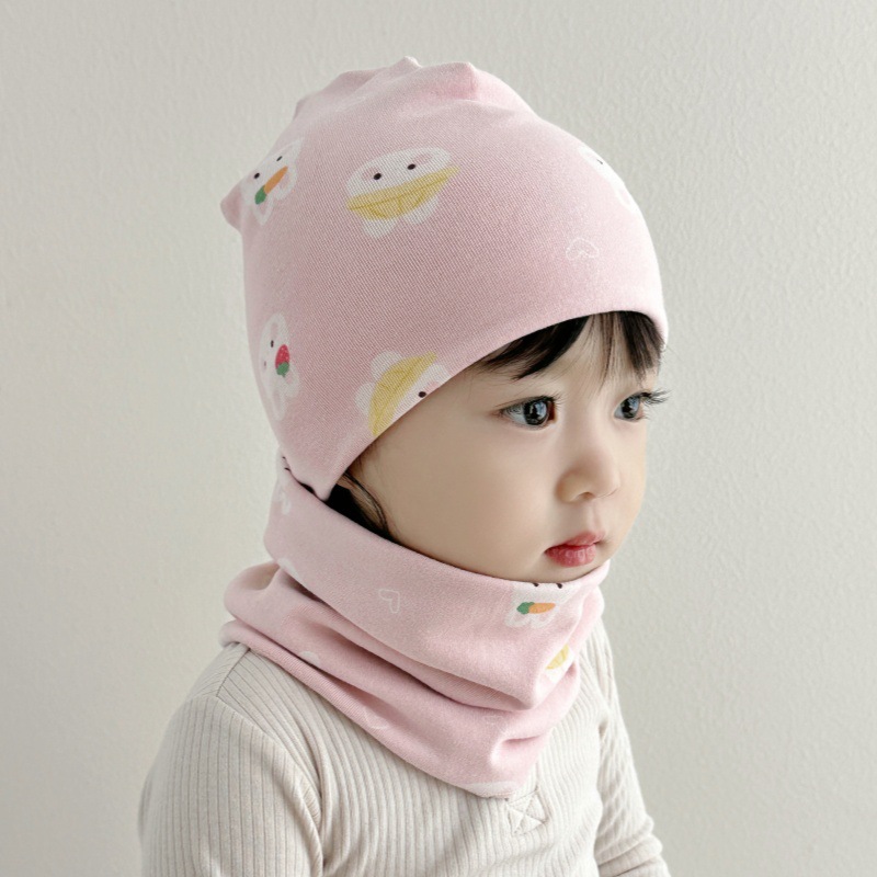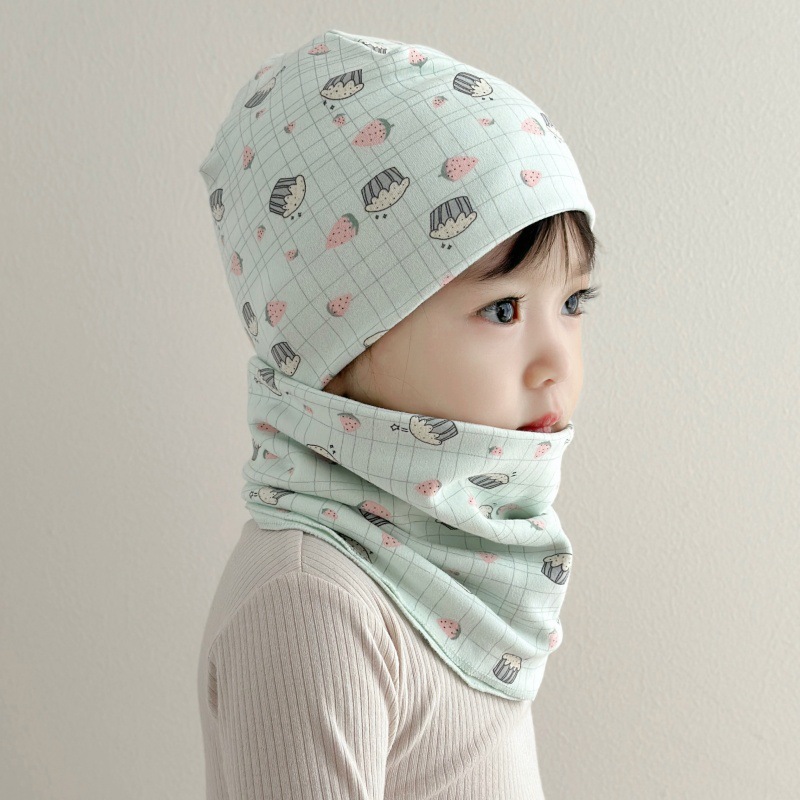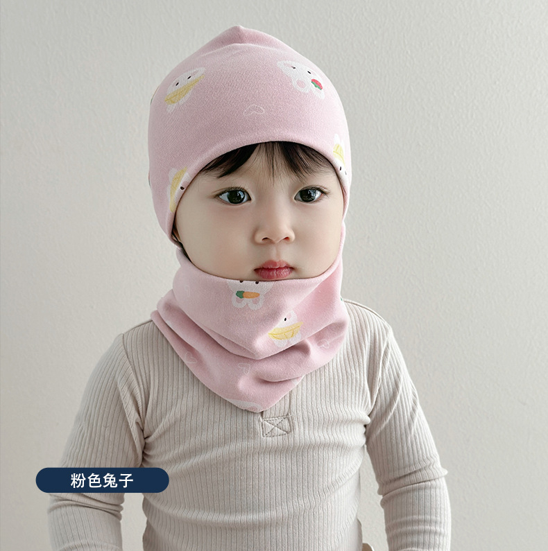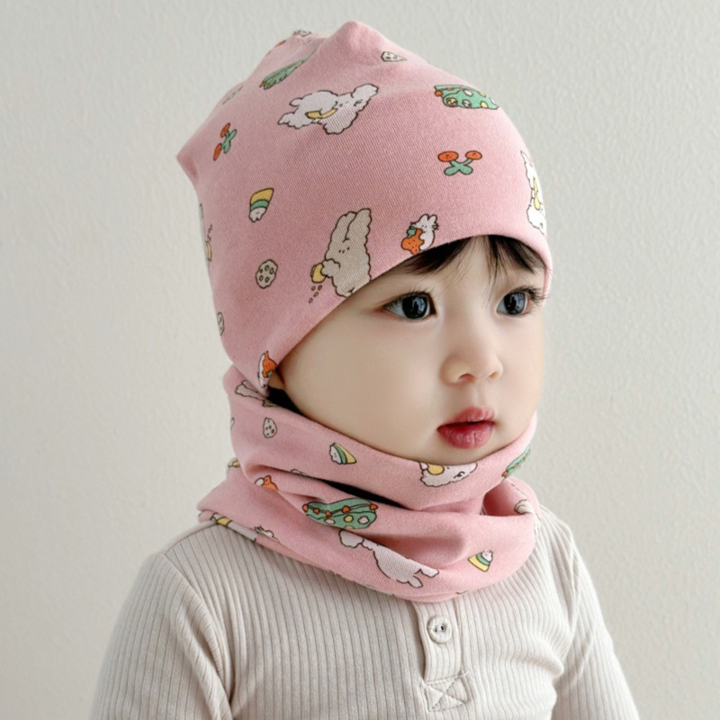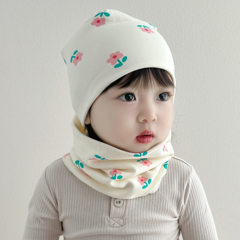 아기 모자 가을과 겨울 면화 아기 더블 레이어 따뜻한 아기 겨울 스카프 두 조각 세트 소년과 소녀 만화스토어 가기