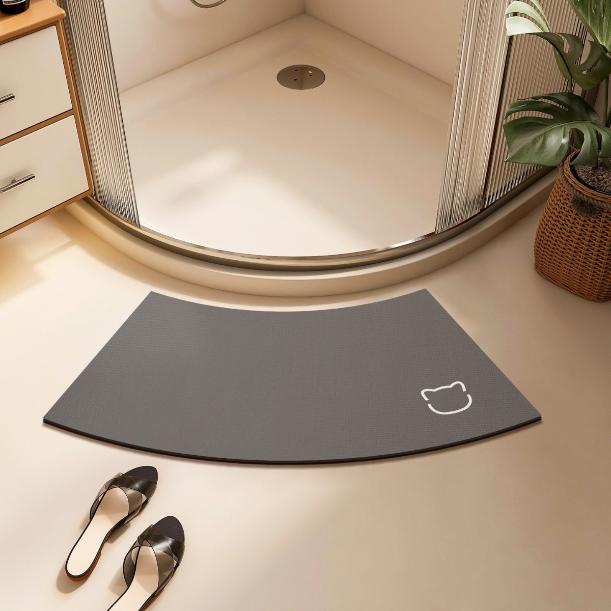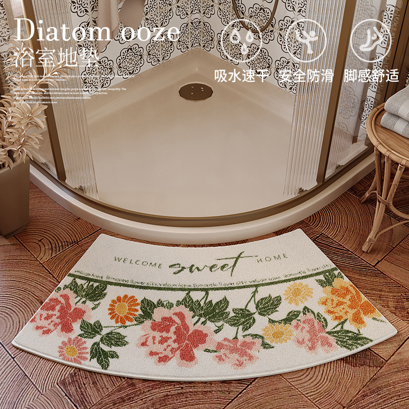 弧形浴室地垫卫生间防滑强吸水地毯淋浴房扇形半圆硅藻泥速干脚垫