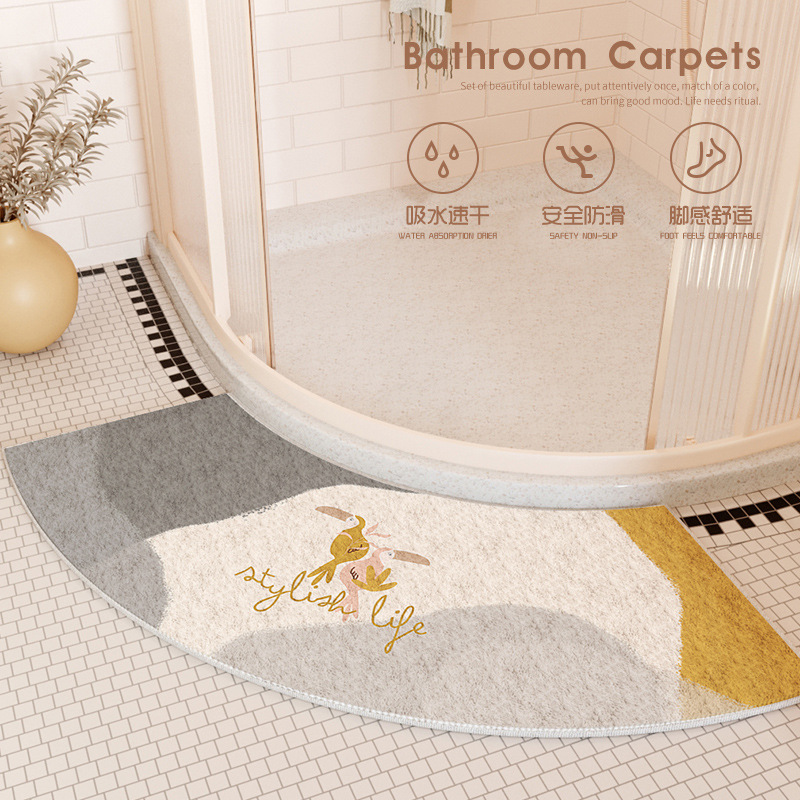 욕실 샤워 실 입구 세미 아크 바닥 매트 화장실 물 흡수 미끄럼 방지 발 매트 습식 및 건식 분리 카펫스토어 가기