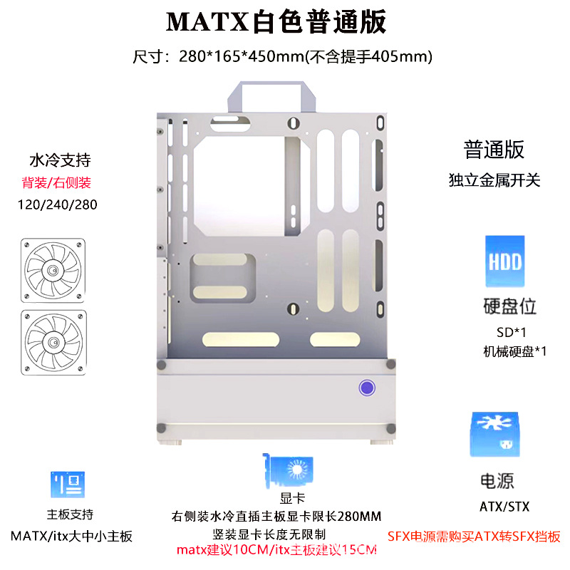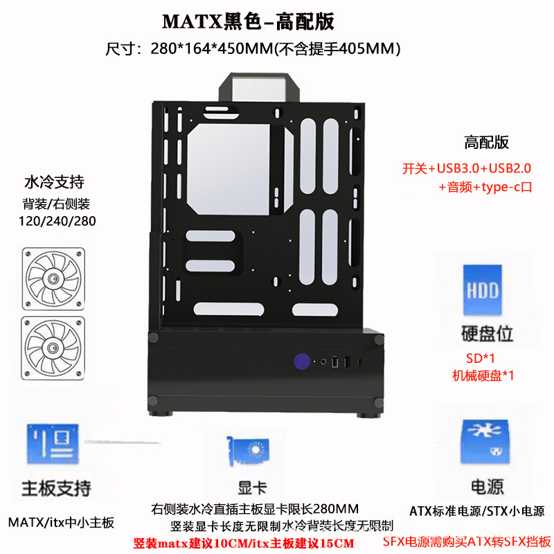 오픈 섀시 240/360 수냉식 공랭식 랙 ATX/MATX 그래픽 카드 수직 데스크탑 호스트 소형 섀시