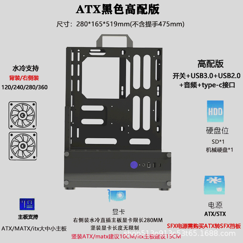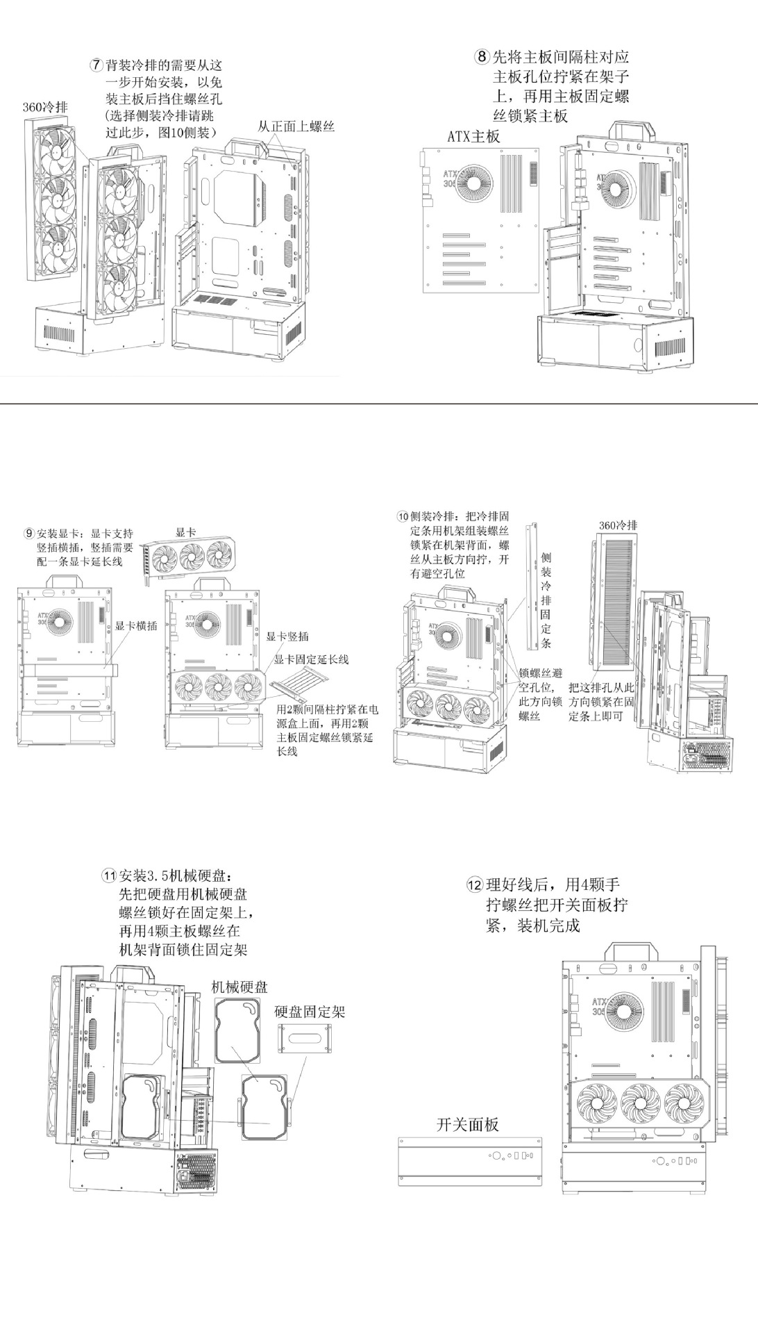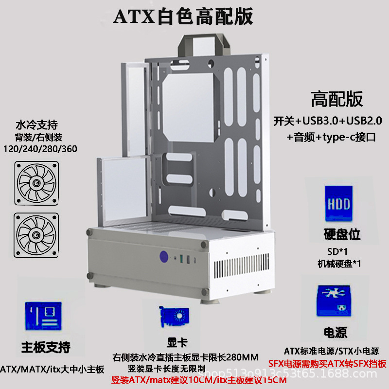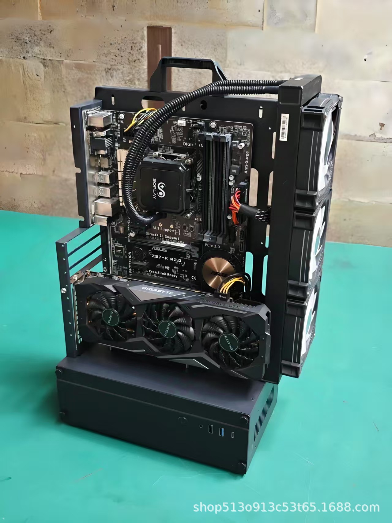 오픈 섀시 240/360 수냉식 공랭식 랙 ATX/MATX 그래픽 카드 수직 데스크탑 호스트 소형 섀시스토어 가기