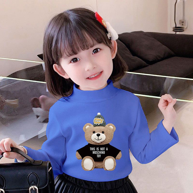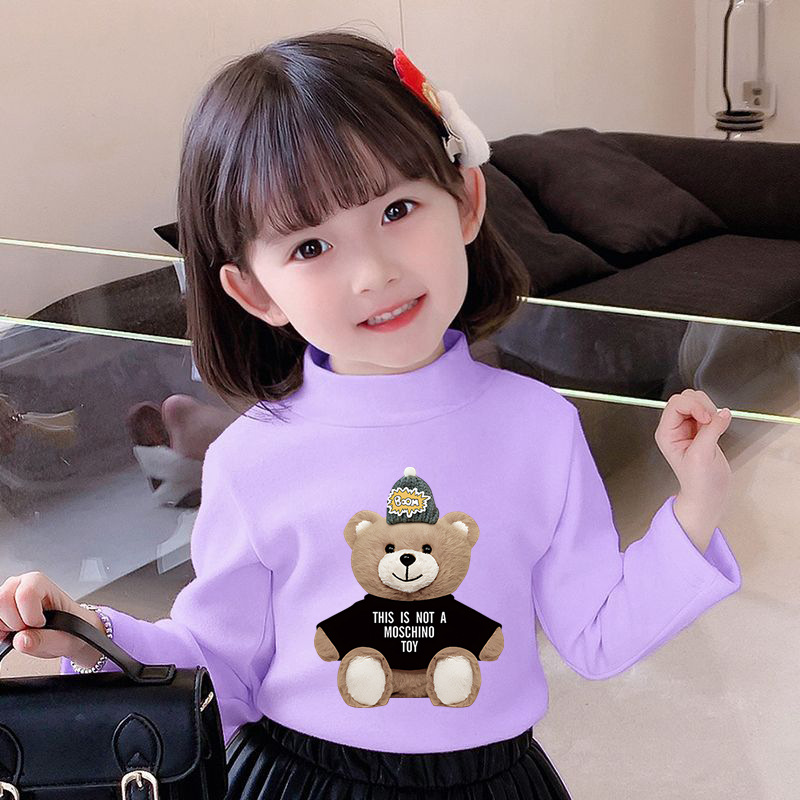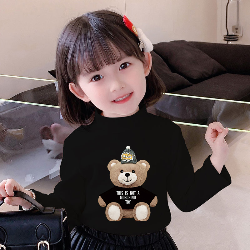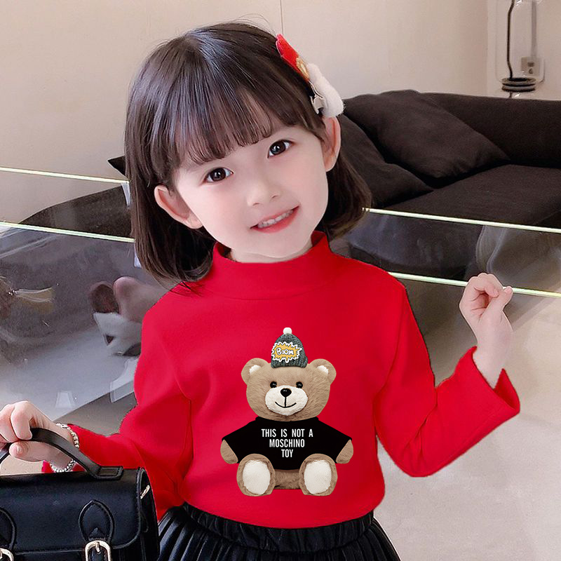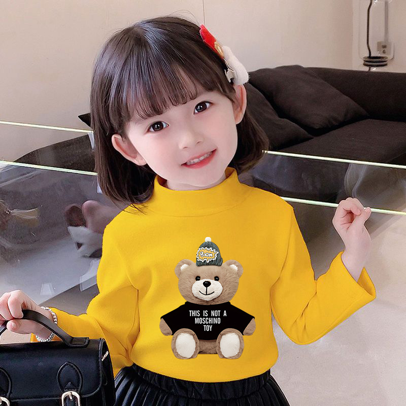 Y2550 # 어린이 소녀 가을 옷 소녀 긴 소매 티셔츠 봄과 가을 재킷베이스 셔츠 드 벨벳 세미 하이 칼라 따뜻한 티셔츠