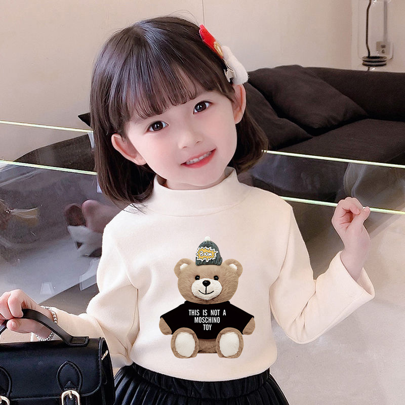 Y2550 # 어린이 소녀 가을 옷 소녀 긴 소매 티셔츠 봄과 가을 재킷베이스 셔츠 드 벨벳 세미 하이 칼라 따뜻한 티셔츠스토어 가기