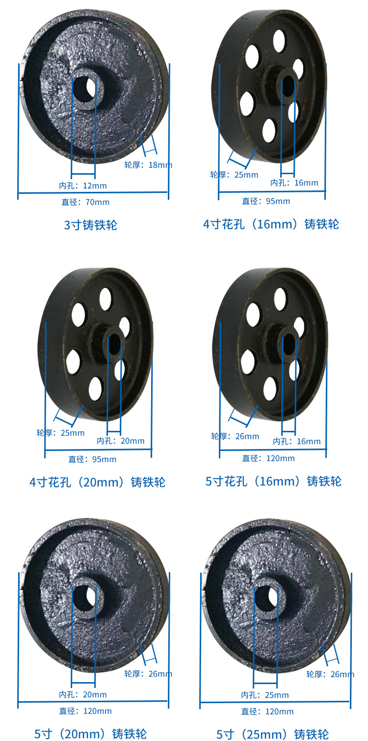주철 휠 공기 압축기 휠 대형 무거운 철 코어 캐스터 3 인치 4 인치 5 인치 6 인치 8 인치 솔리드 아이언 휠 도매스토어 가기