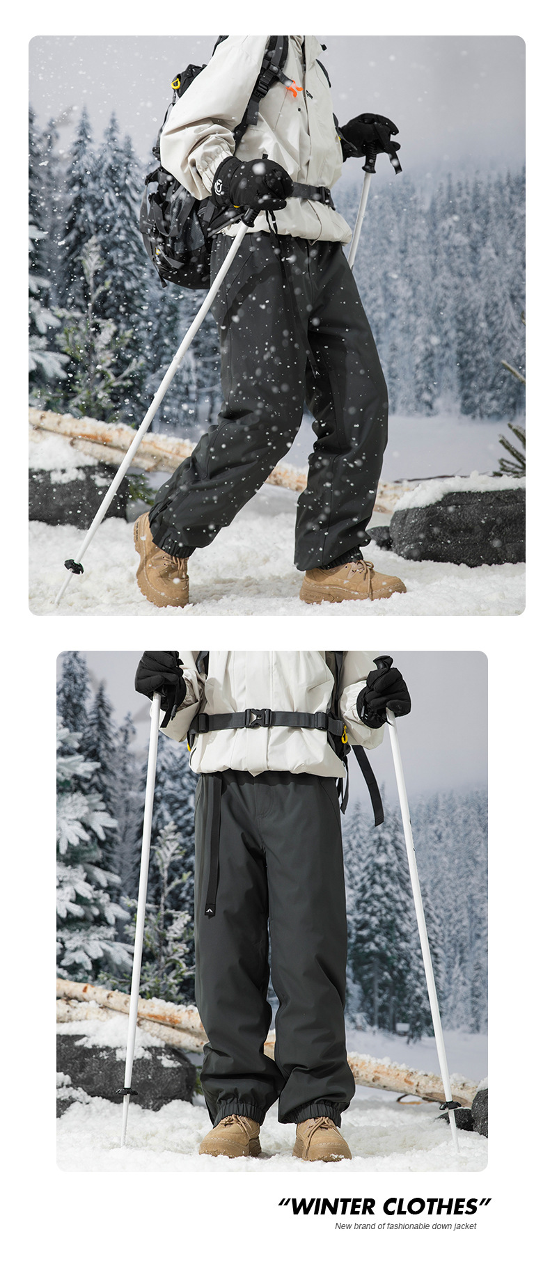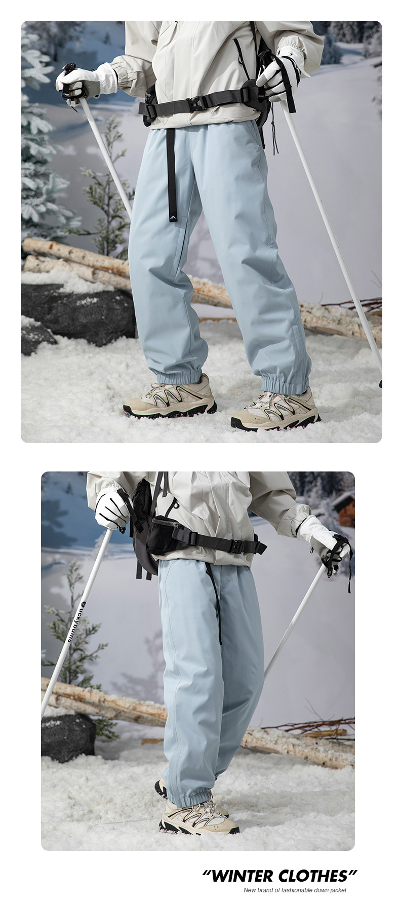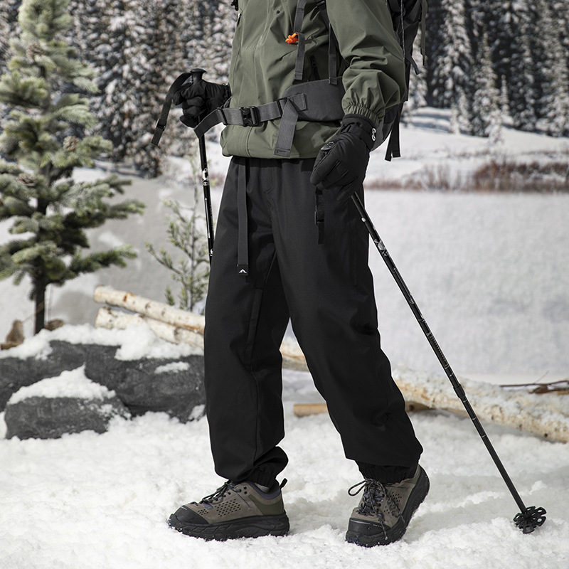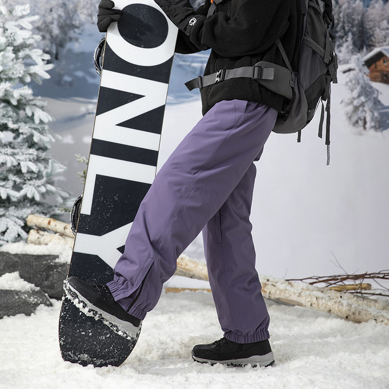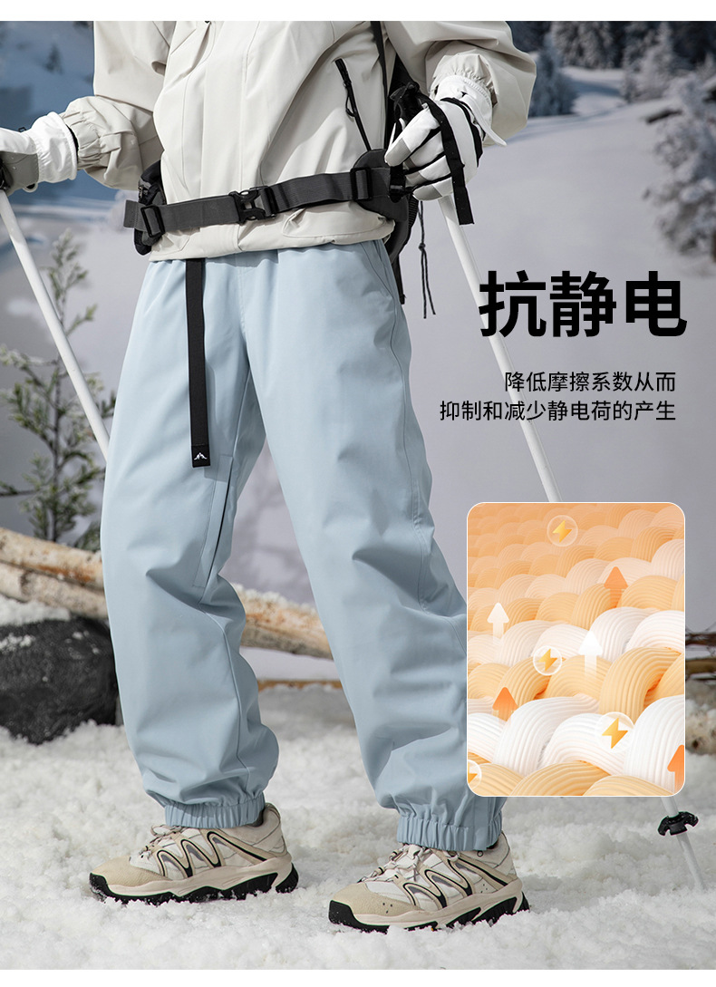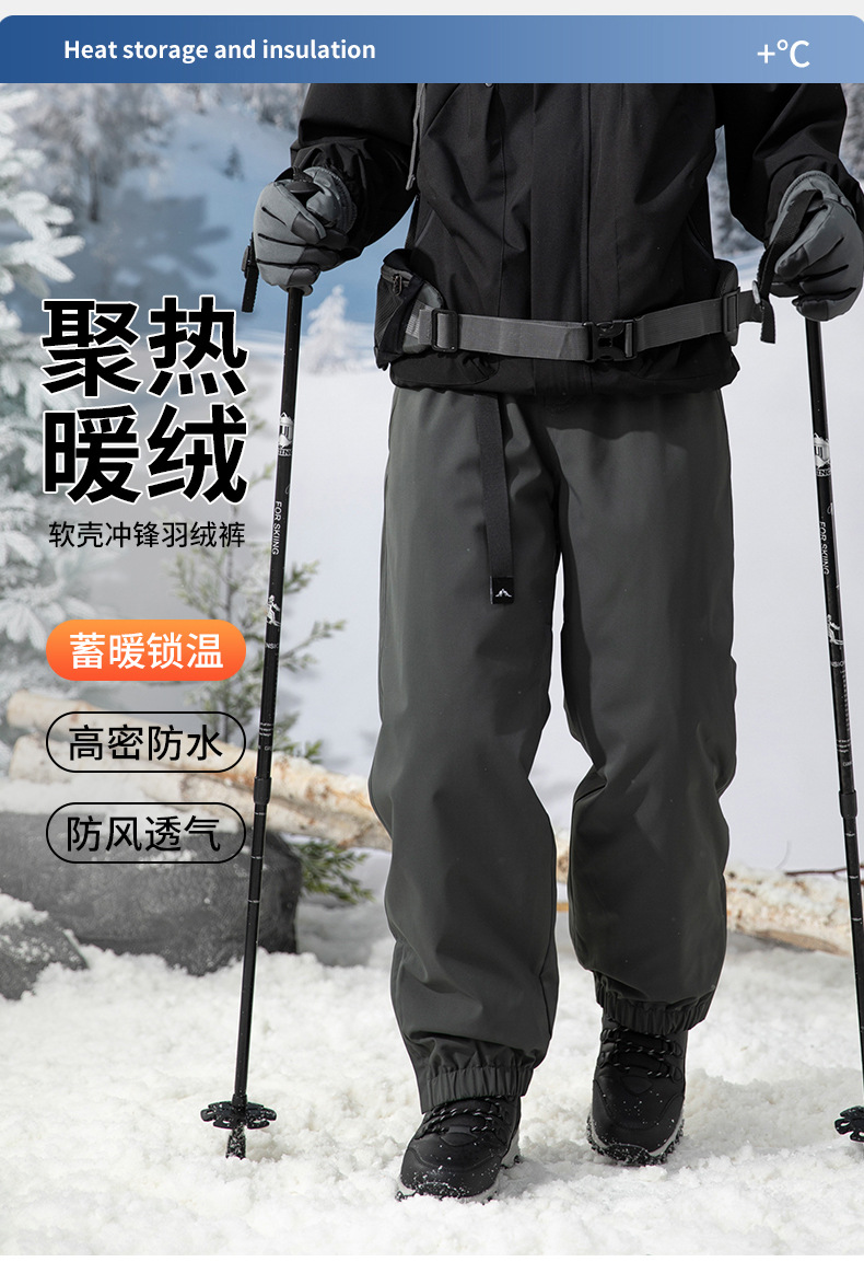 방한 흰색 오리 다운 충전 바지 남자의 겨울 기모 두꺼운 방수 방풍 등반 스키 바지 여자 바지