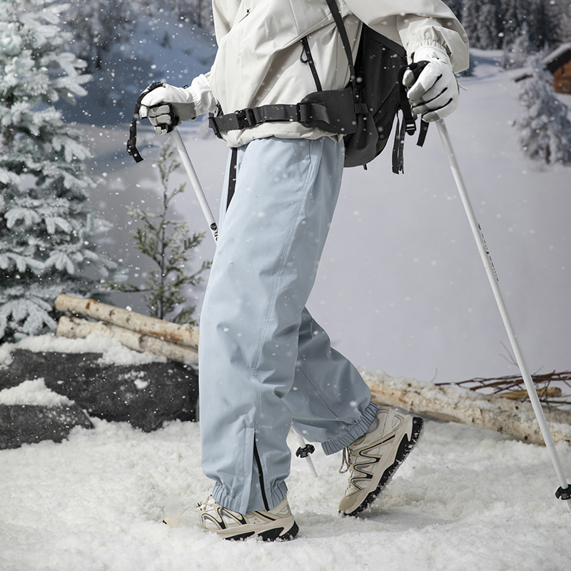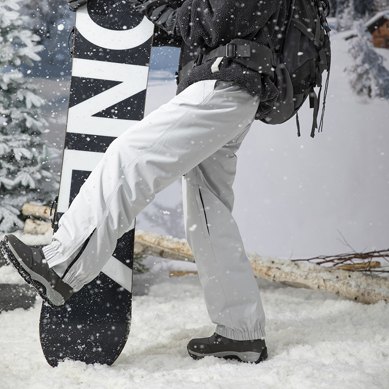 방한 흰색 오리 다운 충전 바지 남자의 겨울 기모 두꺼운 방수 방풍 등반 스키 바지 여자 바지스토어 가기