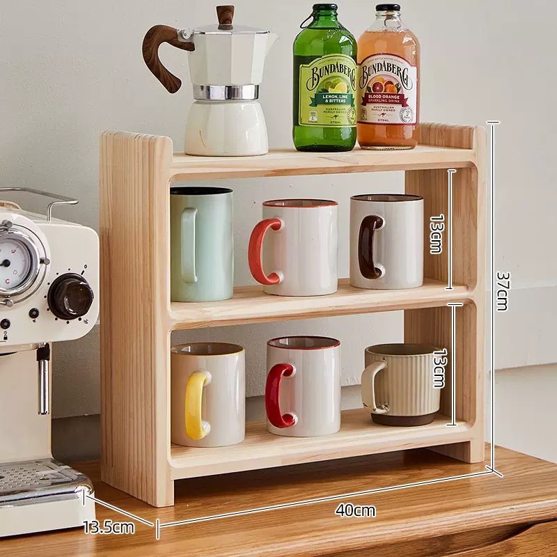 새로운 중국식 스토리지 랙 솔리드 우드 라디아타 파인 데스크탑 3 층 스토리지 랙 컵 홀더 크리에이티브 티 세트 커피 스토리지 랙스토어 가기