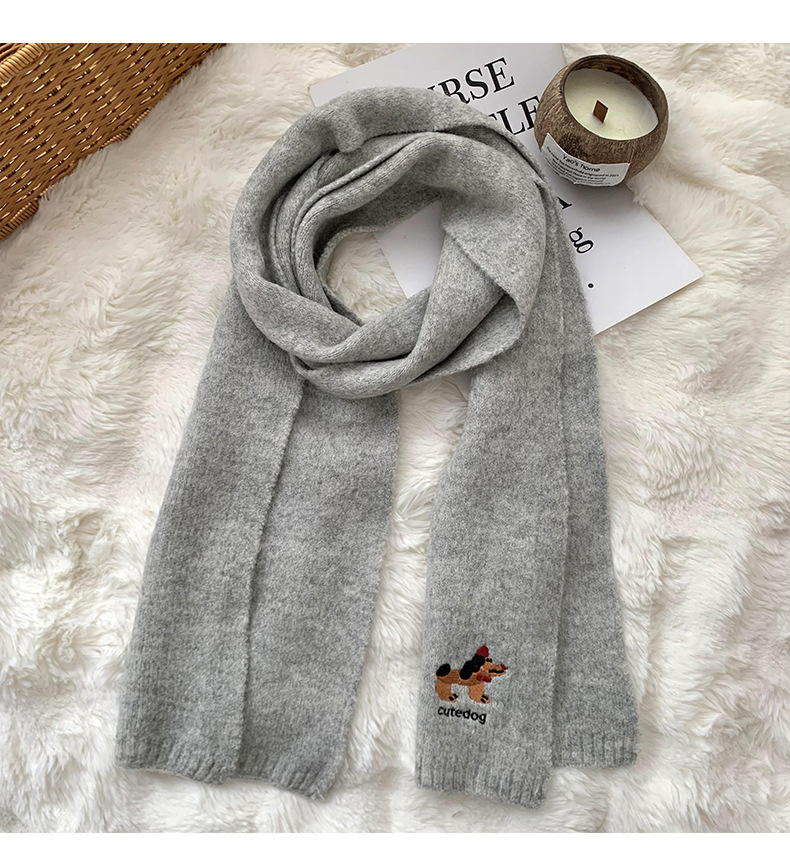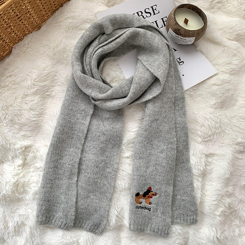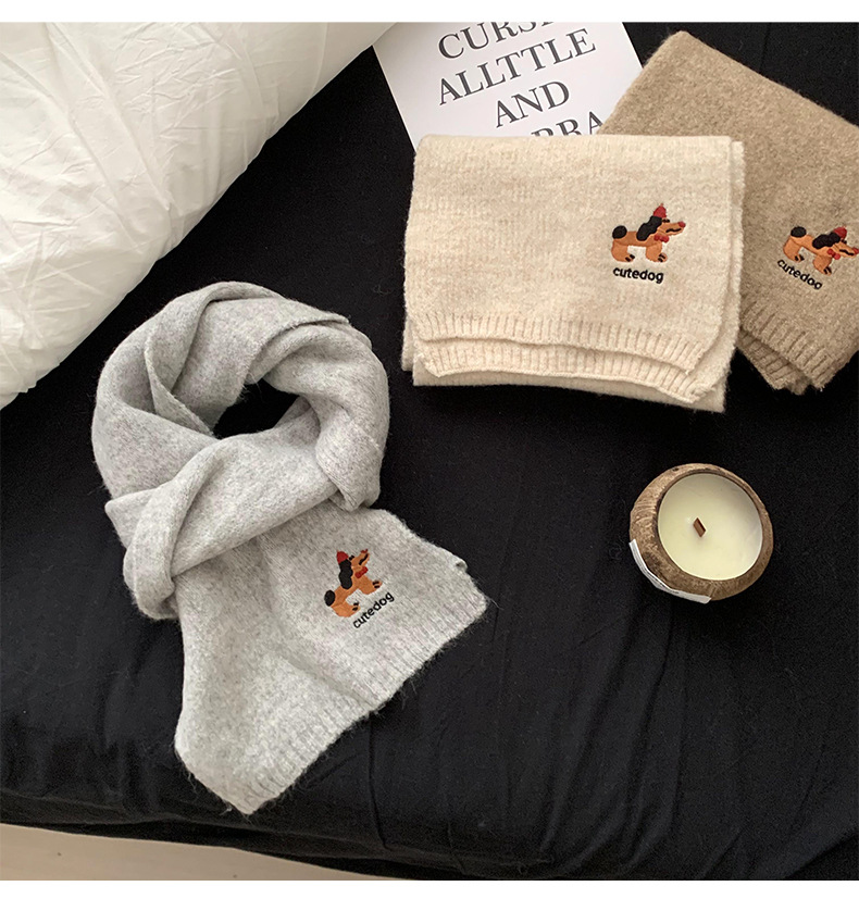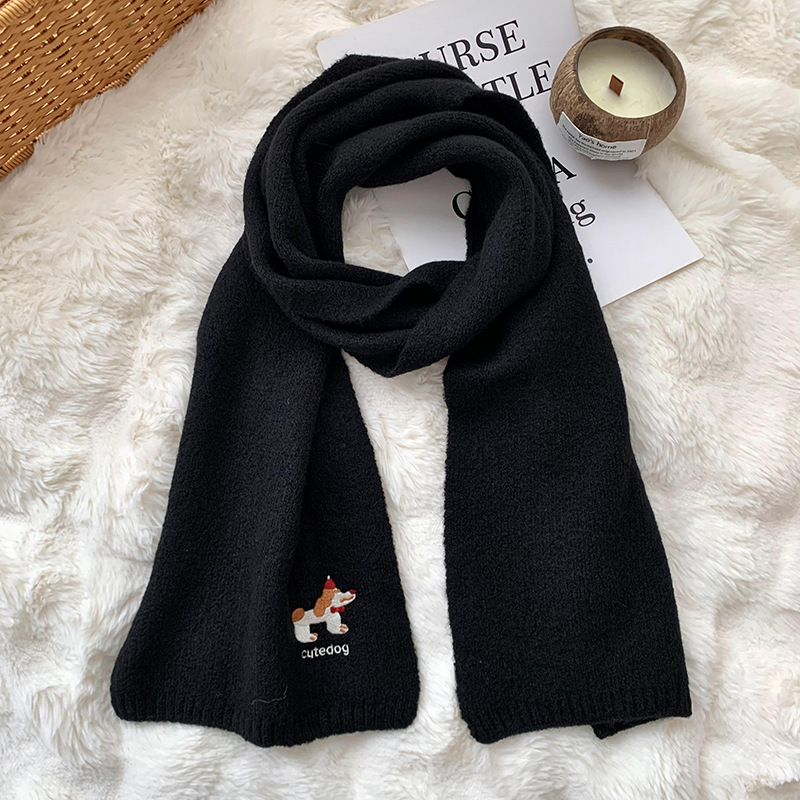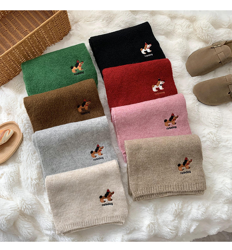 가을과 겨울 스카프 여성의 가을과 겨울 2024 새로운 따뜻한 올 매치 아카데미 스타일 강아지 자수 캐시미어 니트 스카프