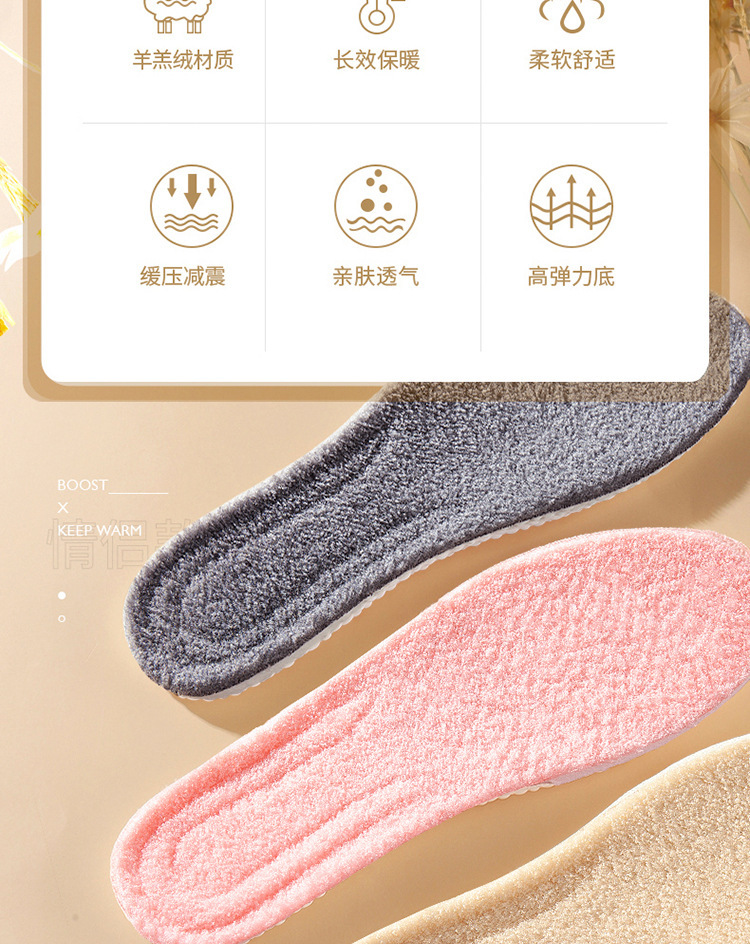남자와 여자를위한 겨울 폐 느낌 봉제 깔창 안창 편안한 부드러운 부드러운 밑바닥 두꺼운 안창 배설물 기모 안창