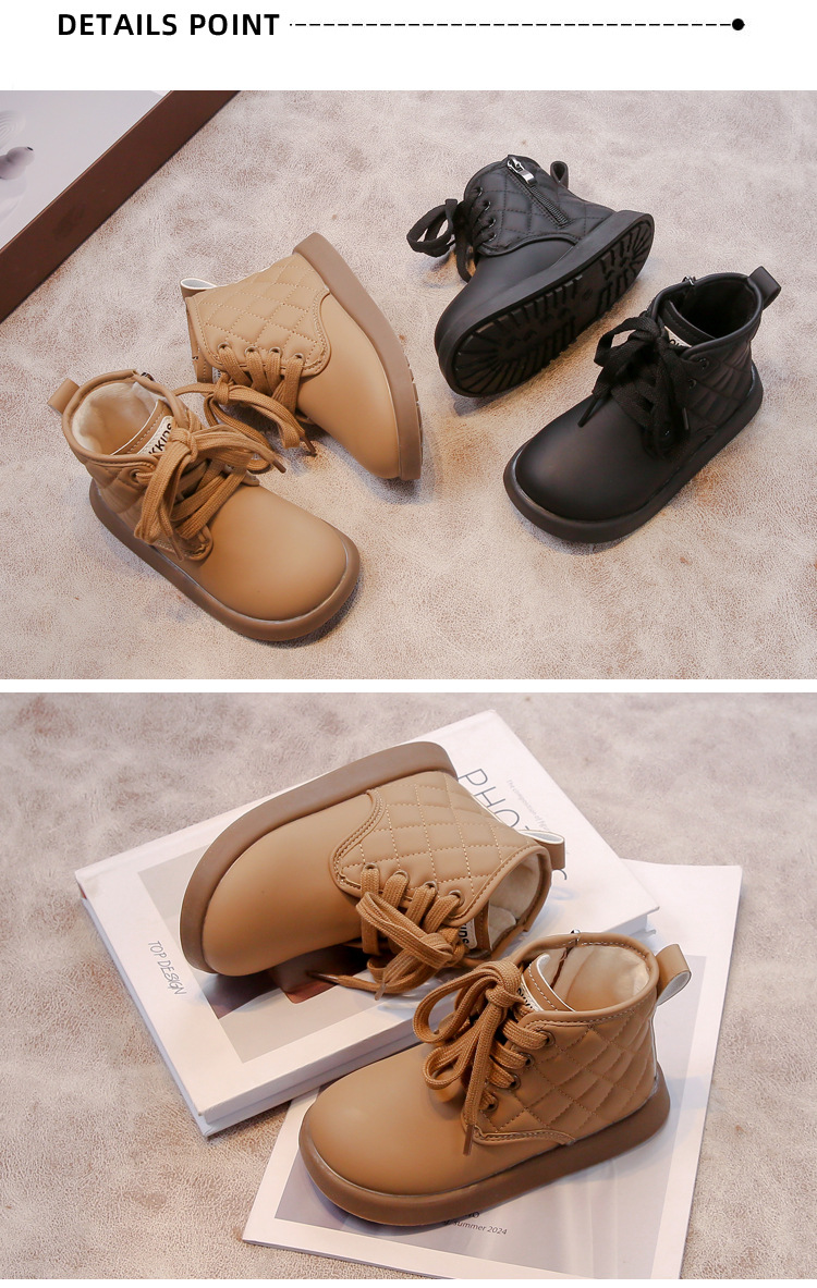 소년 마틴 부츠 겨울 2024 새로운 어린이 부츠 영국 스타일 소녀 가죽 부츠 부드러운 바닥 아기의 기모 발목 부츠