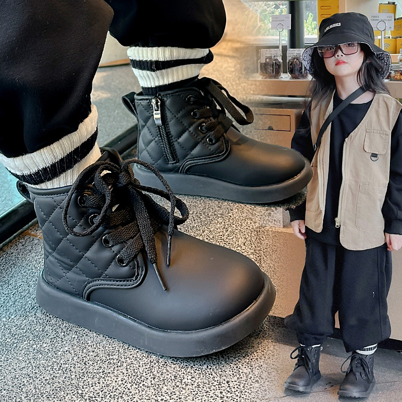 소년 마틴 부츠 겨울 2024 새로운 어린이 부츠 영국 스타일 소녀 가죽 부츠 부드러운 바닥 아기의 기모 발목 부츠스토어 가기