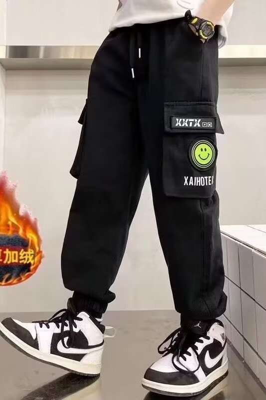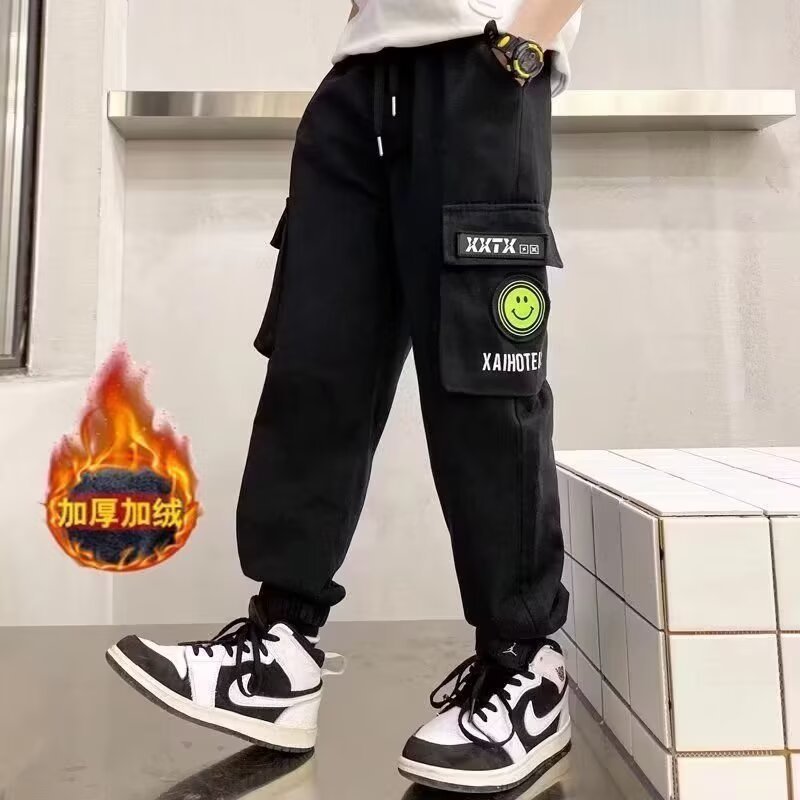 소년 기모 따뜻한 바지 2024 새로운 어린이 트렌디 커버 바지 큰 소년의 잘 생긴 올매치 바지