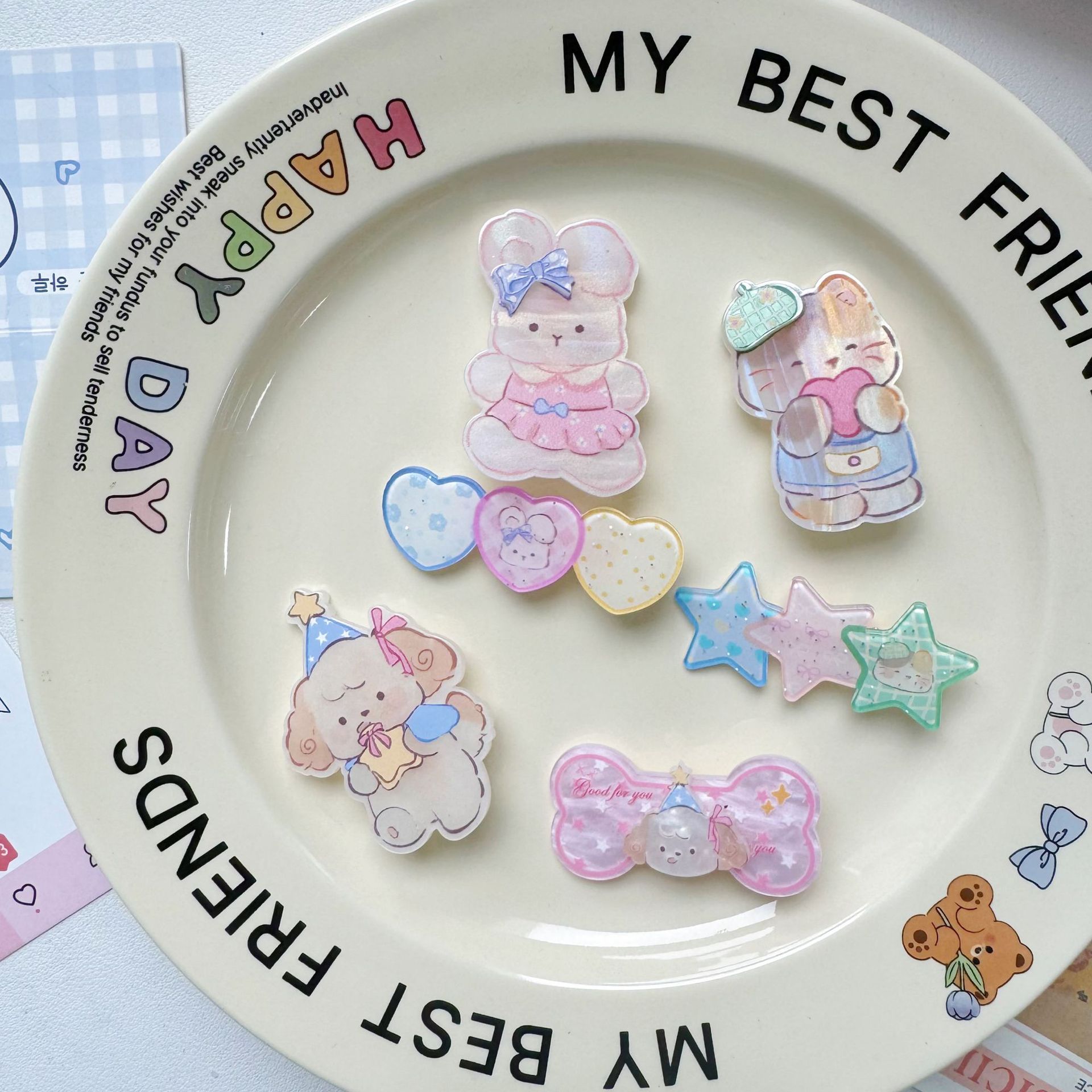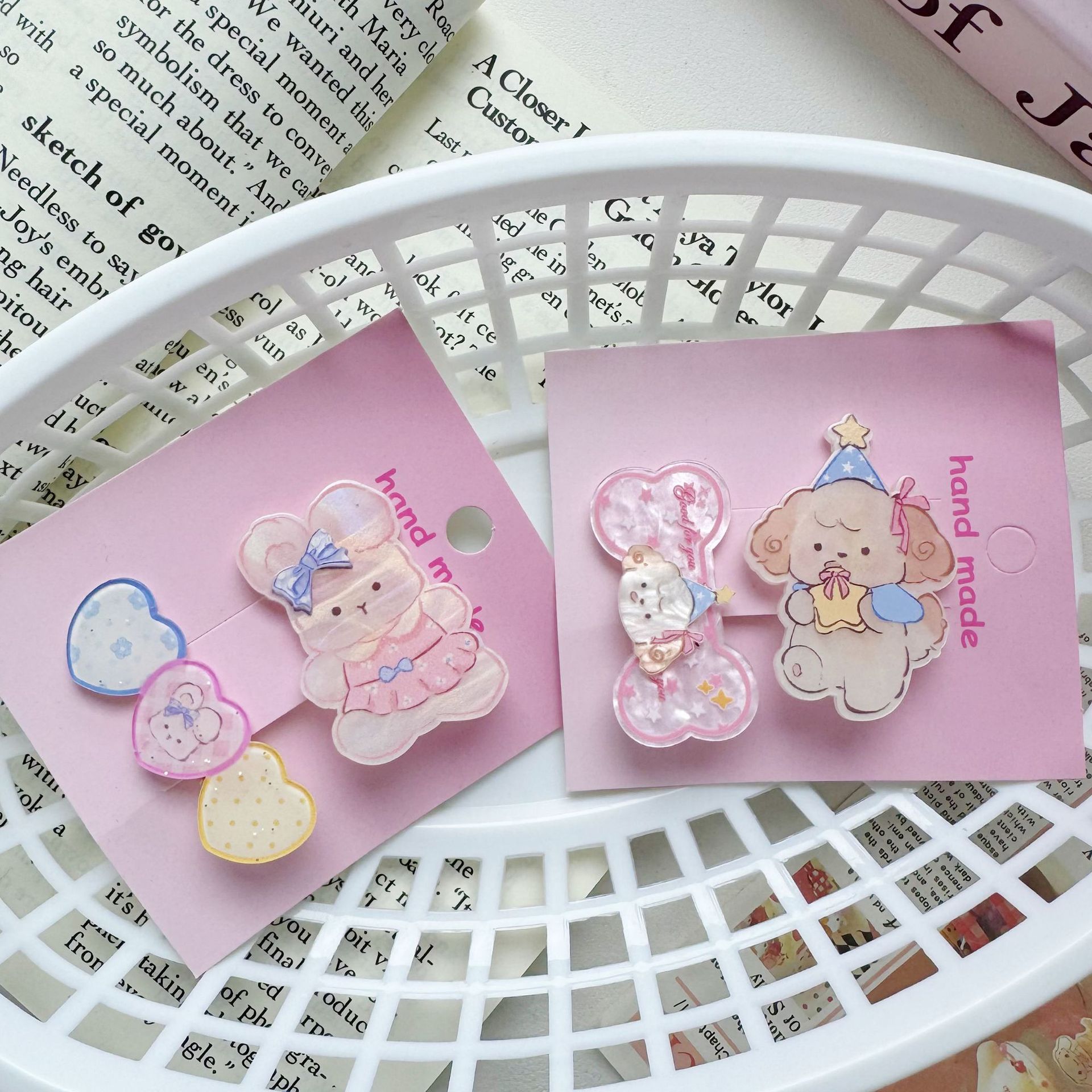 달콤한 꿈 스타일 귀여운 새끼 고양이 토끼 강아지 아크릴 헤어핀 달콤한 소녀 뱅 클립 클립 만화 헤어 액세서리 여성