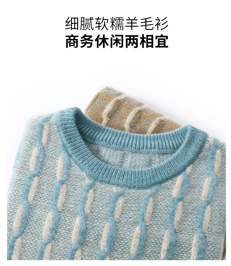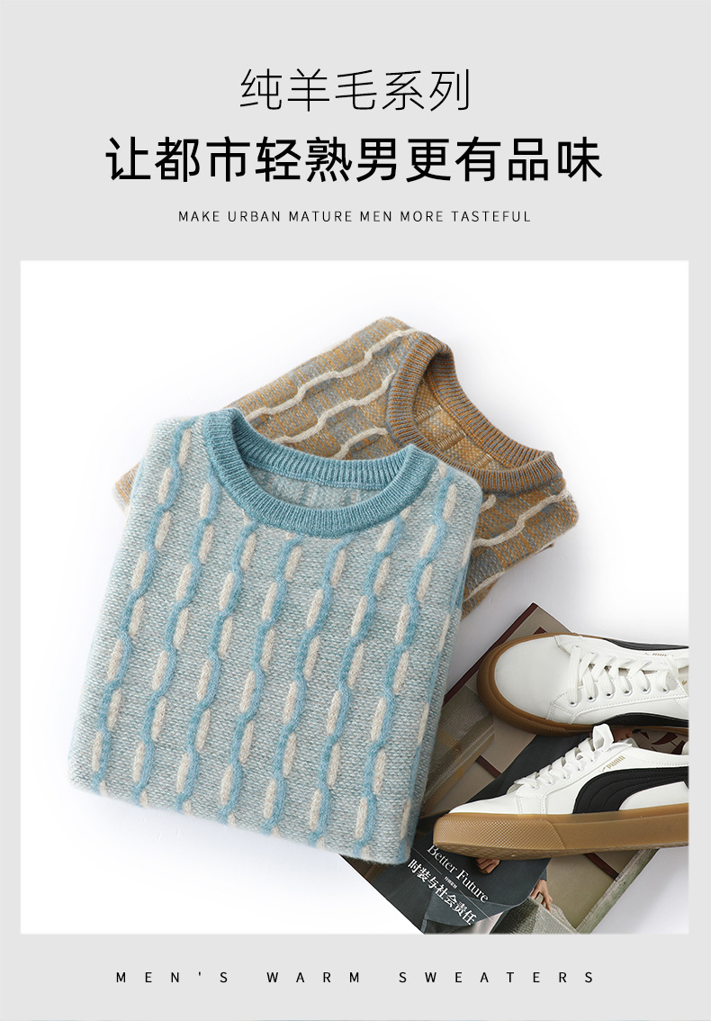 가을과 겨울 새로운 울 스웨터 남자 풀오버 크루 넥 스웨터 컬러 매칭 긴 소매 캐주얼 니트베이스 스웨터 두껍게스토어 가기