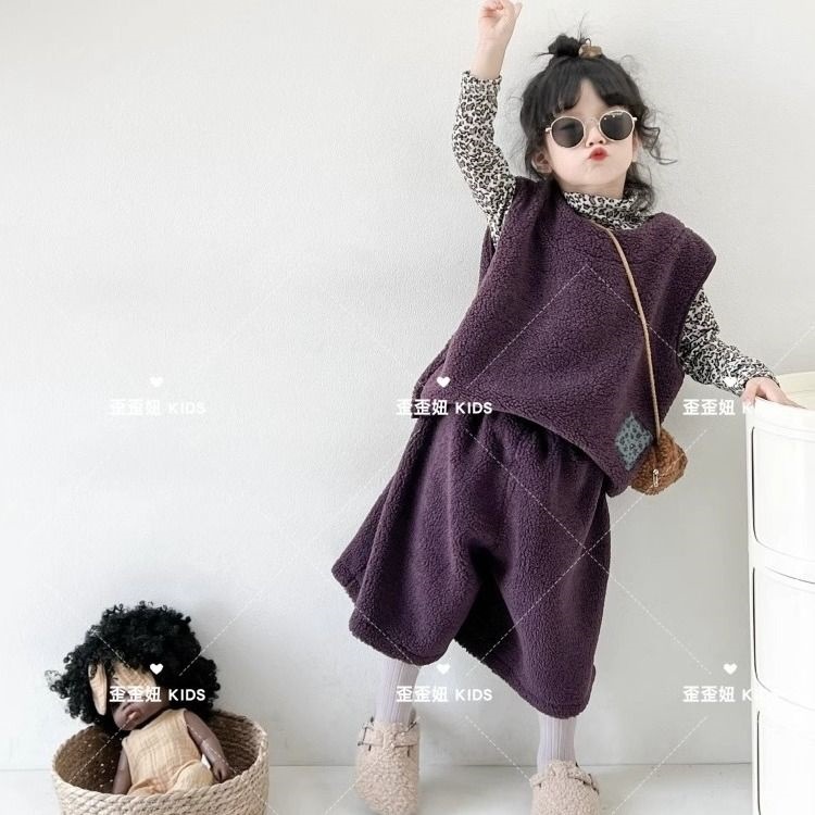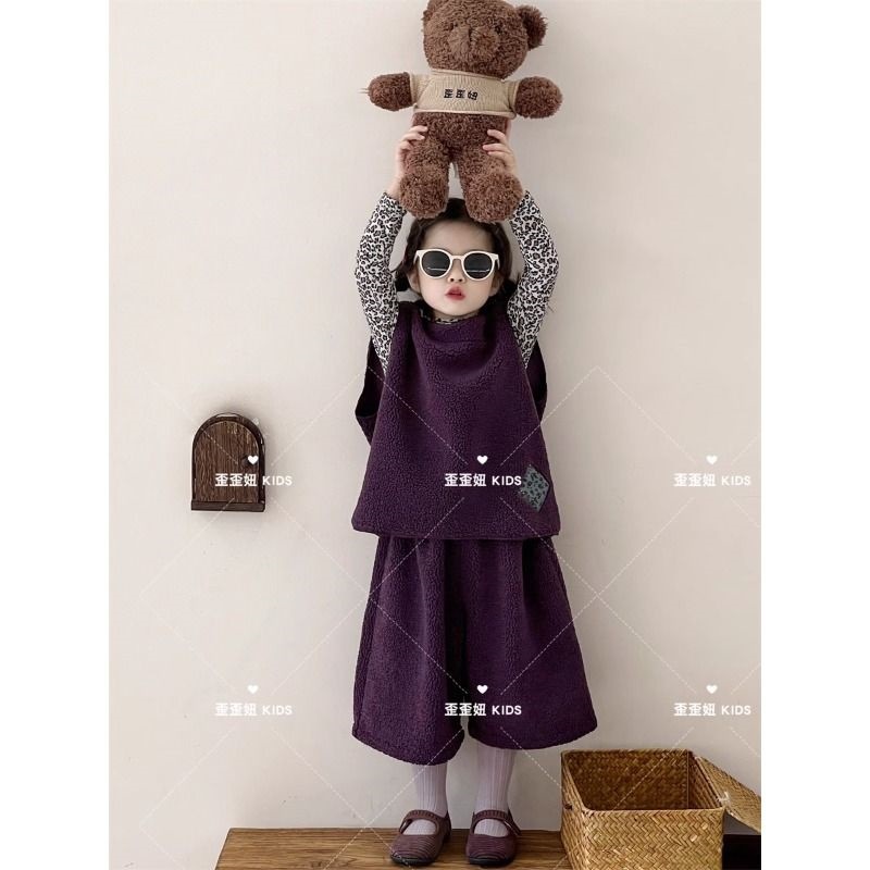 한국 아동복 소년 소녀 아기의 늦은 가을 양모 조끼 어린이 세련된 유행 조끼 넓은 다리 바지 세트 트렌디스토어 가기