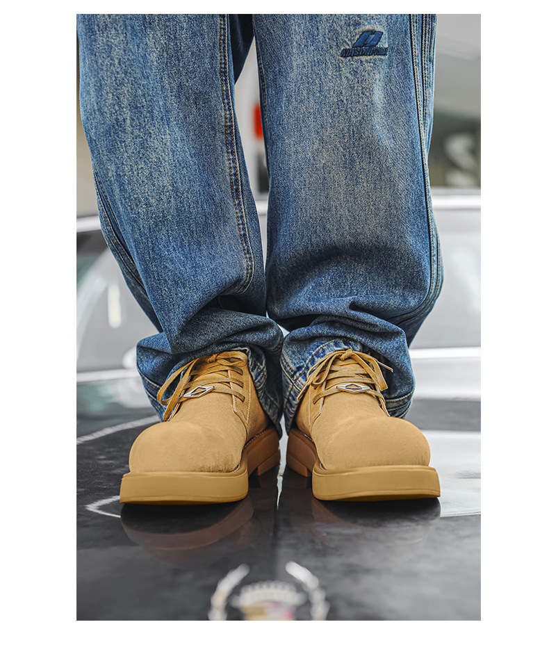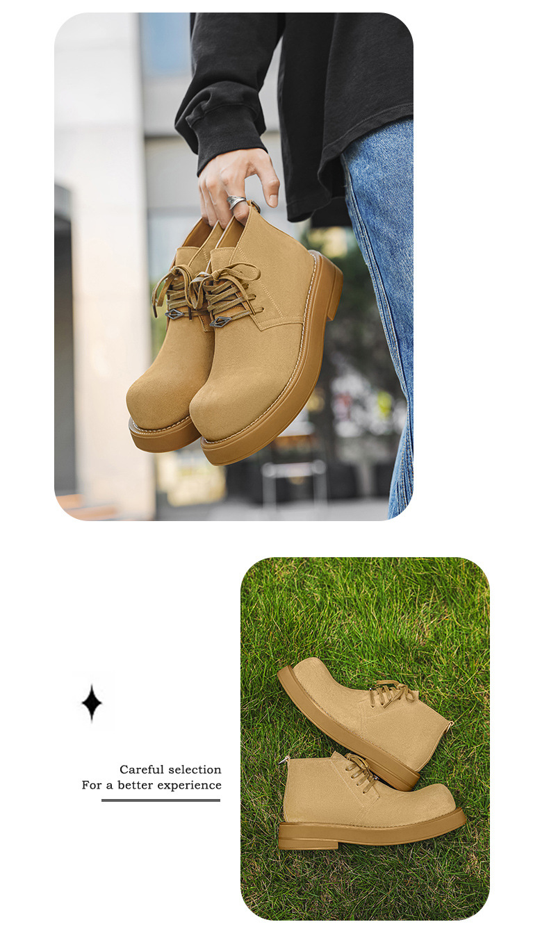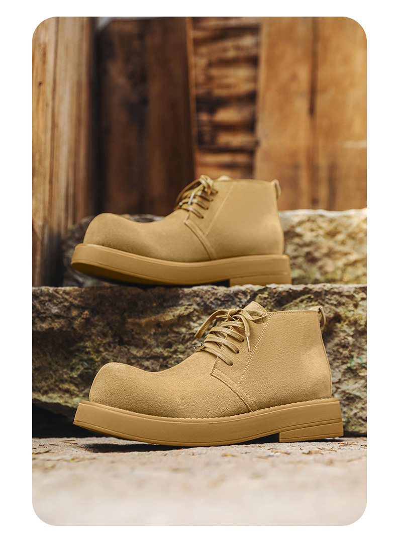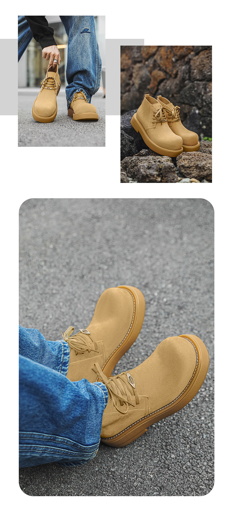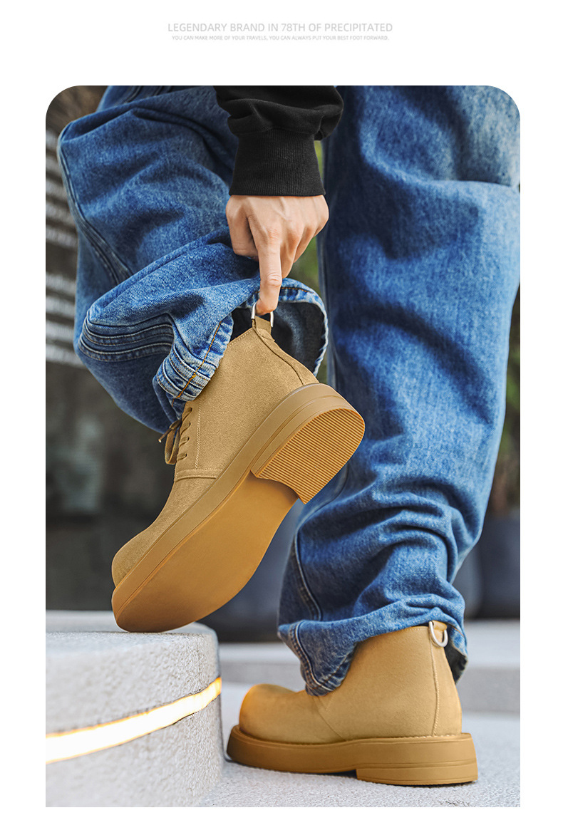 더비 신발 남자의 새로운 두꺼운 밑창 큰 발가락 가죽 신발 미드 탑 라운드 발가락 증가 대황 부츠 캐주얼 대학 스타일 청소년 유행 신발스토어 가기