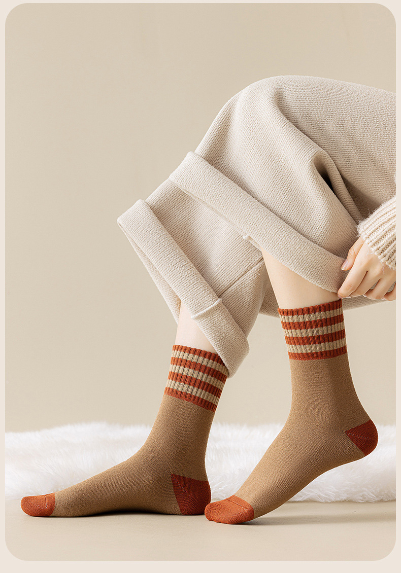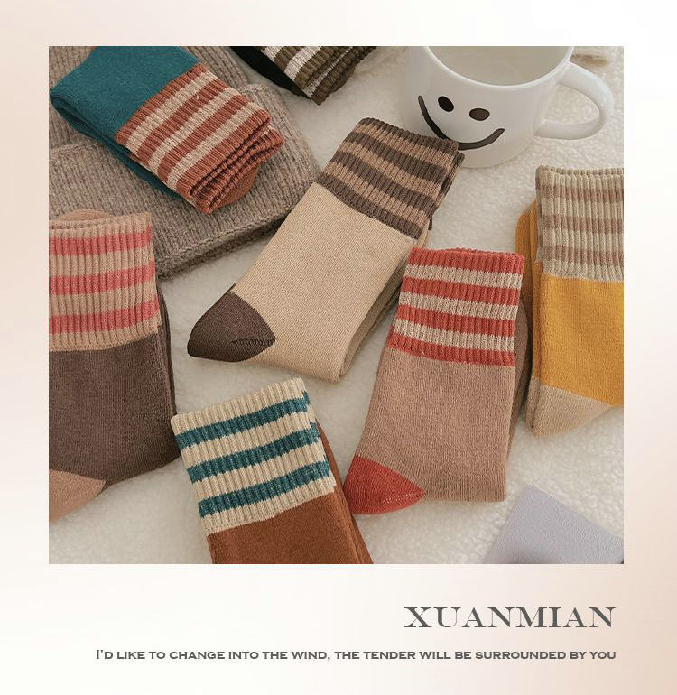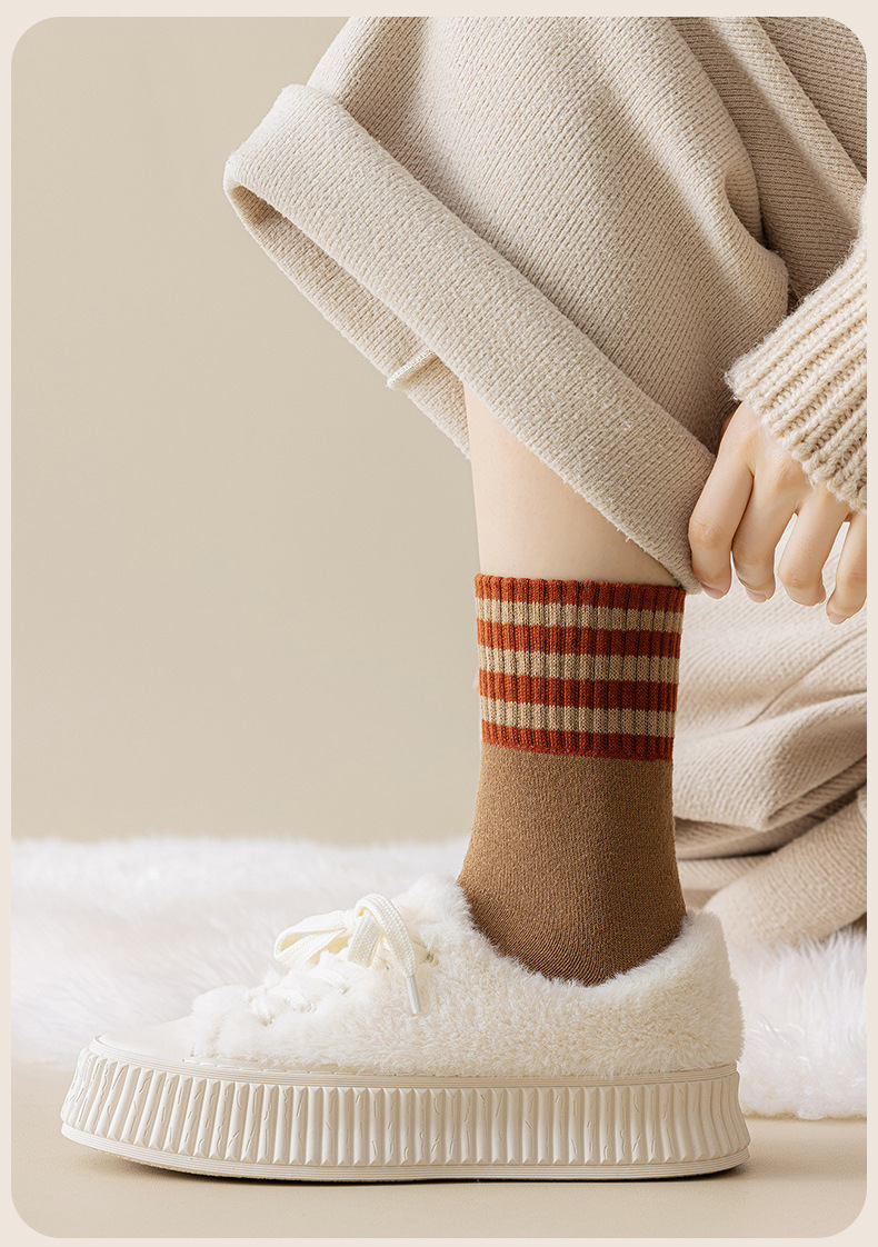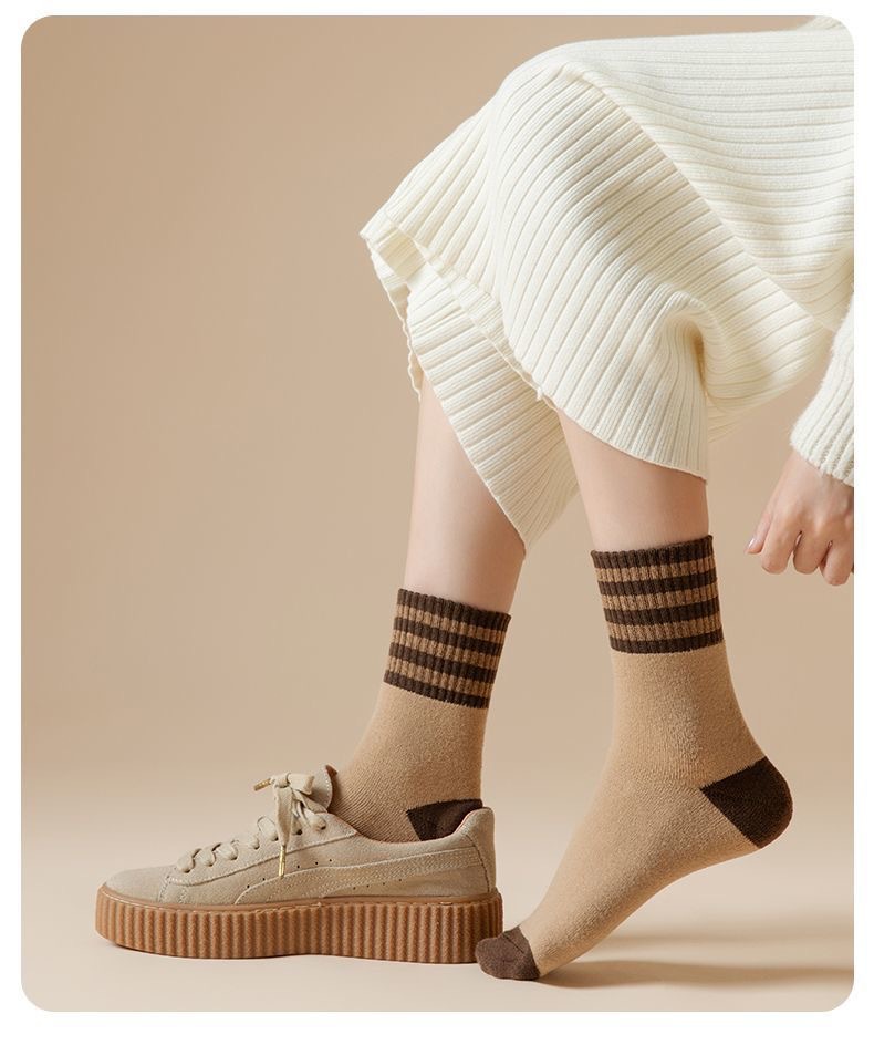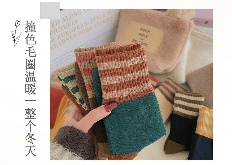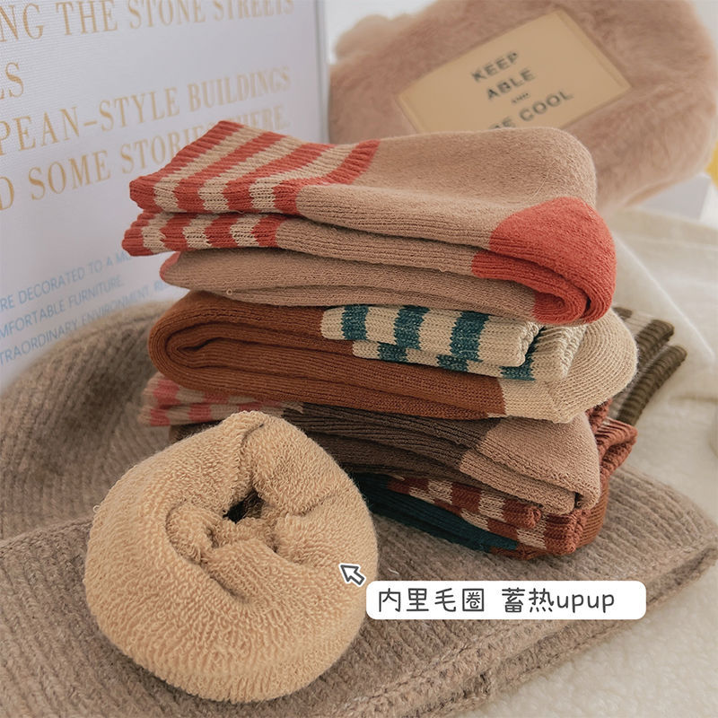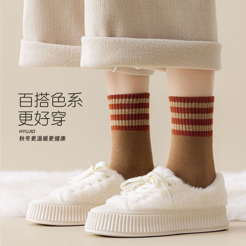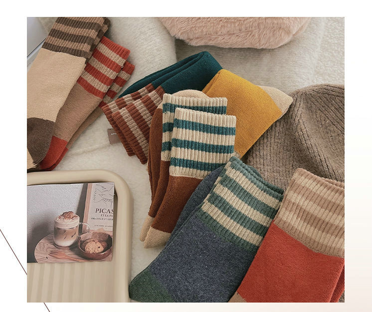 두꺼운 줄무늬 양말 여성용 투투 미드 사이즈 인즈 패셔너블 코튼 가을과 겨울 기모 따뜻한 일본 스타일 빈티지 트릴 양말