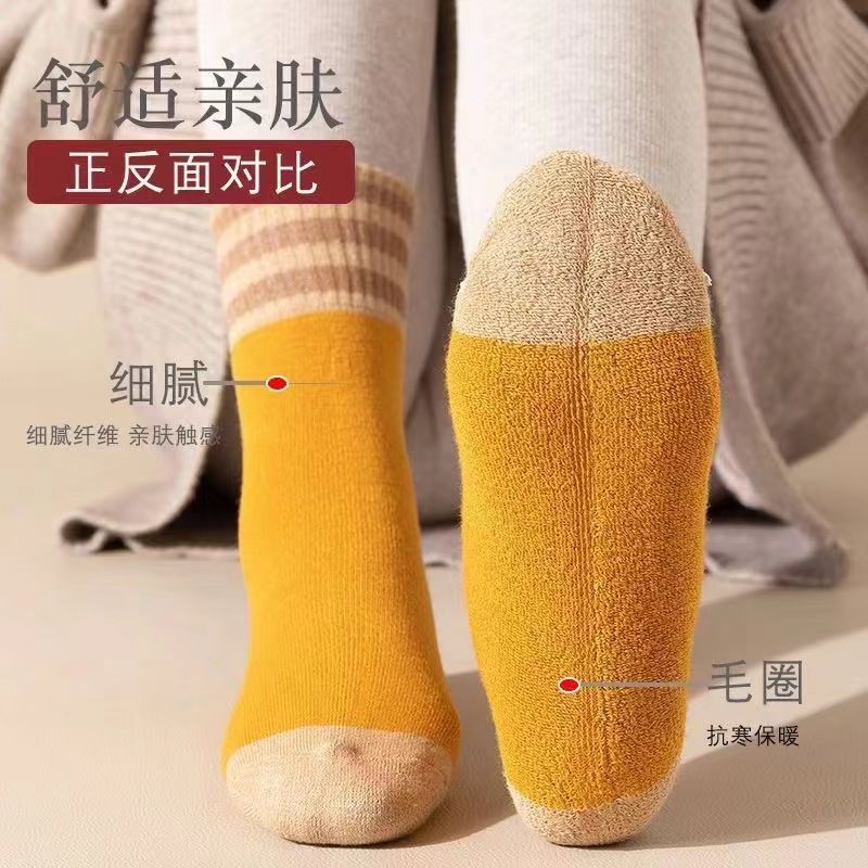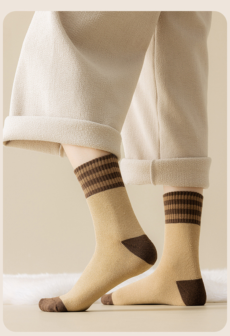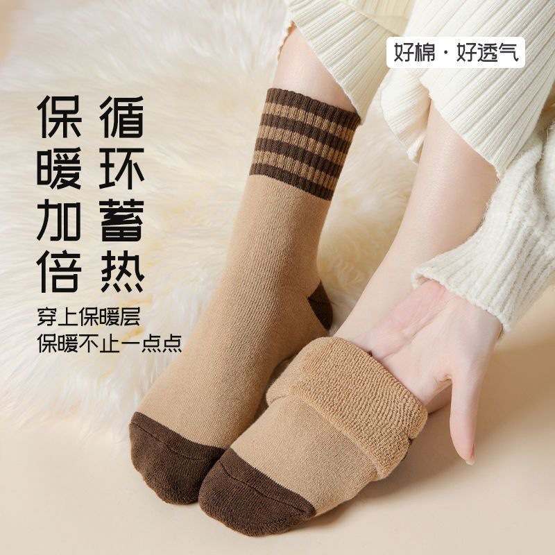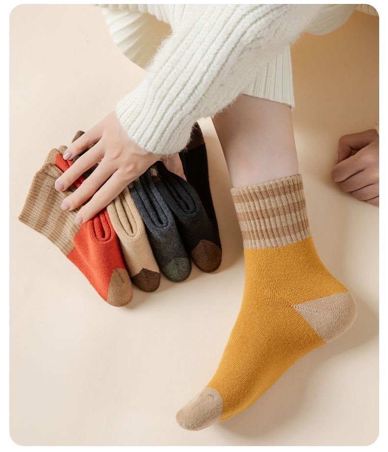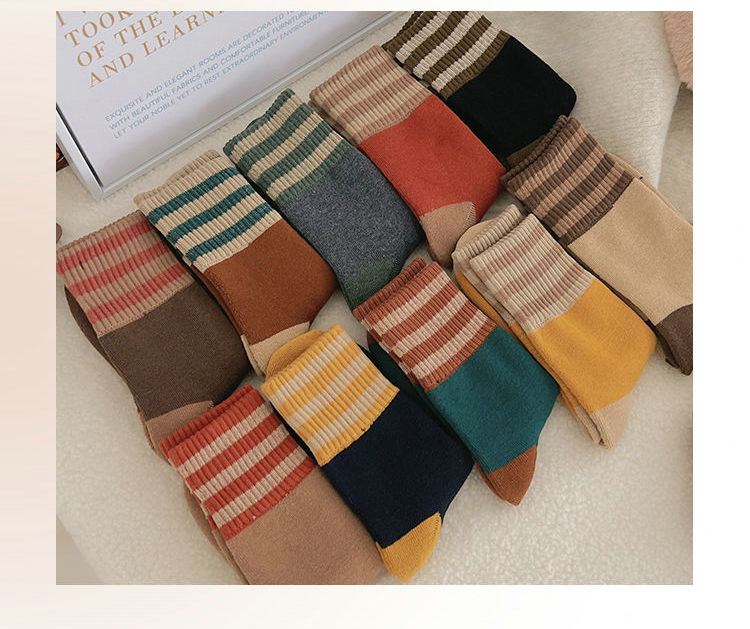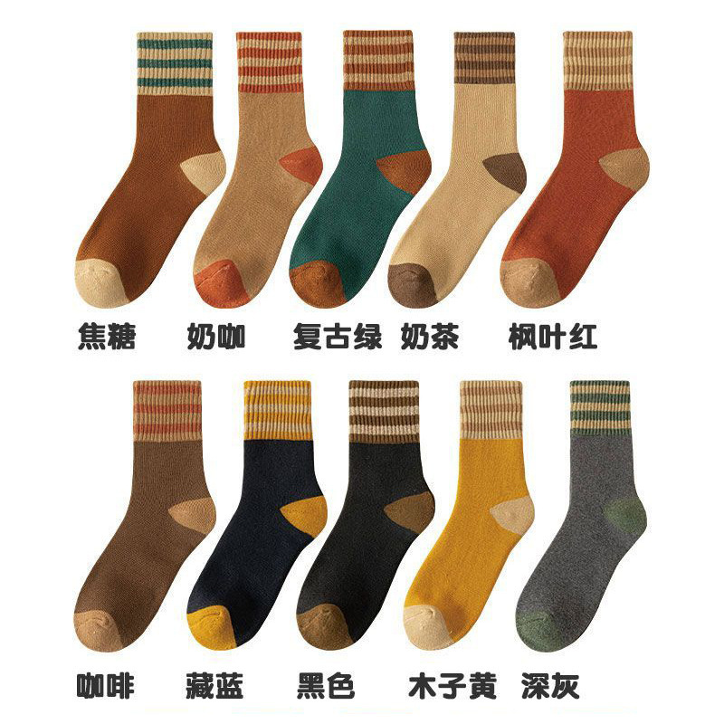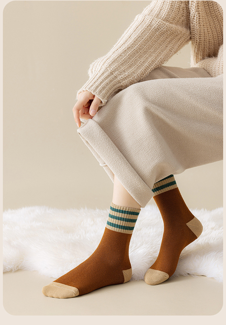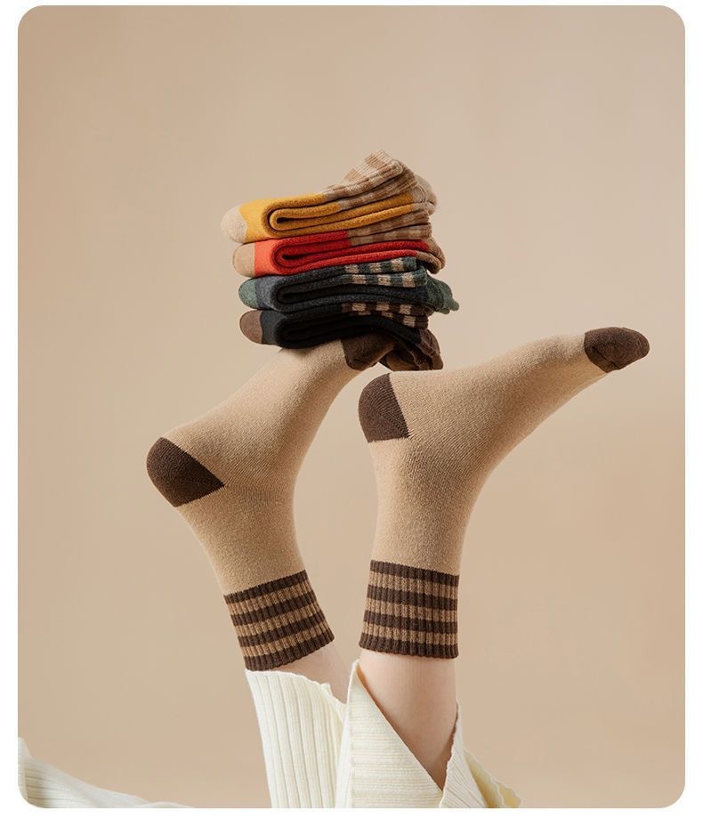 두꺼운 줄무늬 양말 여성용 투투 미드 사이즈 인즈 패셔너블 코튼 가을과 겨울 기모 따뜻한 일본 스타일 빈티지 트릴 양말